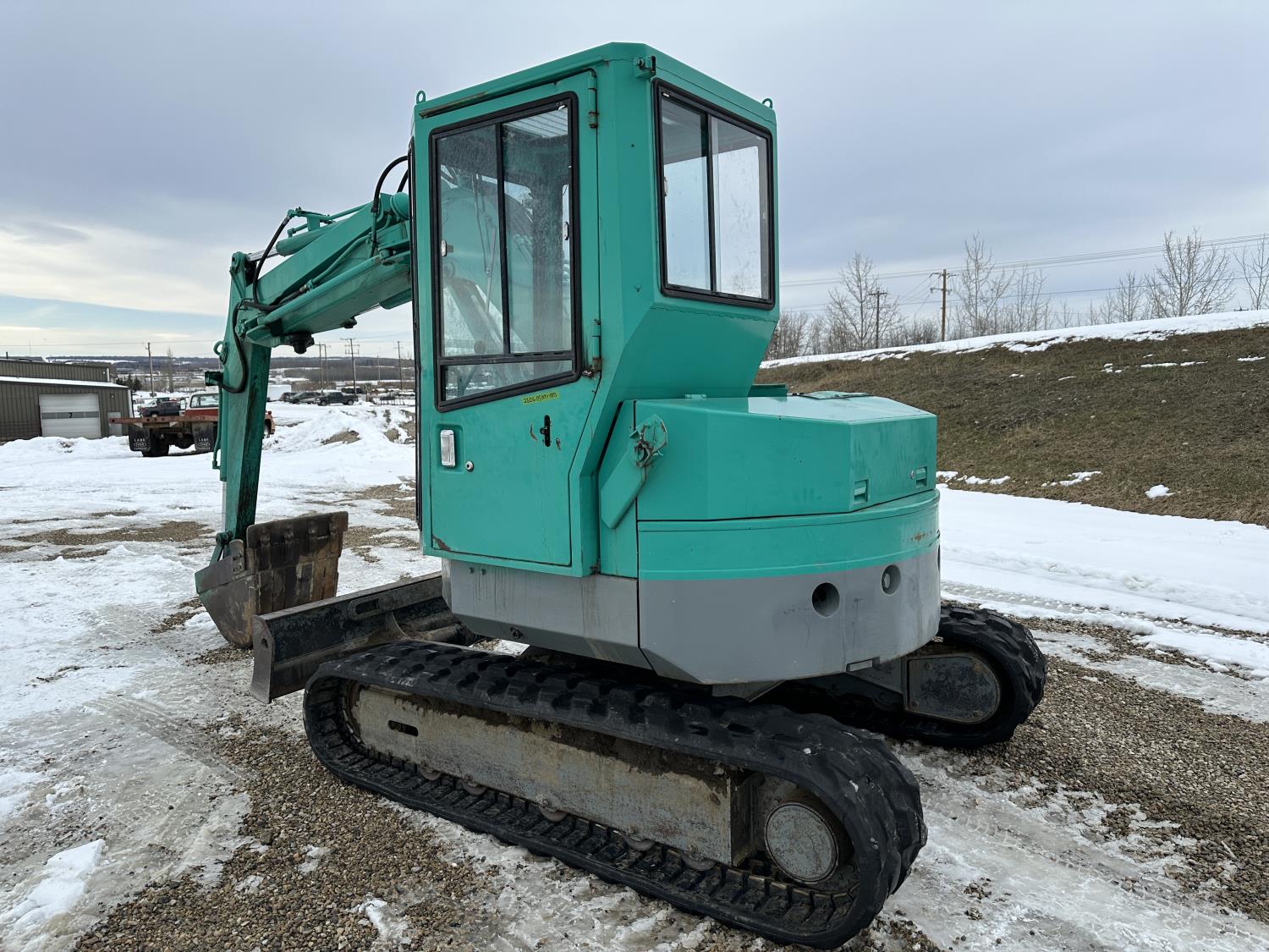 Enclosed cab, two-piece offset boom, 3D95S-W-1 Komatsu 3-cylinder, 2.0L, engine, 24 inch cleanup bucket, 5 Ft 4 inch stick, backfill blade, 15 inch rubber tracks