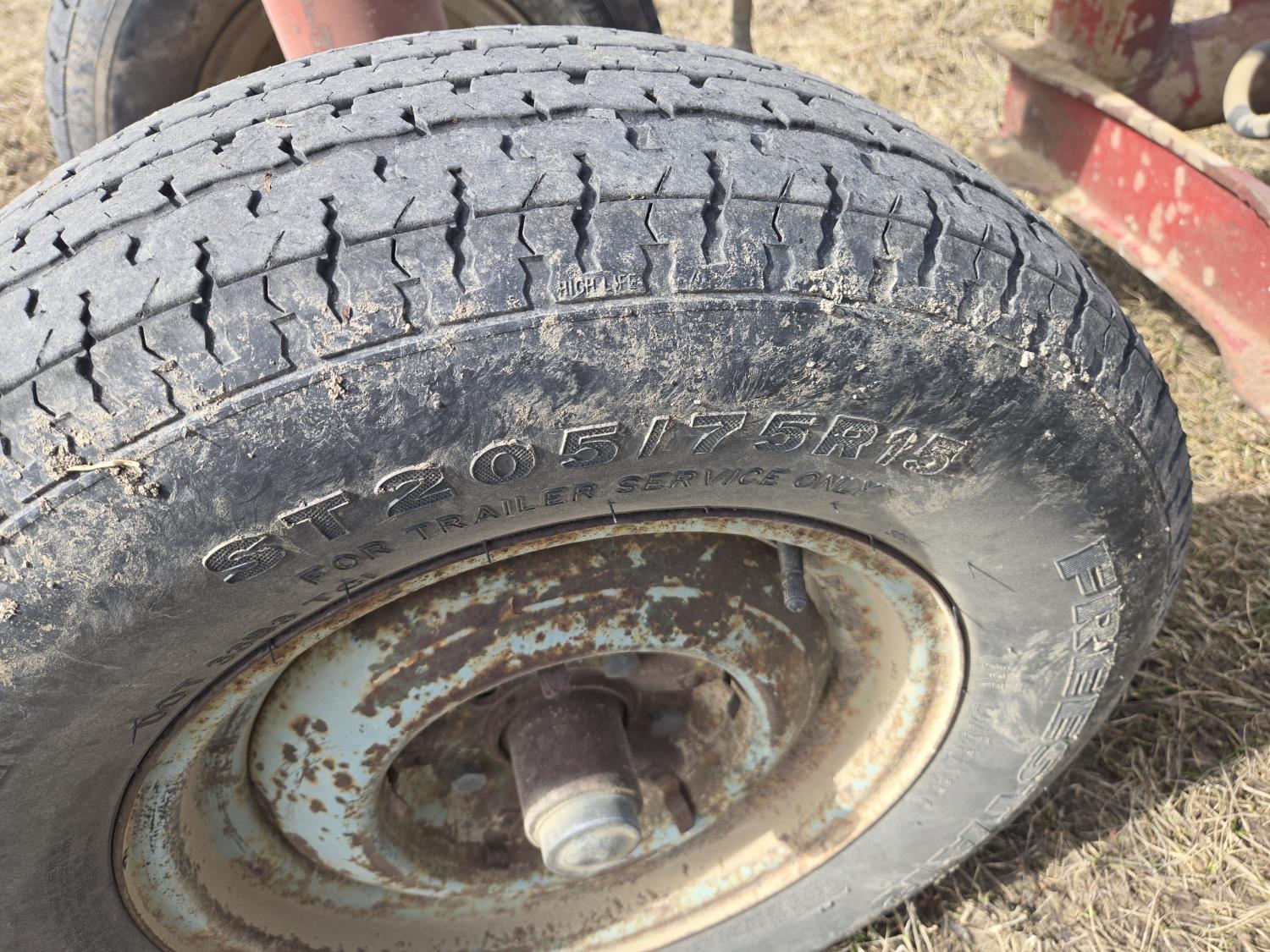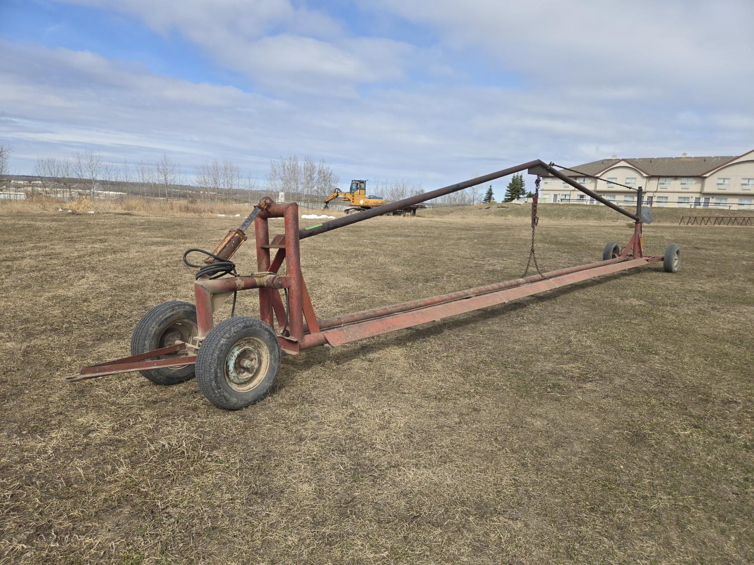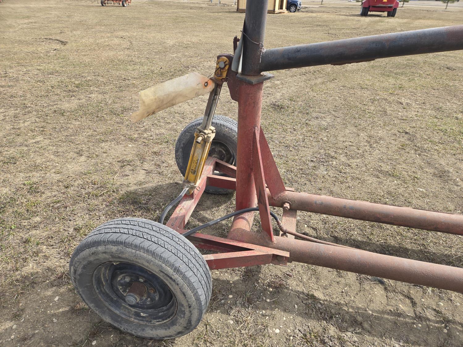 Hydraulic lift cylinders at both ends, 15 inch tires on front axle, 14 inch tires on rear axle