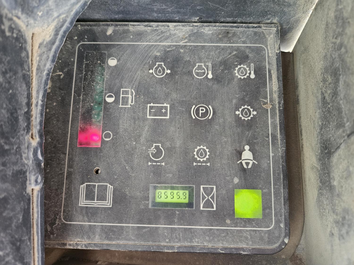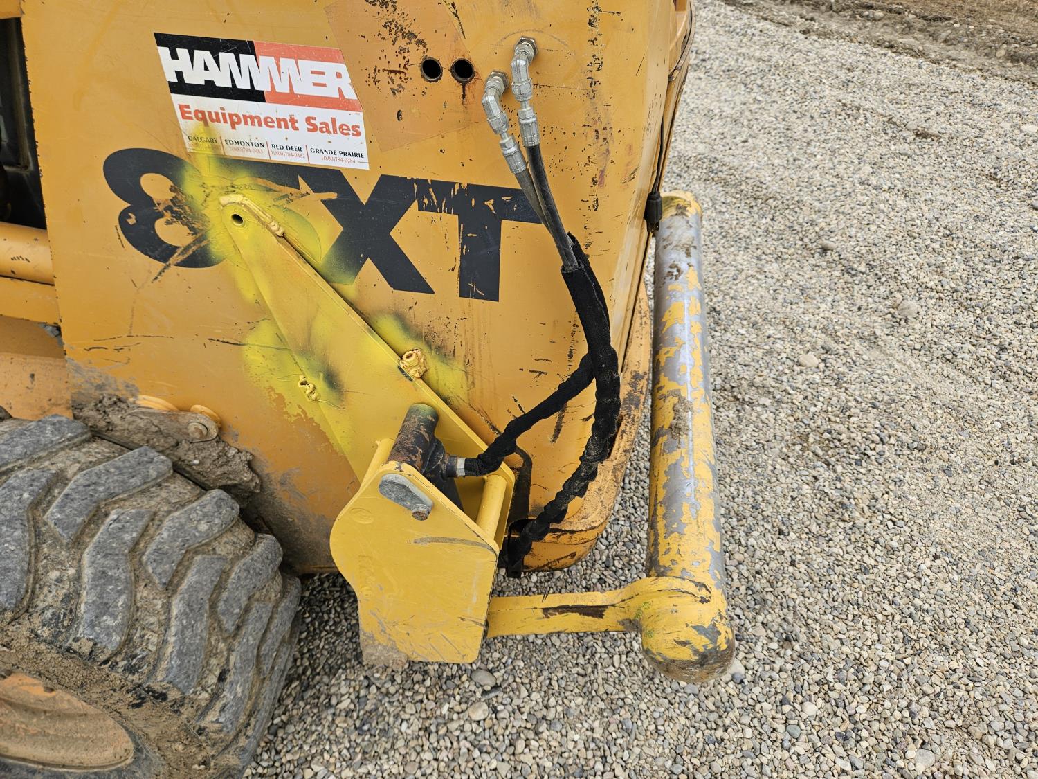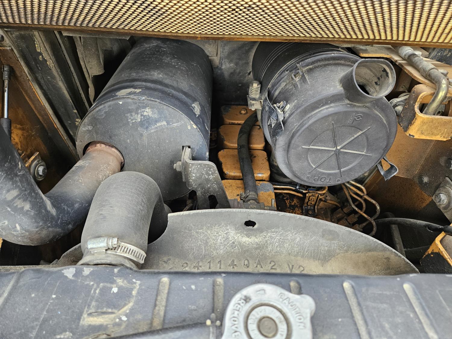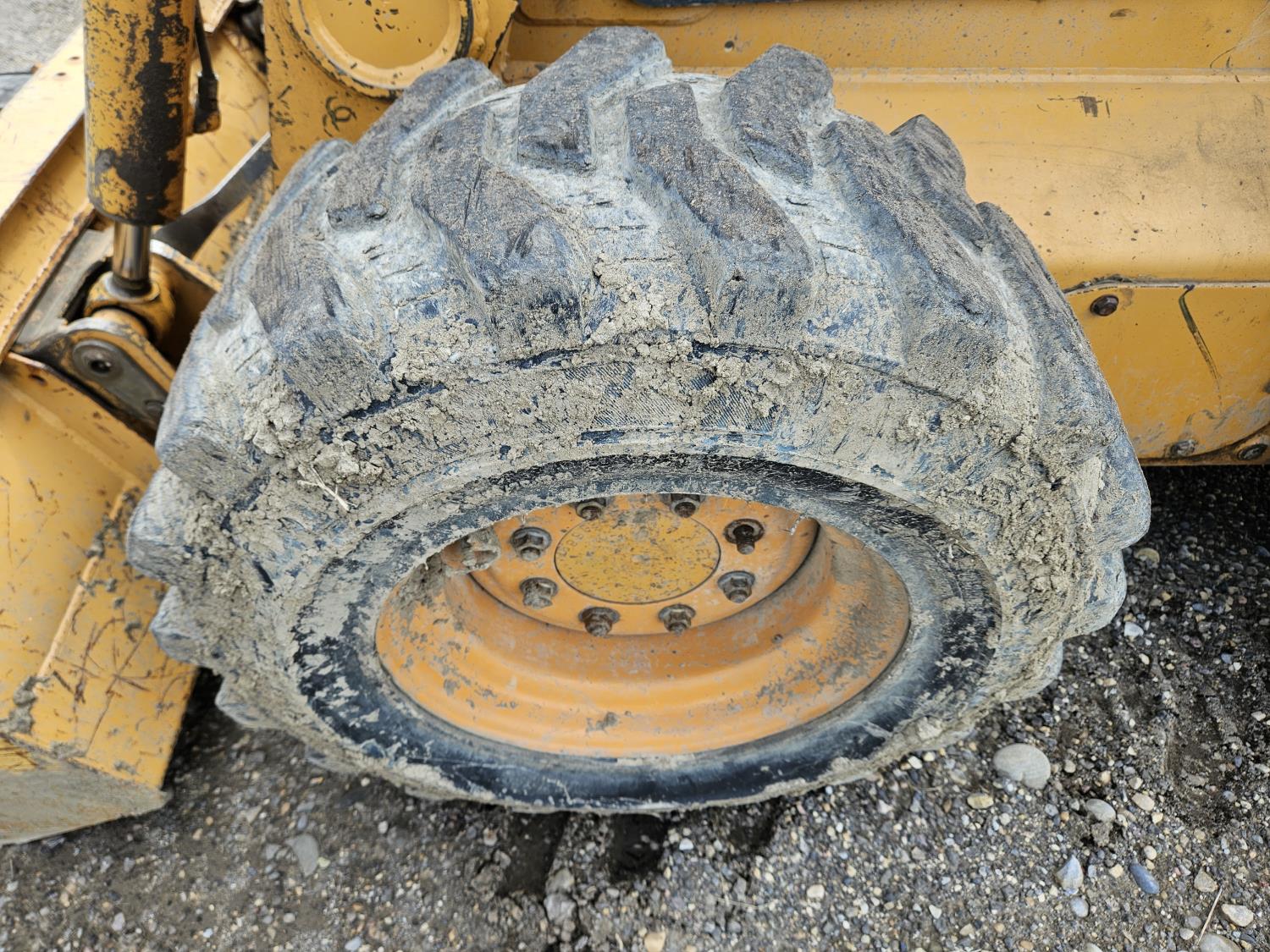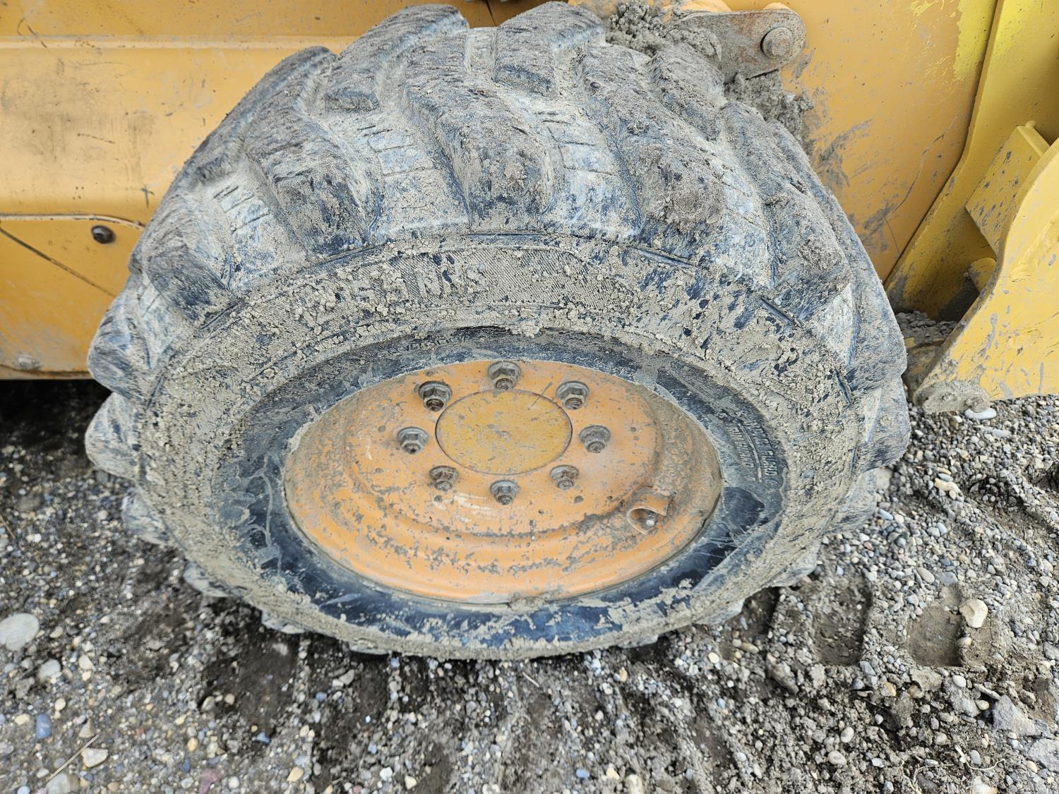 Enclosed cab, pilot controls, diesel engine, rear hydraulic stabilizer bar, 72 inch toothed bucket, manual coupler, high flow hydraulics, spare tire, 12-16.5 tires