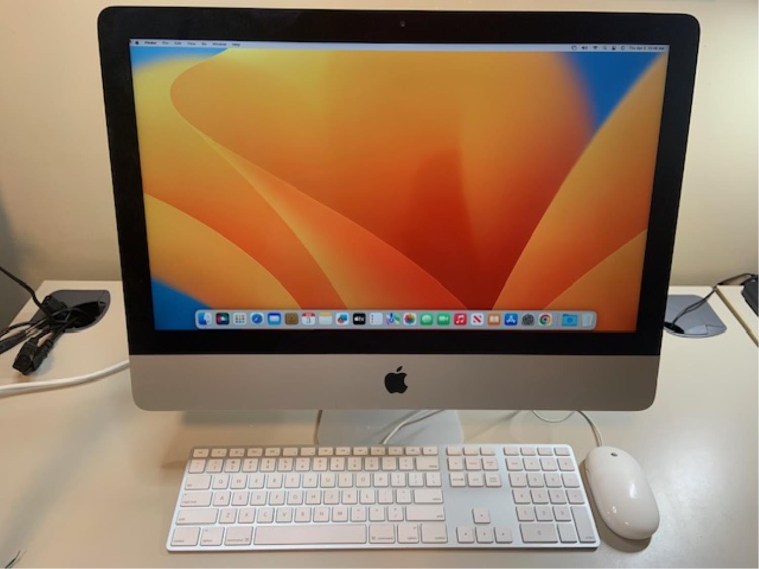 Processor: Dual Core, Intel Core i5, 5250U, 1.6 Ghz, RAM: 8 GB, Hard Drive: 1 TB Hard Drive, Operating System: Ventura, 21.5 inch screen, 4x USB, Network Port, Wi-Fi, Bluetooth, 2 x Thunder Bolt Ports, Card reader Built in: Camera, Speakers, Microphone Comes with: Keyboard, Mouse, Power Cable, Notes: All passwords and Apple ID's removed. Factory Reset and Fully Tested. For Password just press enter