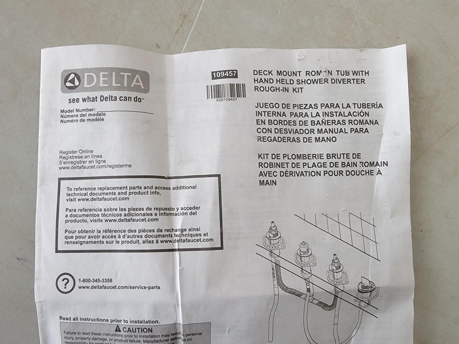 1458 Deck Mount Roman Tub w/ Shower Diverter Rough in Kit