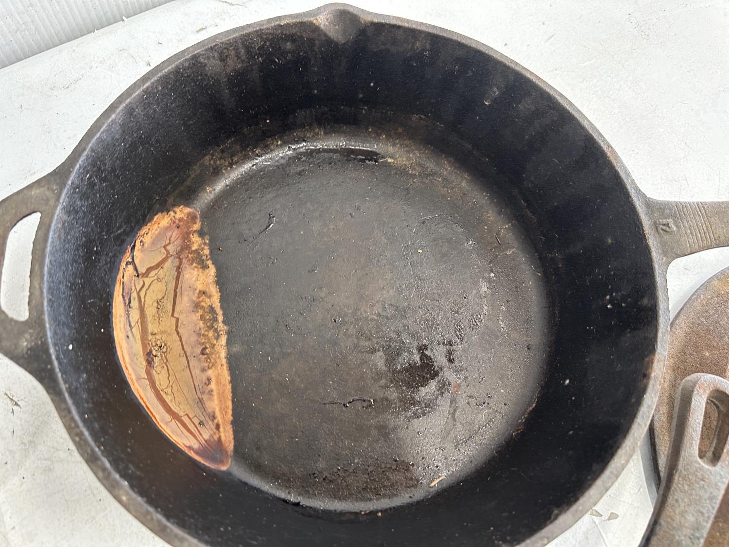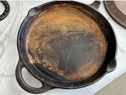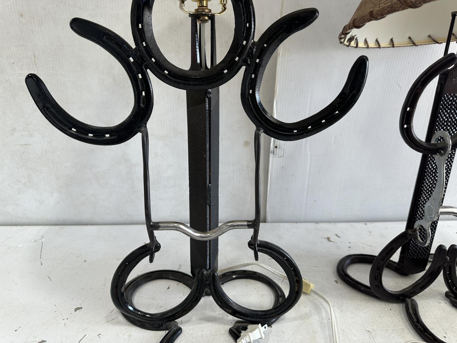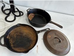 1048 Pair of Western Style Lamps and Set of 12 Inch Cast Iron Pans