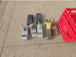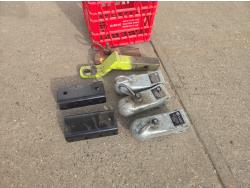 (4) 2 inch trailer hitches, (1) 2 inch receiver hitch, poly tote
