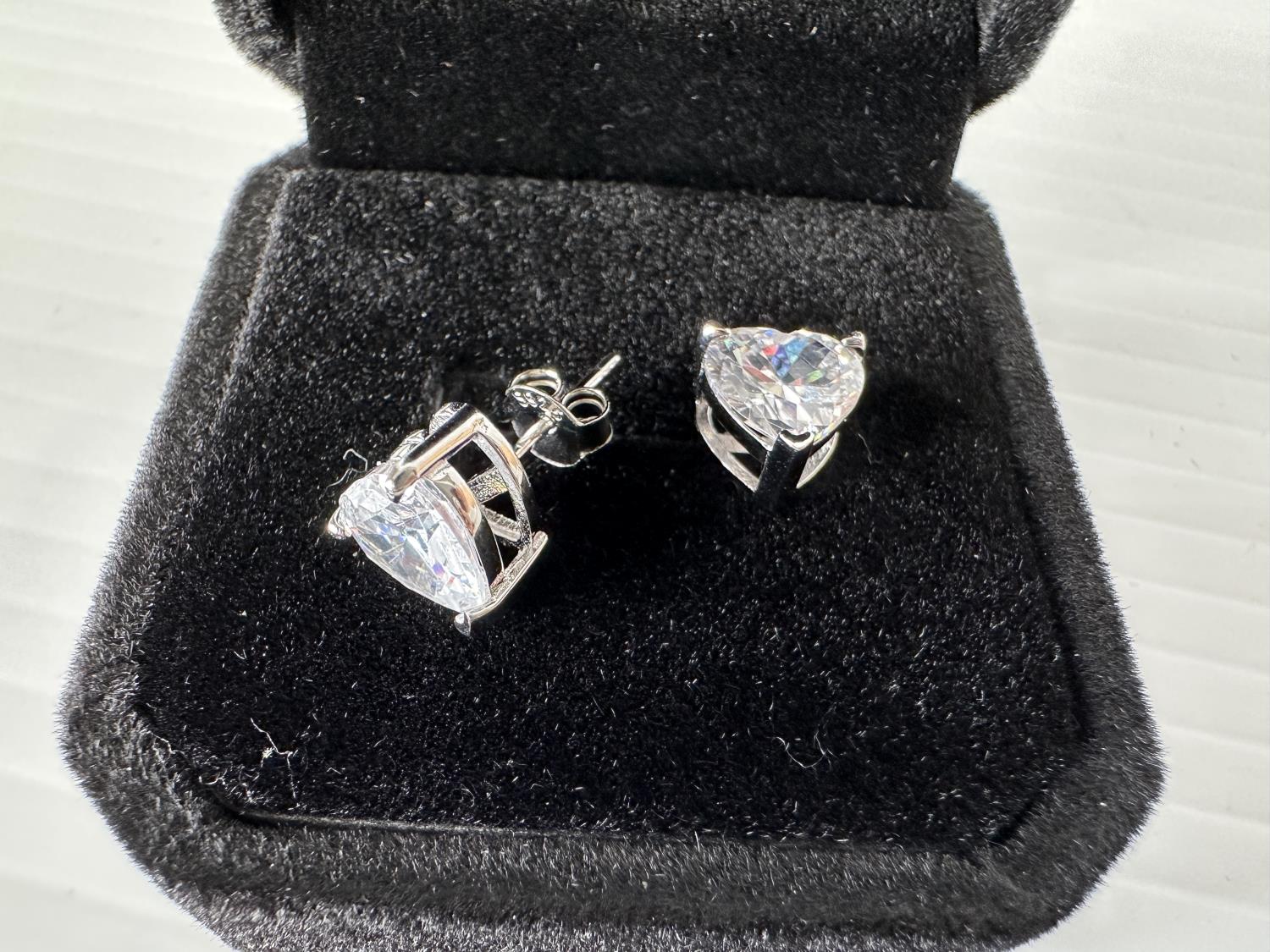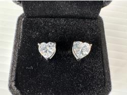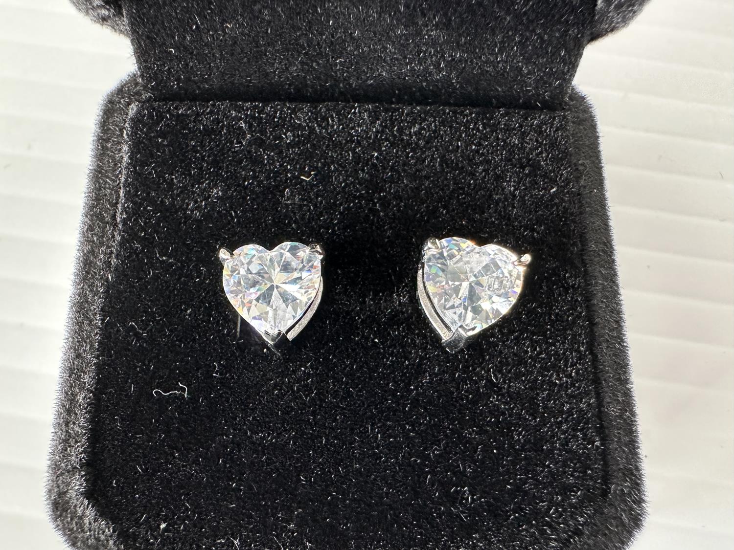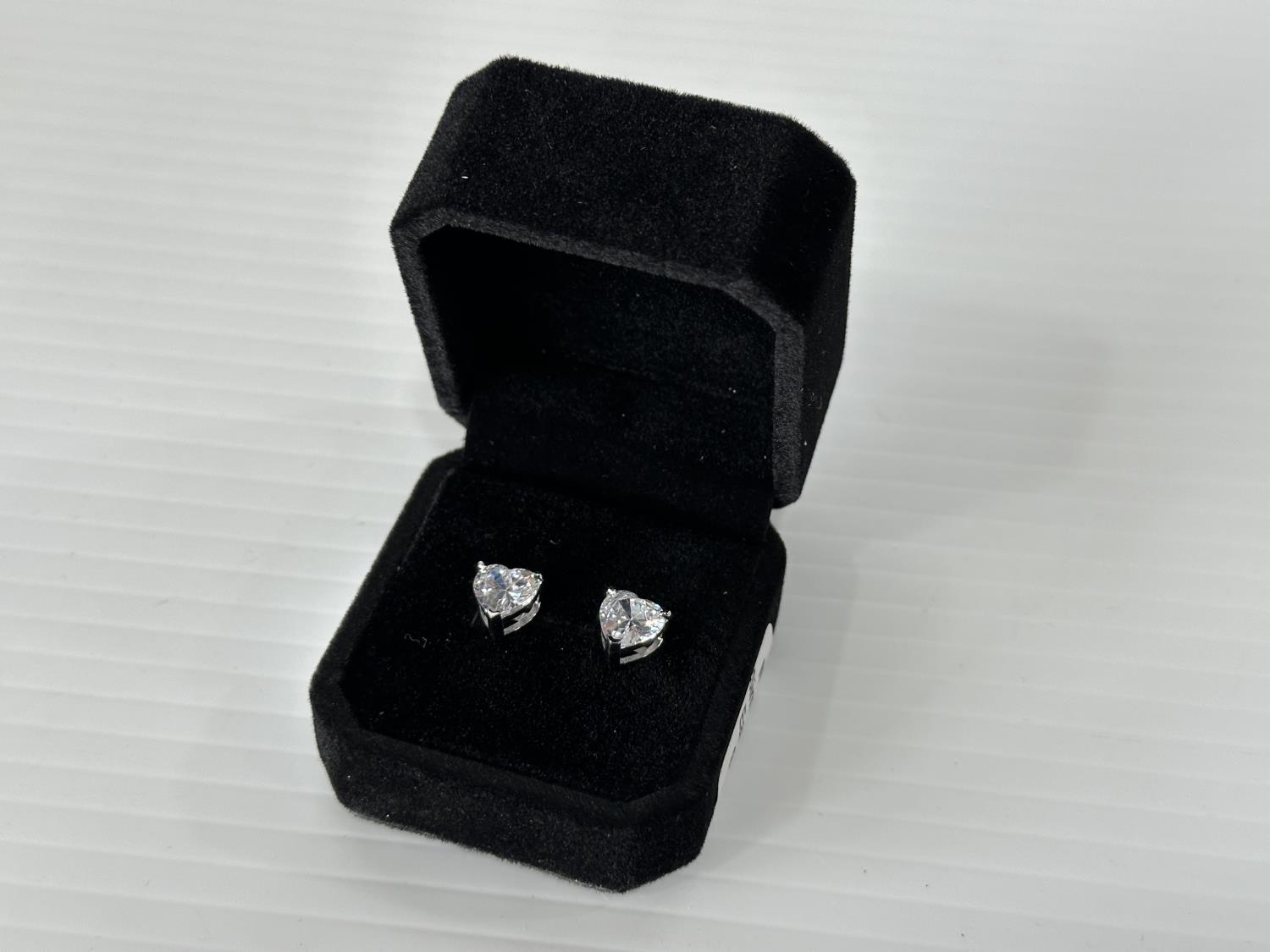 1703 Smartlife Sterling Silver 2.0 Ct Each Simulated Diamond Heart Cut Stud Earrings (Unused)