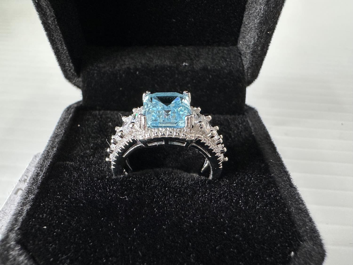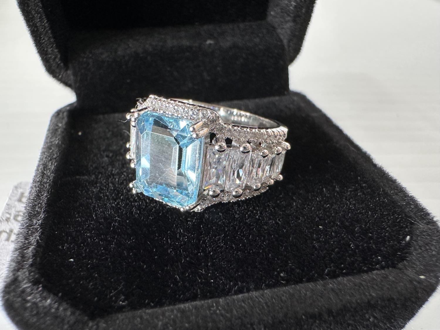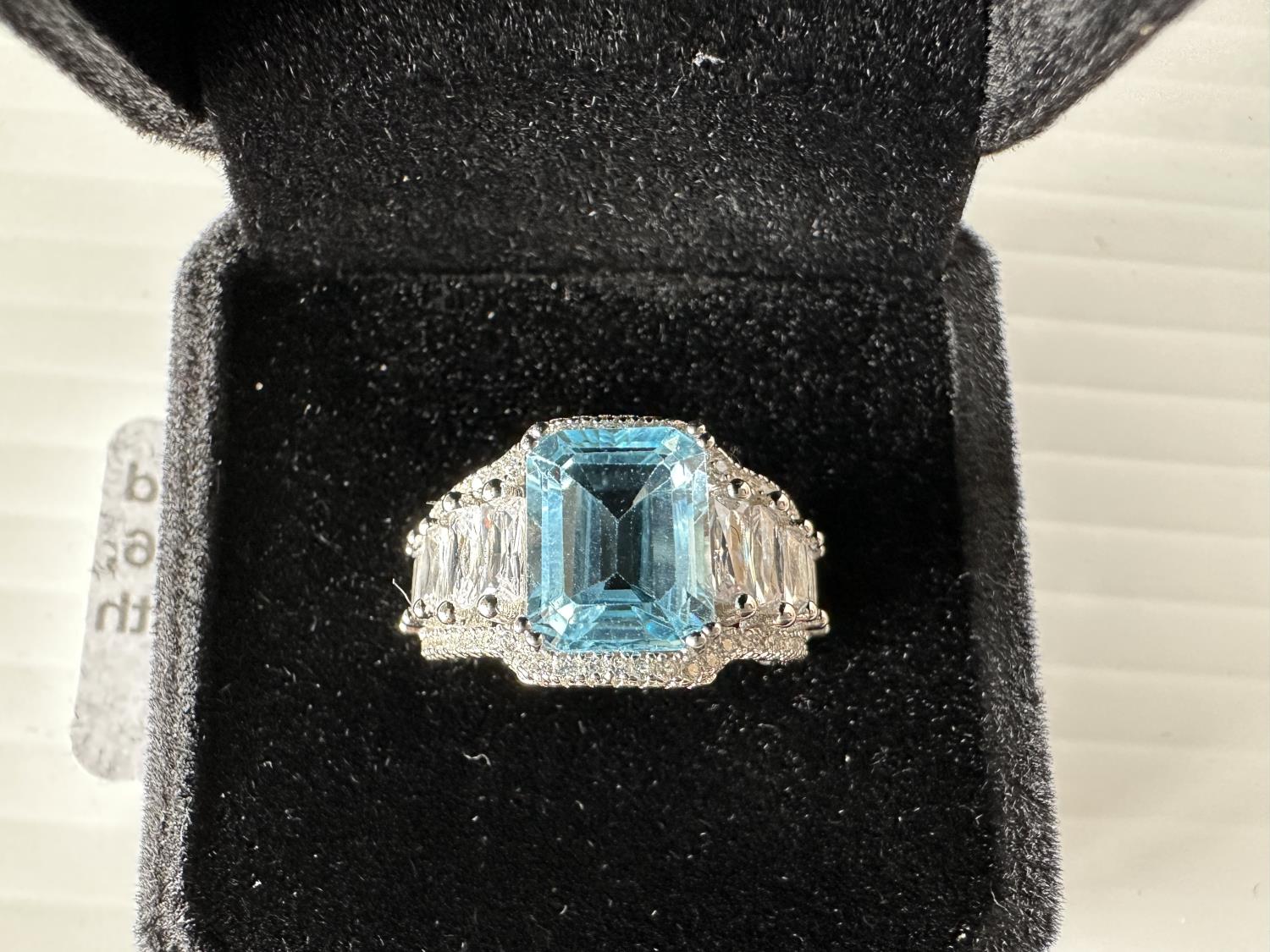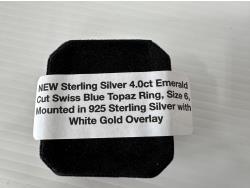 1698 Smartlife Sterling Silver 4.0 Ct Emerald Cut Swiss Topaz Ring - Size 6 (Unused)