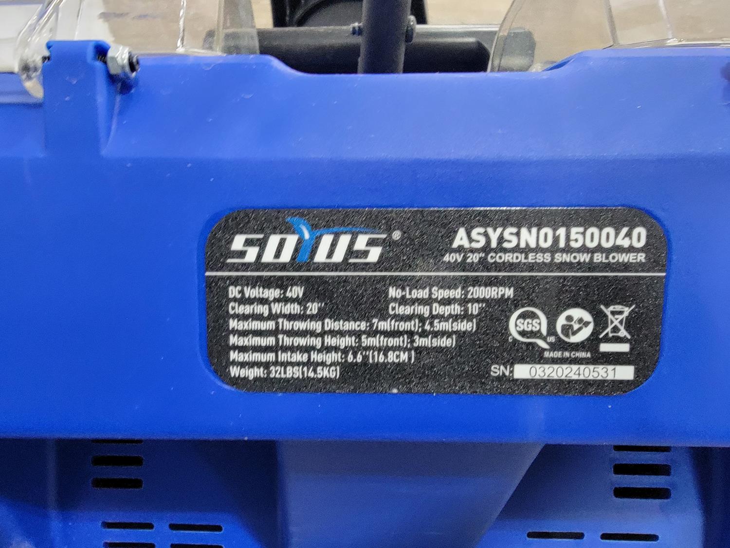 1022 Soyus 40V 20 Inch Cordless Snow Blower