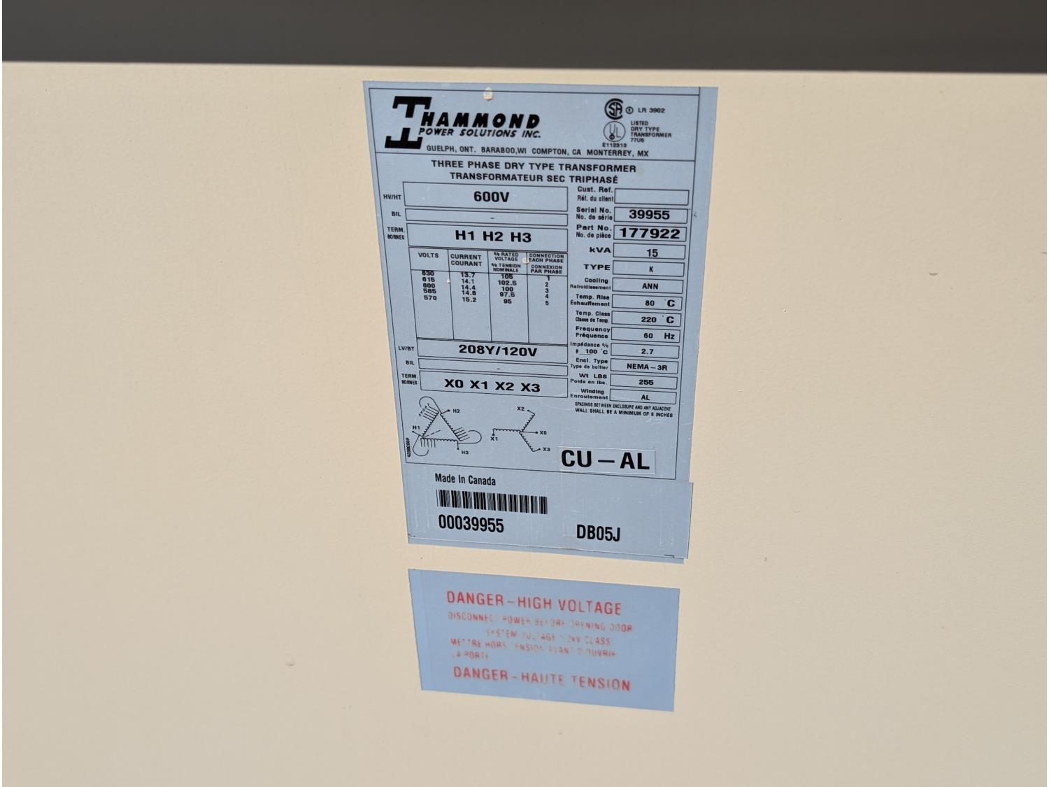 1756 Three Phase 600V Dry Type Transformer