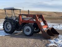 Loader, 60 inch bucket, white 2-50 diesel engine, 46 PTO HP, 8 speed manual transmission, open station platform, 540 PTO, 3 point hitch, 9.5-24 front tires, 14.9-30 rear tires