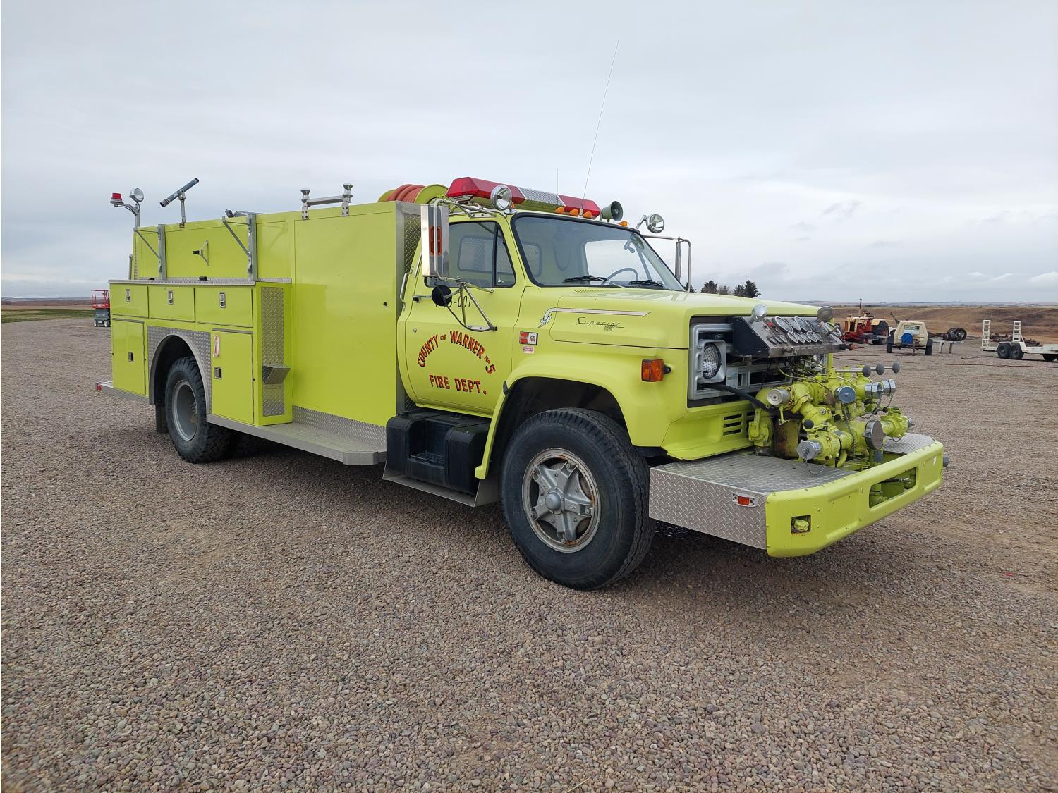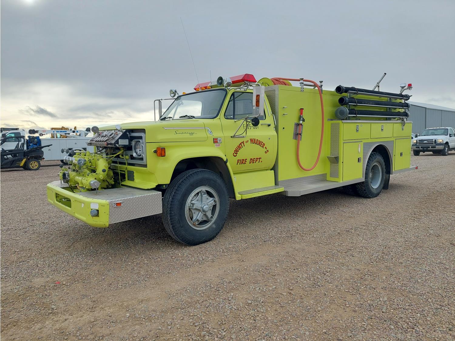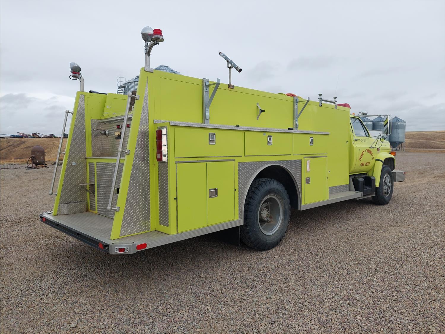7.0L V8 gas engine, Hale P75-3 pump, 3 inch and 6 inch inlets and outlets, automatic transmission, wood upper deck, 16 ft body, 9000 lb front axle, 18,500 lb rear axle, 10.00-20 tires