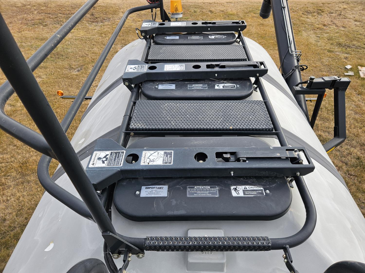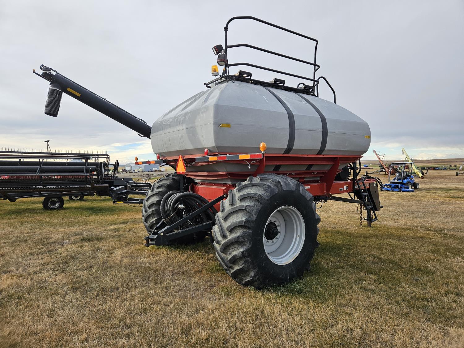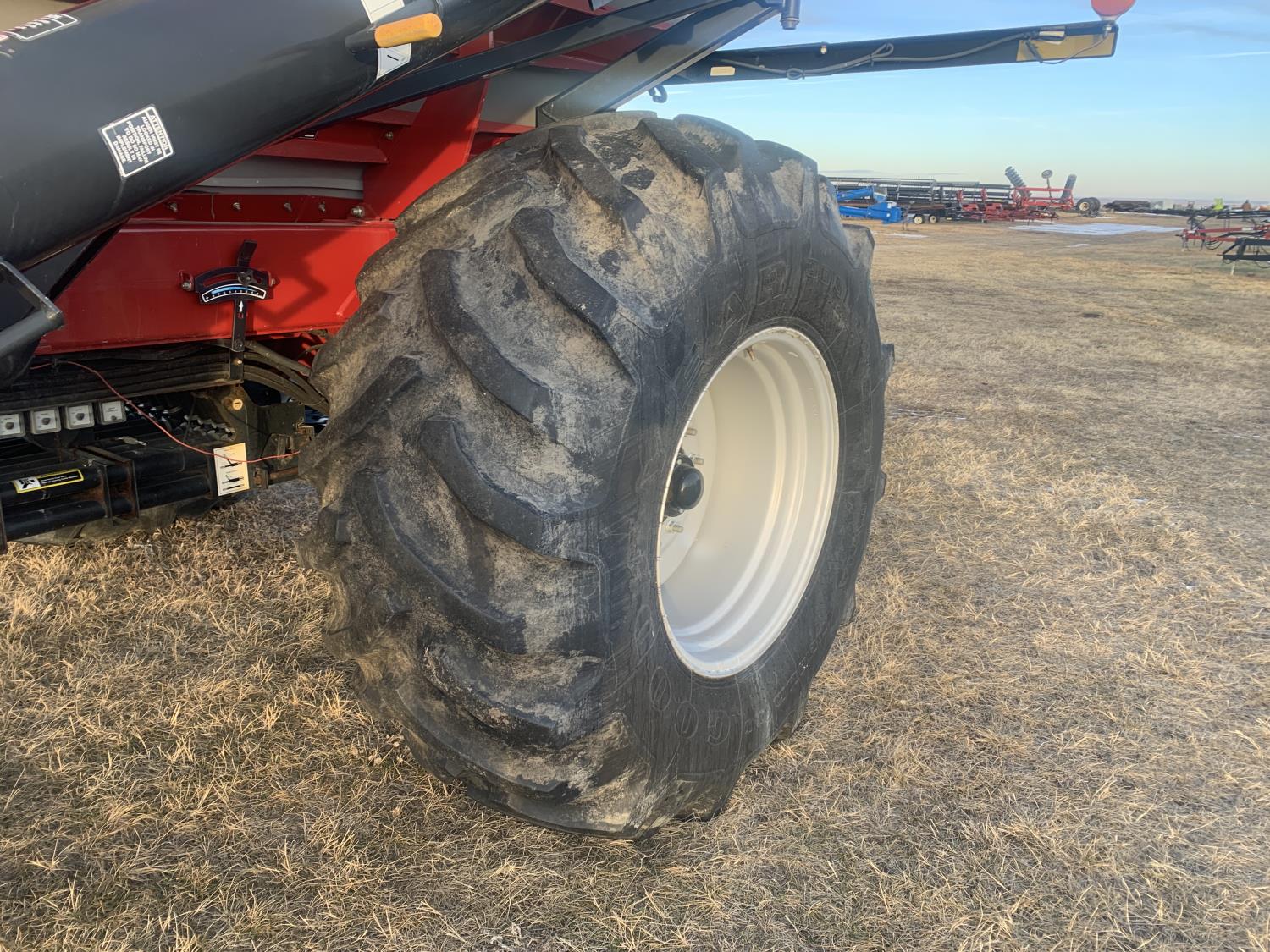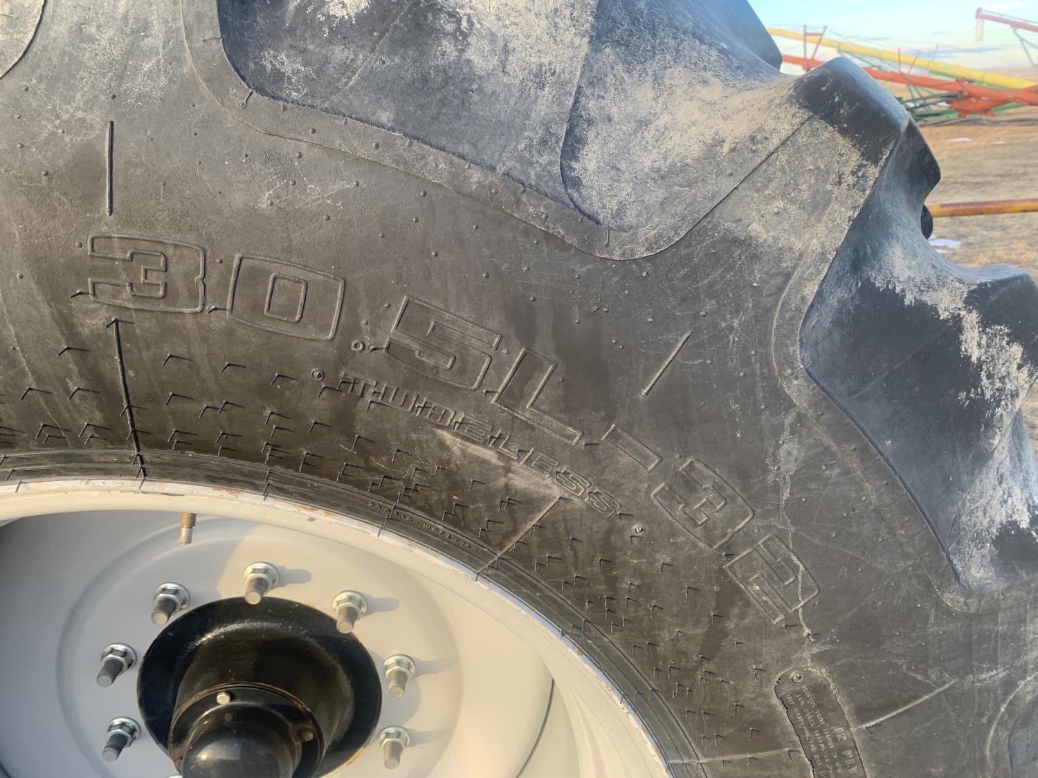 dual fan, variable rate, 9 inch loading auger, 3 compartment, compartment 1 186 bushel, compartment 2 102 bushel, compartment 3 142 bushel, 30.5L-32 tires