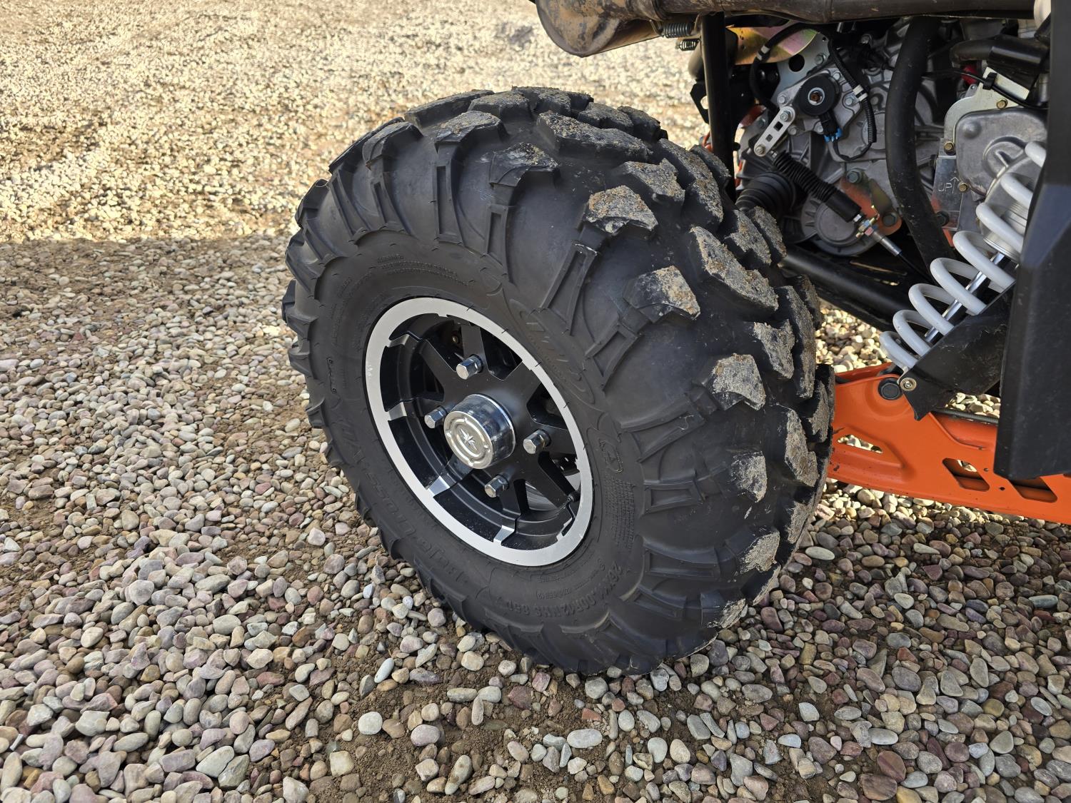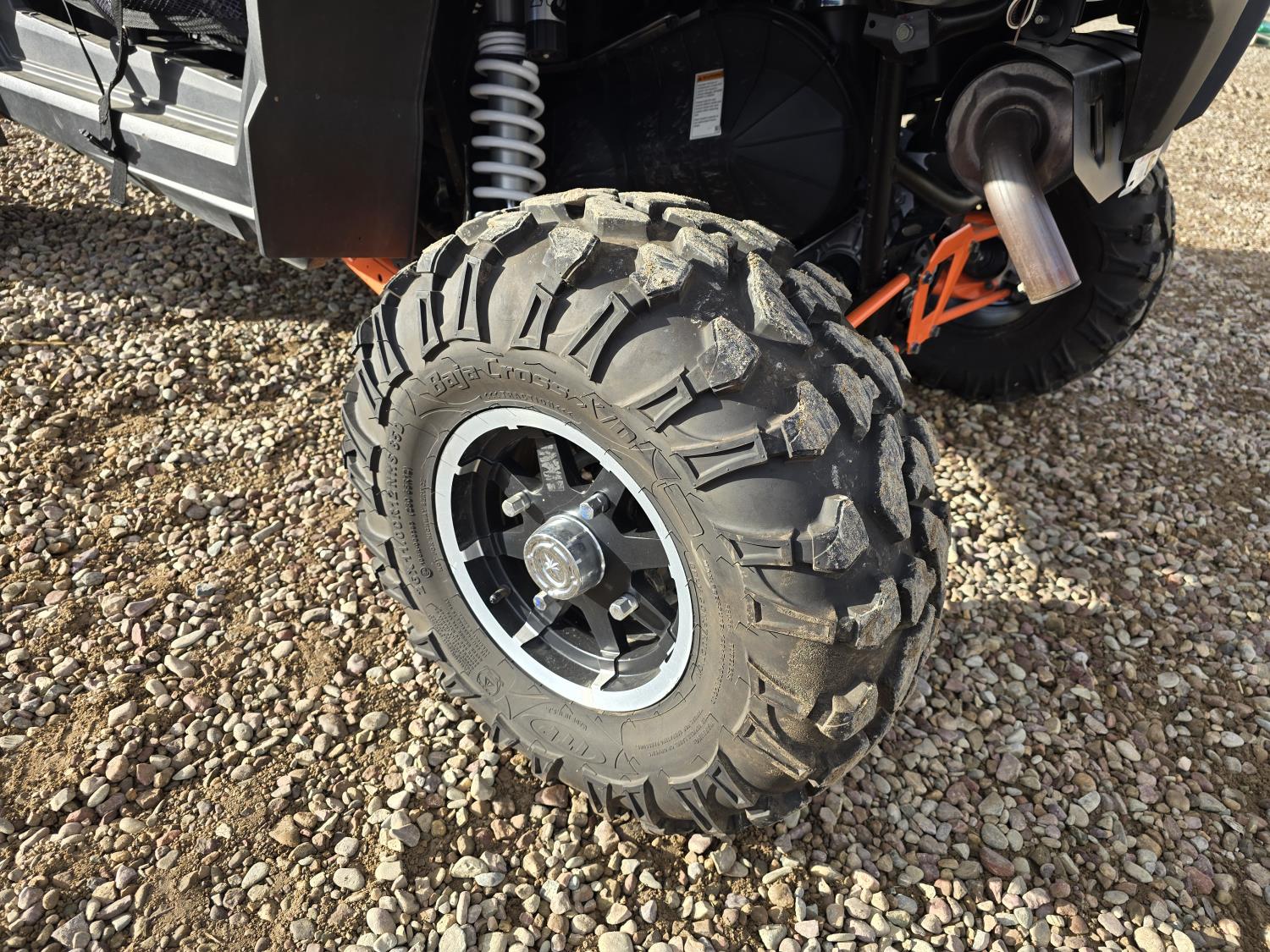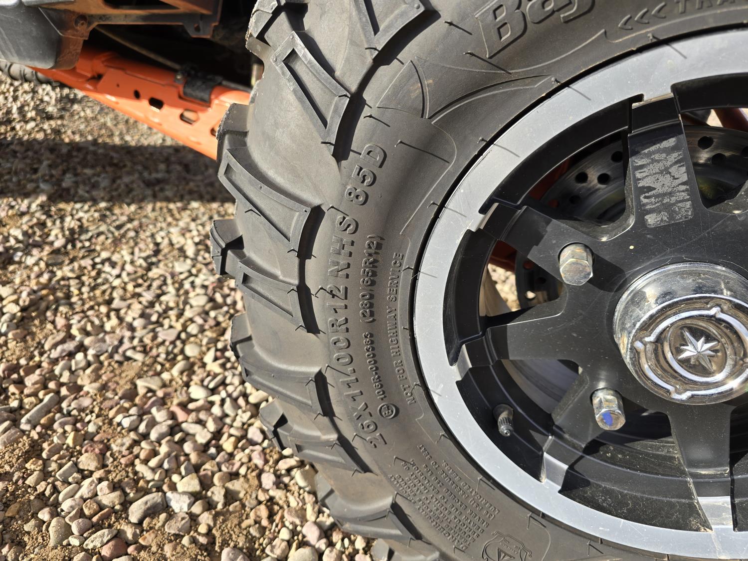 900 cc fuel injected engine, automatic transmission, Hi/Lo range, reverse, open canopy, front locking differential, 26X9.00R12 front tires, 26X11.00R12 rear tires