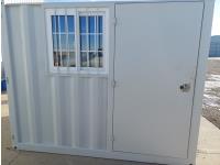 108 inch L x 79 inch W x 84 inch T, side man door and sliding window