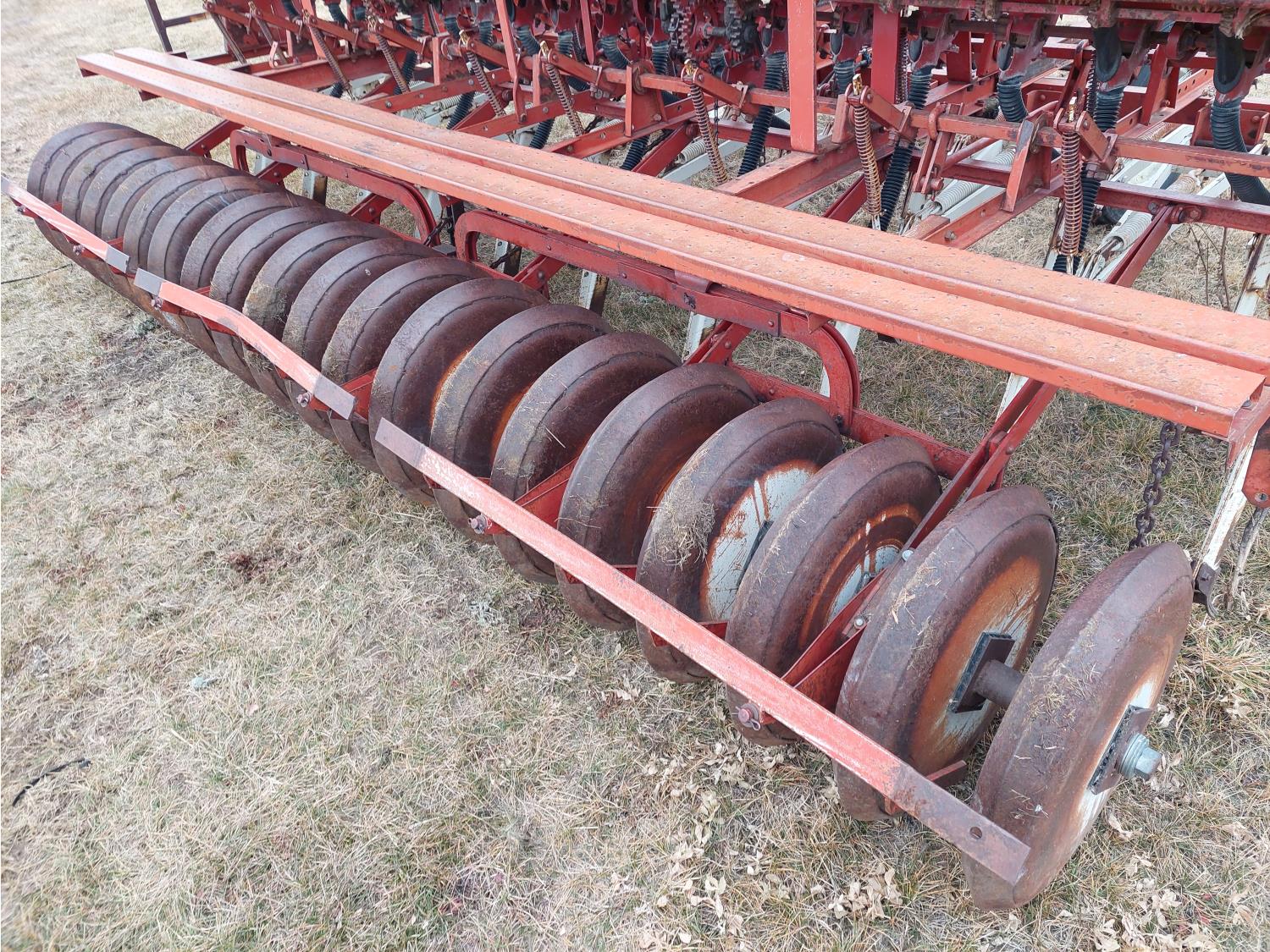 7.5 inch spacing, steel press wheels, 3 inch press wheel width, disc marker, 6.70-15 drill tires