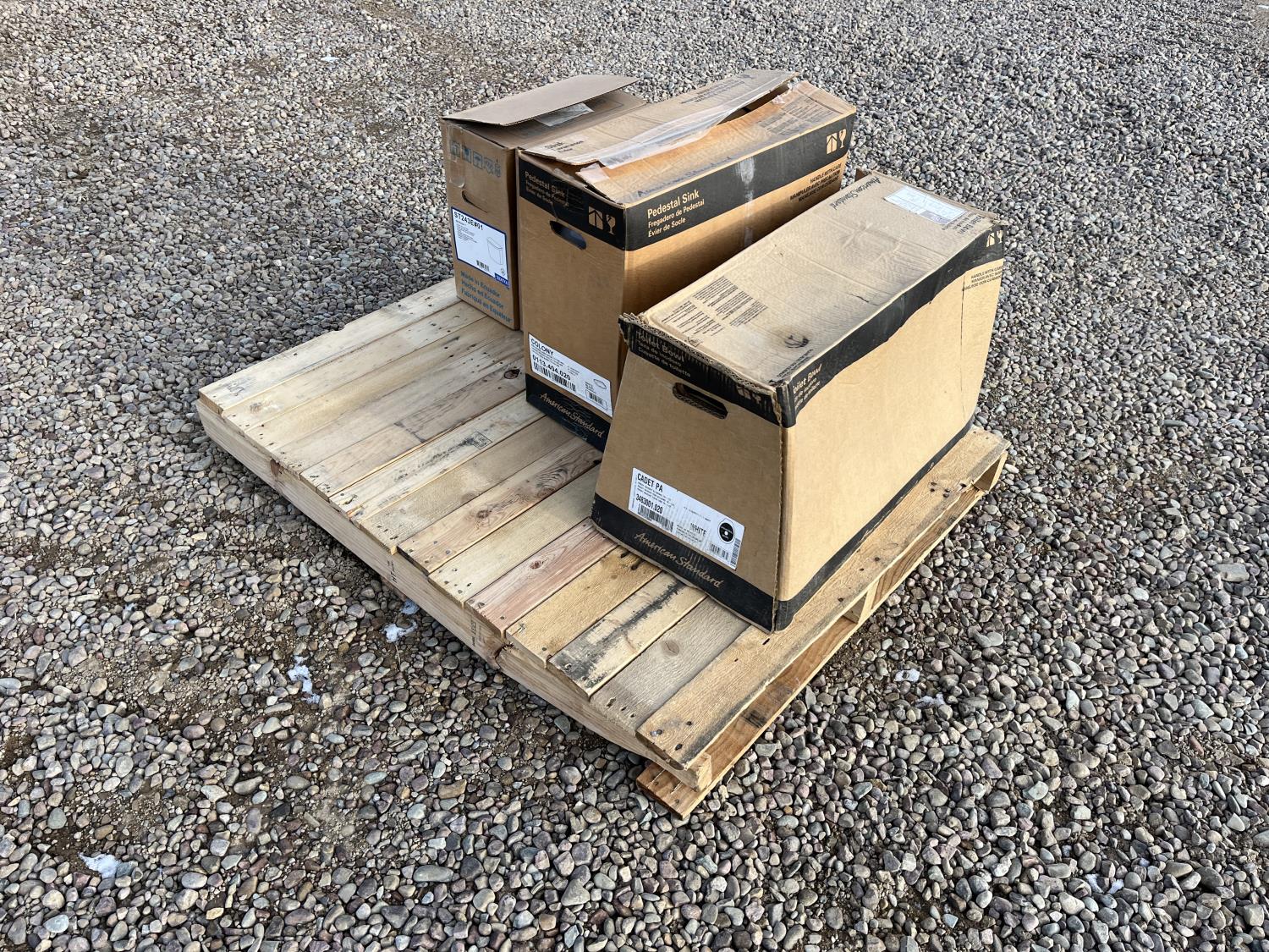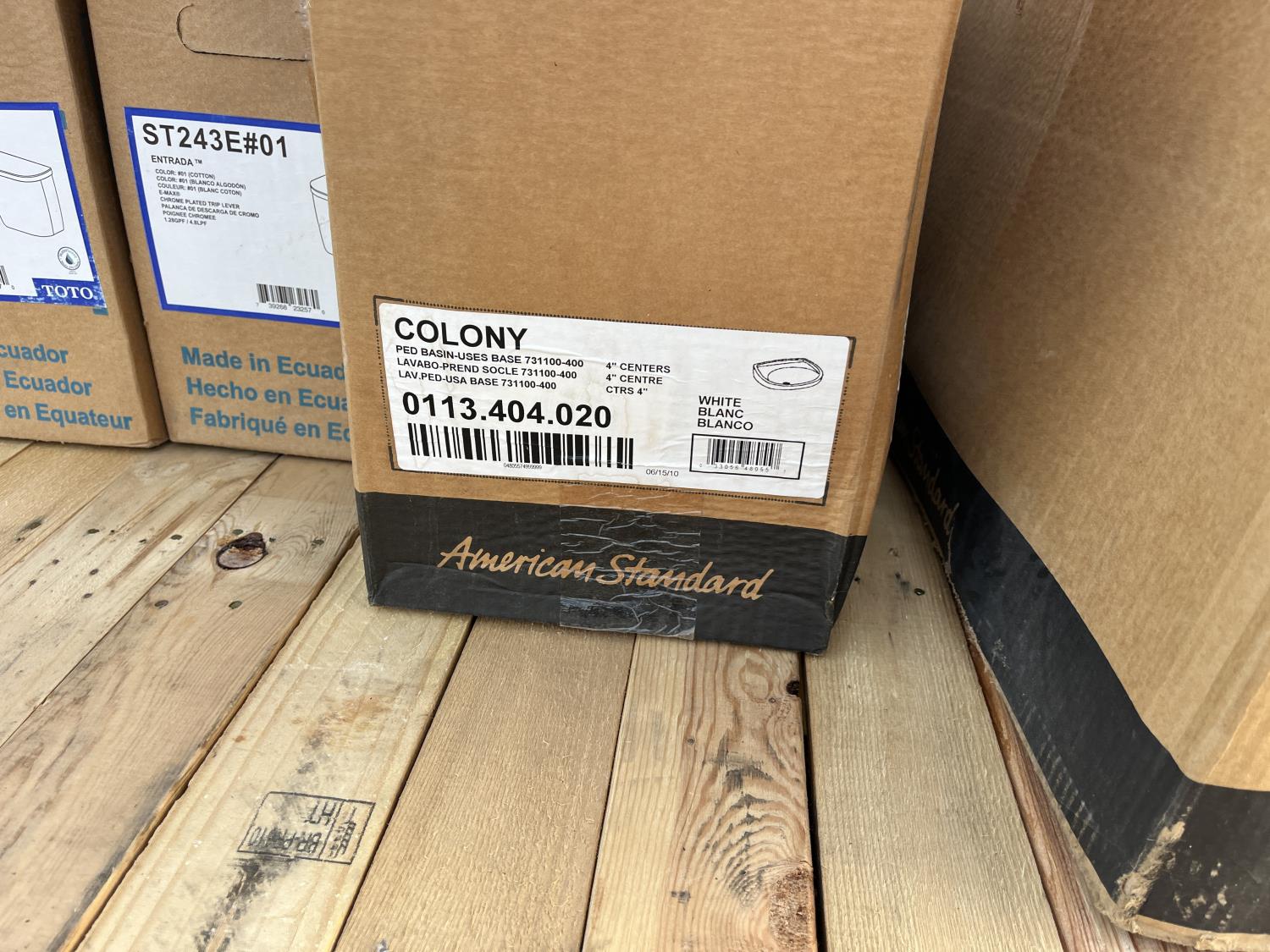 (2) Toto toilet tanks, American Standard sink, American Standard toilet base