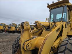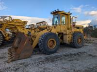 3306 200HP 10.5 liter diesel engine, enclosed cab, A/C, air ride seat, 4 speed powershift transmission, electric circulating block heater, 122 inch toothed bucket, manual coupler, counter weight, 26.5-25 tires