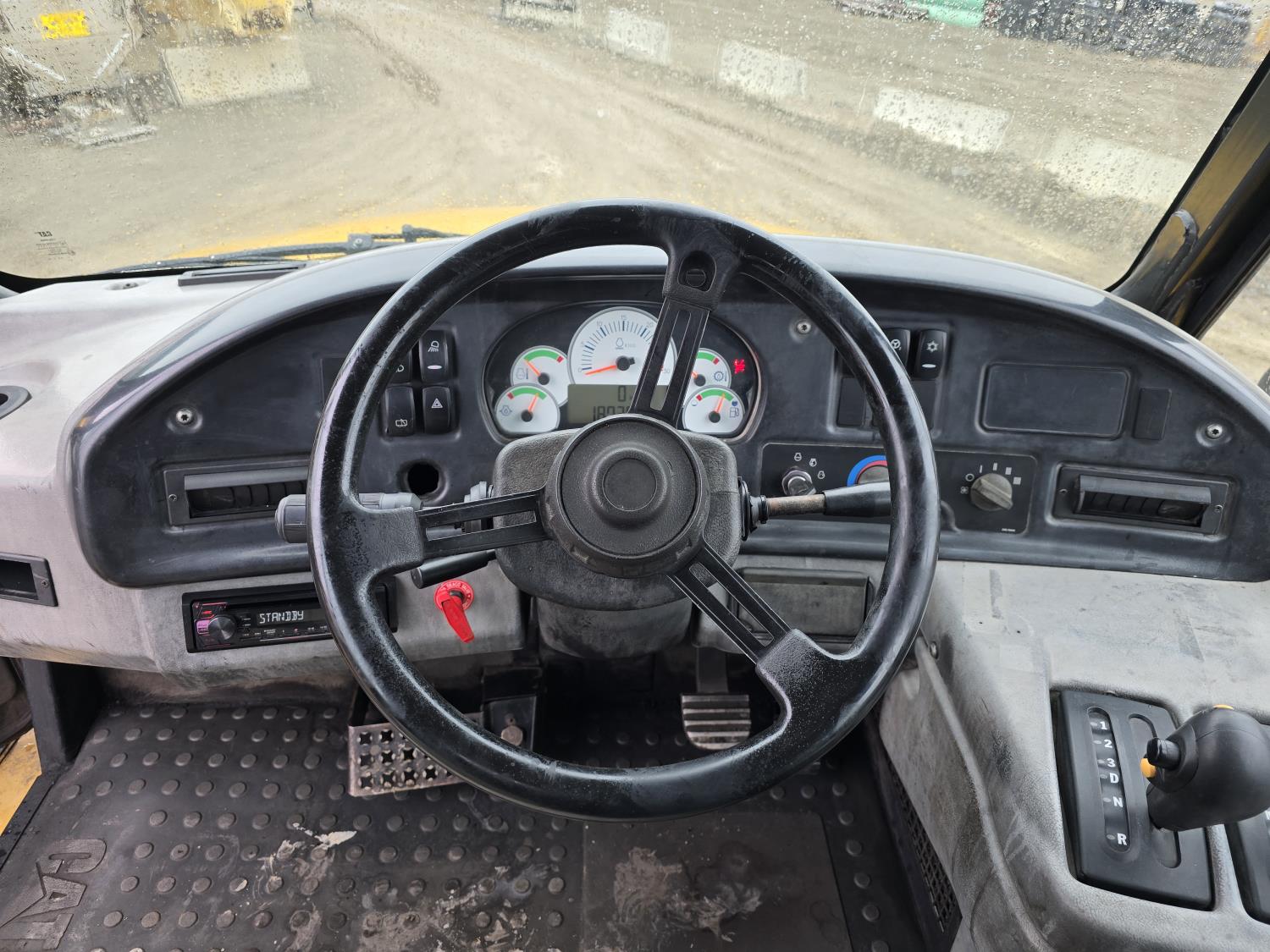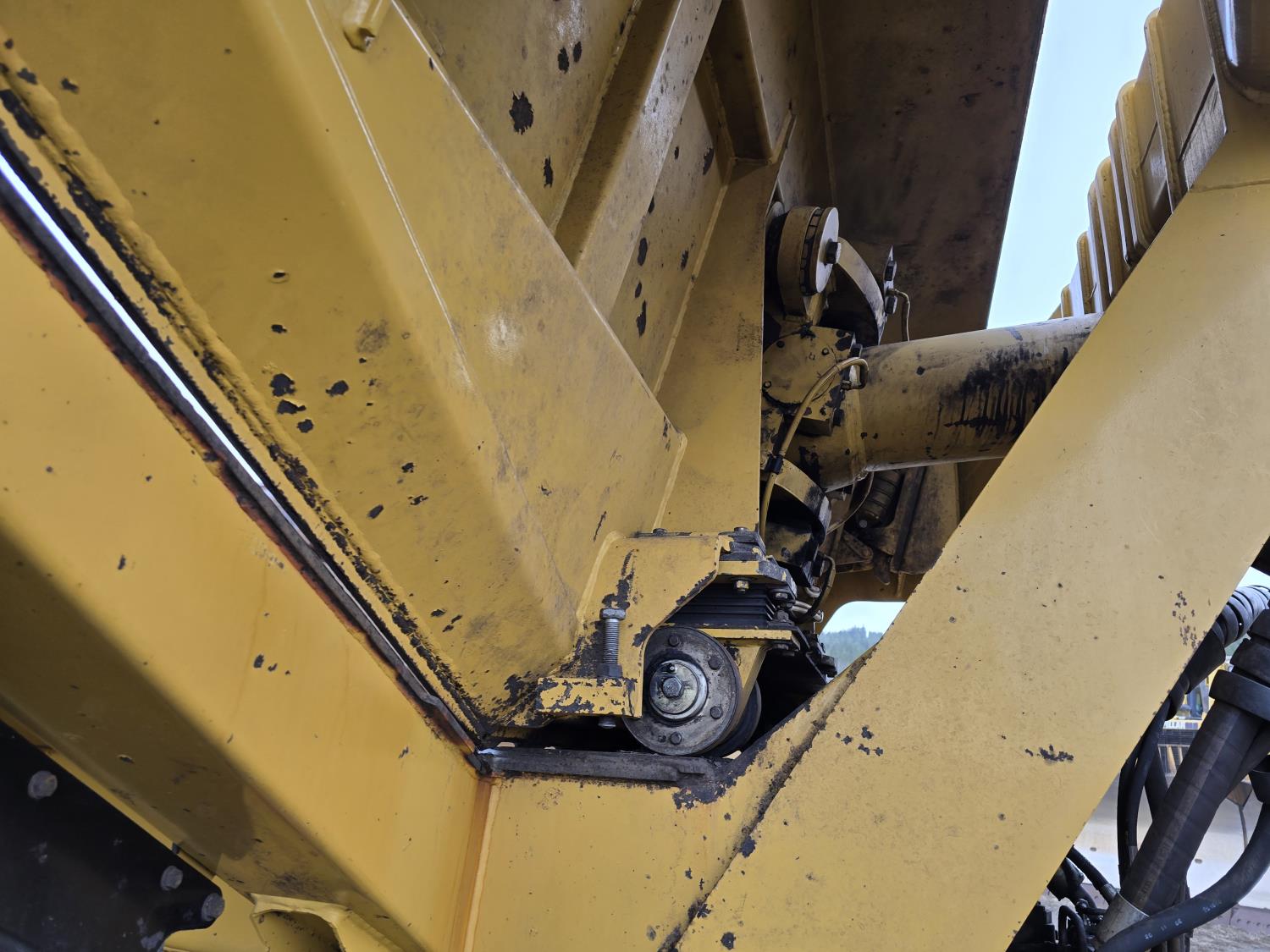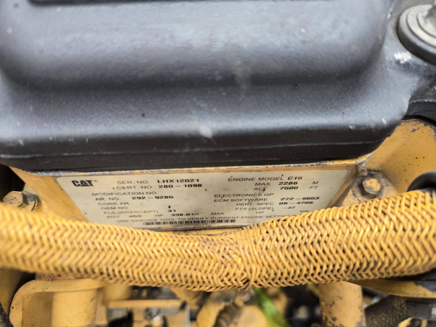 Caterpillar C15 15.2 L 6 cylinder 453 HP engine, positive air shutoff, automatic transmission, A/C, air ride seat, hydraulic tail gate, ejector box, 29.5R25 tires