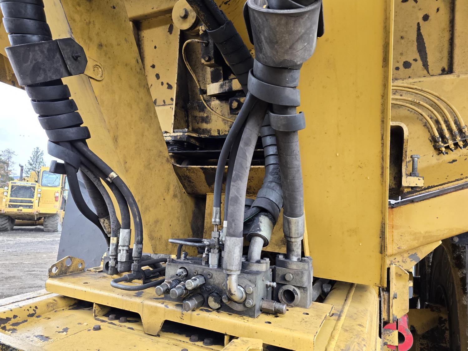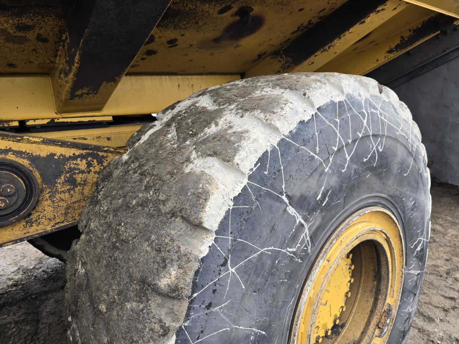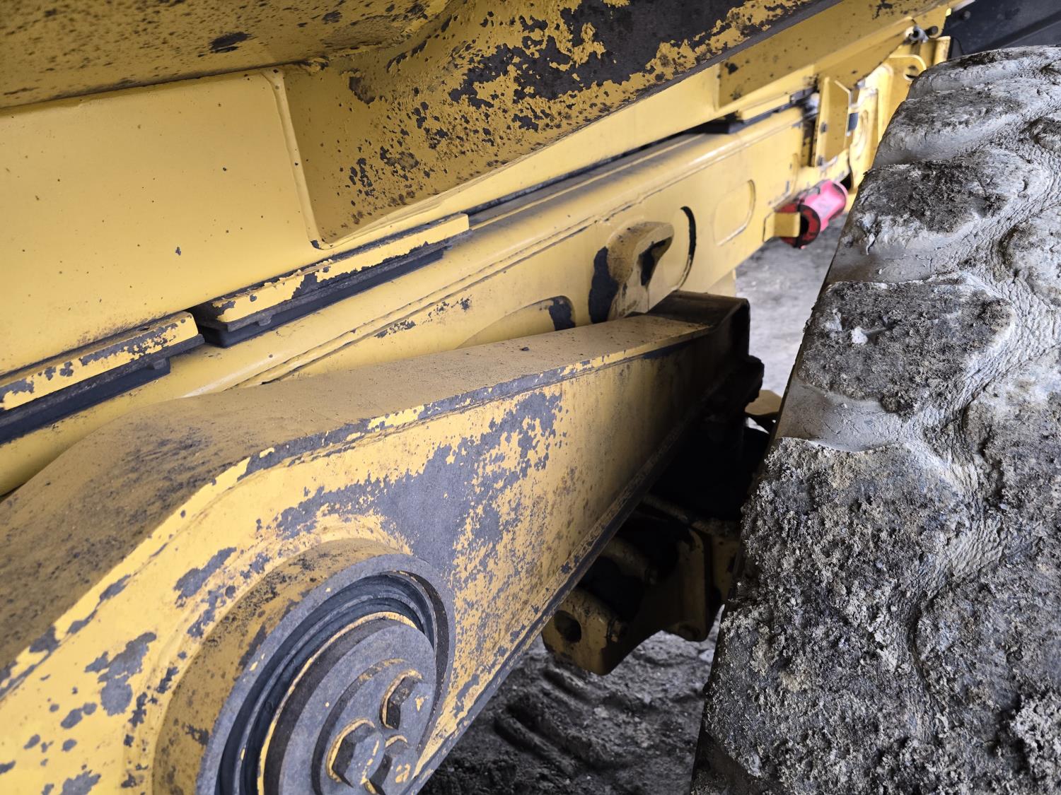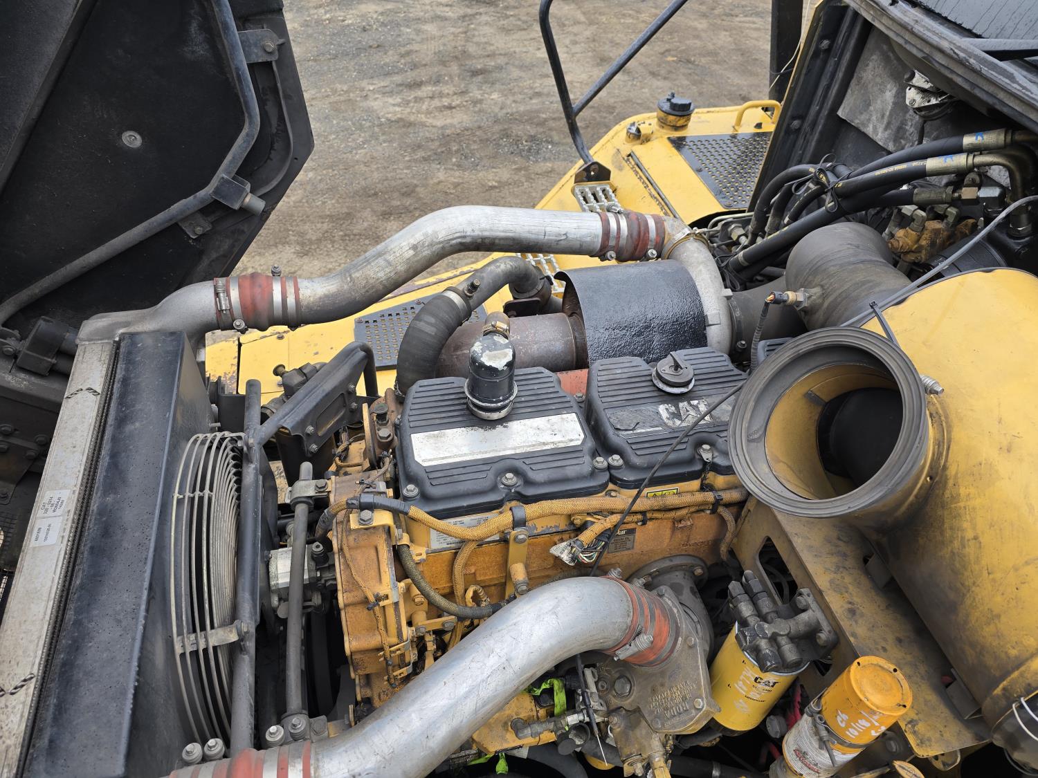 Caterpillar C15 15.2 L 6 cylinder 453 HP engine, positive air shutoff, automatic transmission, A/C, air ride seat, hydraulic tail gate, ejector box, 29.5R25 tires