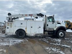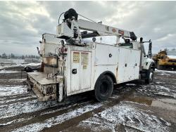 Maxxforce GDT310 9.3 L 6 cylinder 310 HP diesel engine, engine brake, engine block heater, Allison automatic transmission, exhaust brake, A/C, stereo, 14 ft box, 2009 PKS body, 2 ft rear platform, IMT 170-00041-1 straight boom rear mount crane, outriggers, spring suspension, 12,000 lb front axle, 19,480 lb rear axles, diff lock, 190 inch WB, 11R22.5 tires
