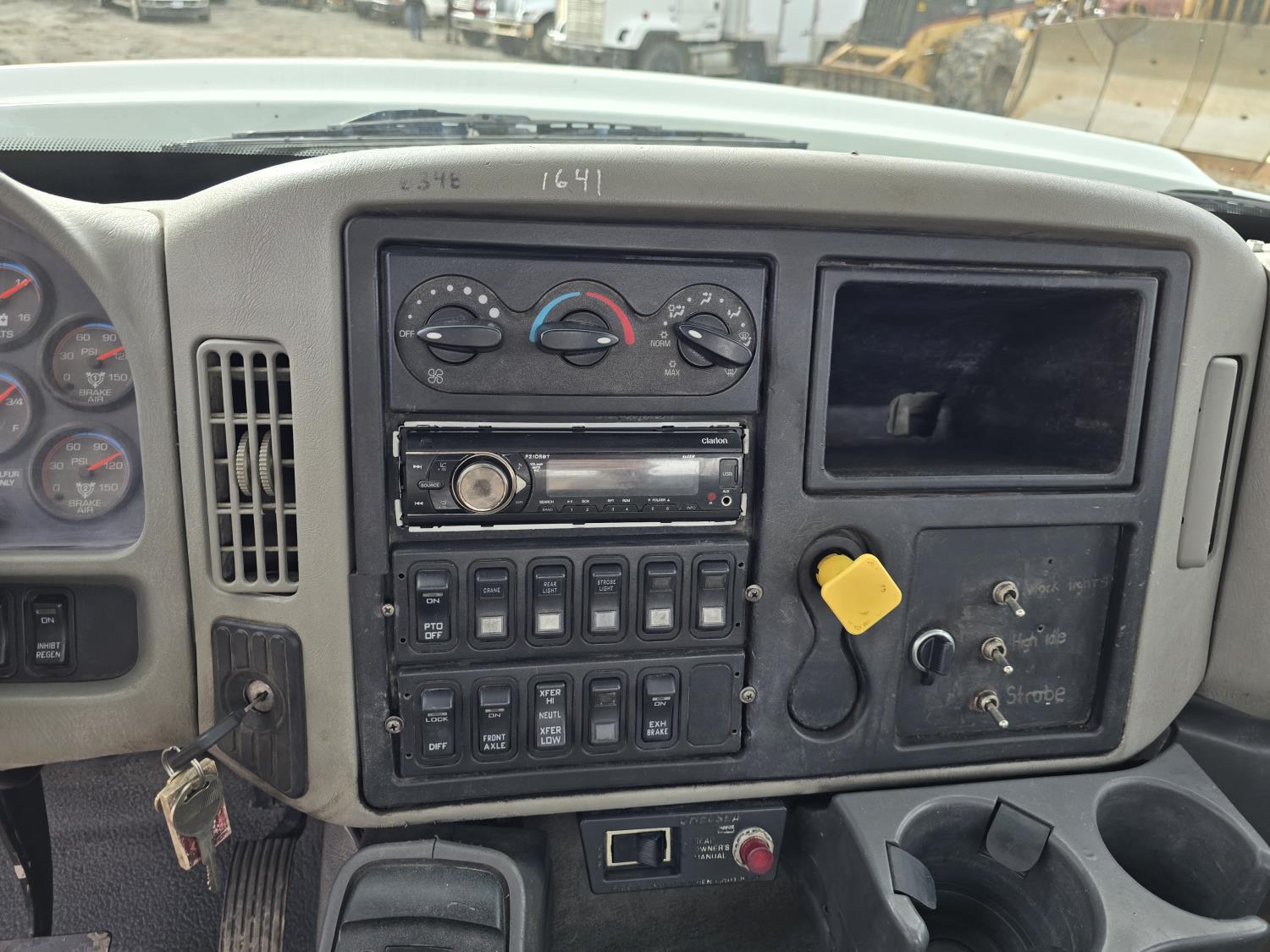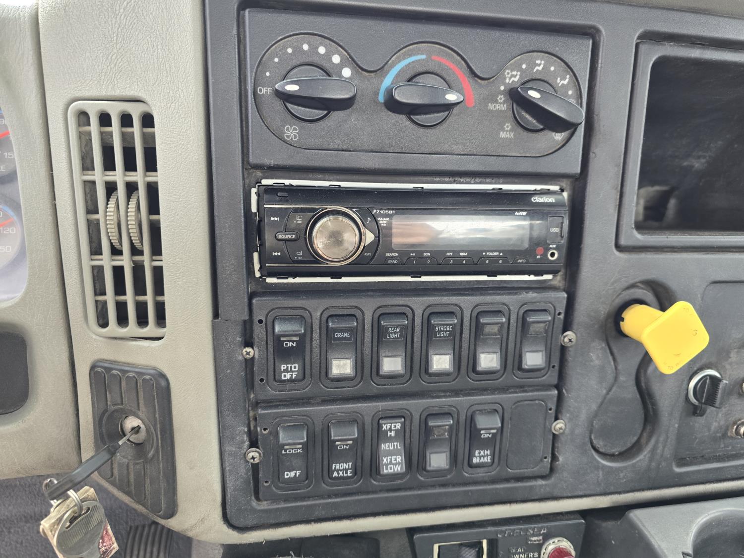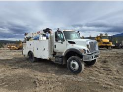 Maxxforce GDT310 9.3 L 6 cylinder 310 HP diesel engine, engine brake, engine block heater, Allison automatic transmission, exhaust brake, A/C, stereo, 14 ft box, 2009 PKS body, 2 ft rear platform, IMT 170-00041-1 straight boom rear mount crane, outriggers, spring suspension, 12,000 lb front axle, 19,480 lb rear axles, diff lock, 190 inch WB, 11R22.5 tires