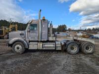 Detroit DD16 15.6 L 6 cylinder 600 HP diesel engine, engine brake, Eaton Fuller RTLO20918B 18 speed manual transmission, 24 inch sleeper, A/C, cruise control, leather interior, air ride seats, radio, CB radio, 2-way radio, hydraulic wet kit, Magnum aluminum headache rack, aluminum tool boxes, beacons, air ride cab, saddle boxes, chain holders, low boy ramp, Airliner air ride suspension, 20,000 lb front axle, 46,000 lb rear axles, full lockers, 4.30 ratio, 218 inch WB, all aluminum wheels, 12R24.5 front tires, 11R24.5 rear tires