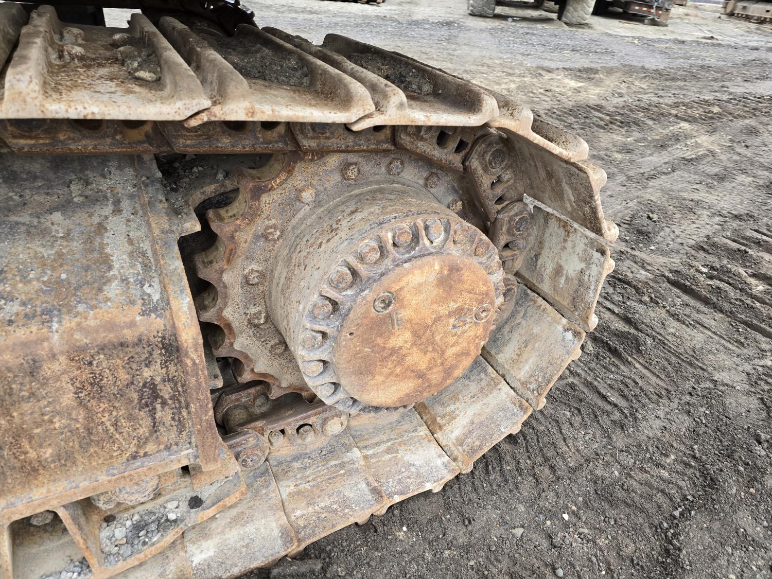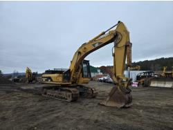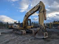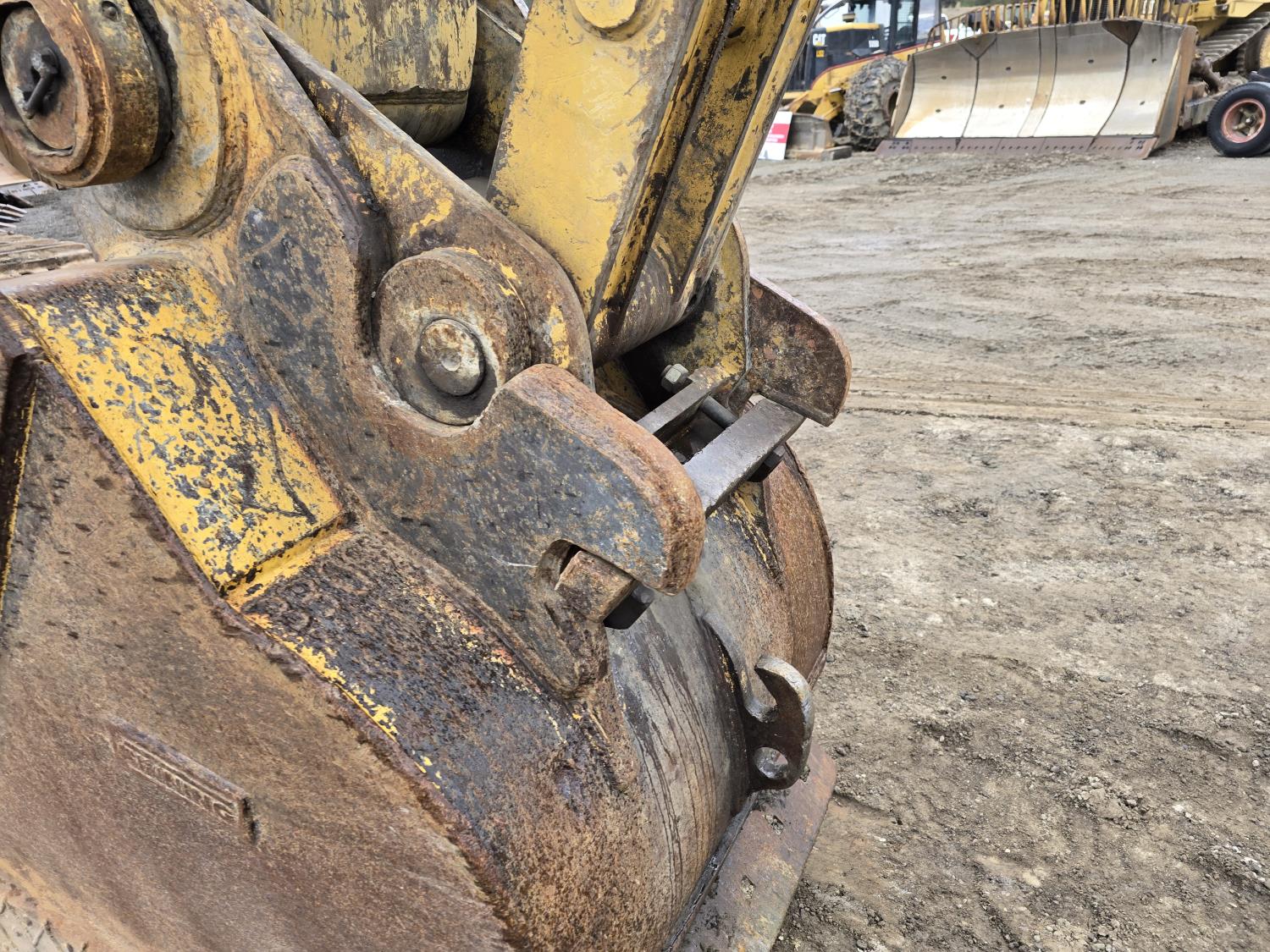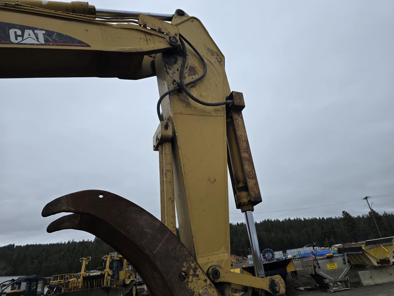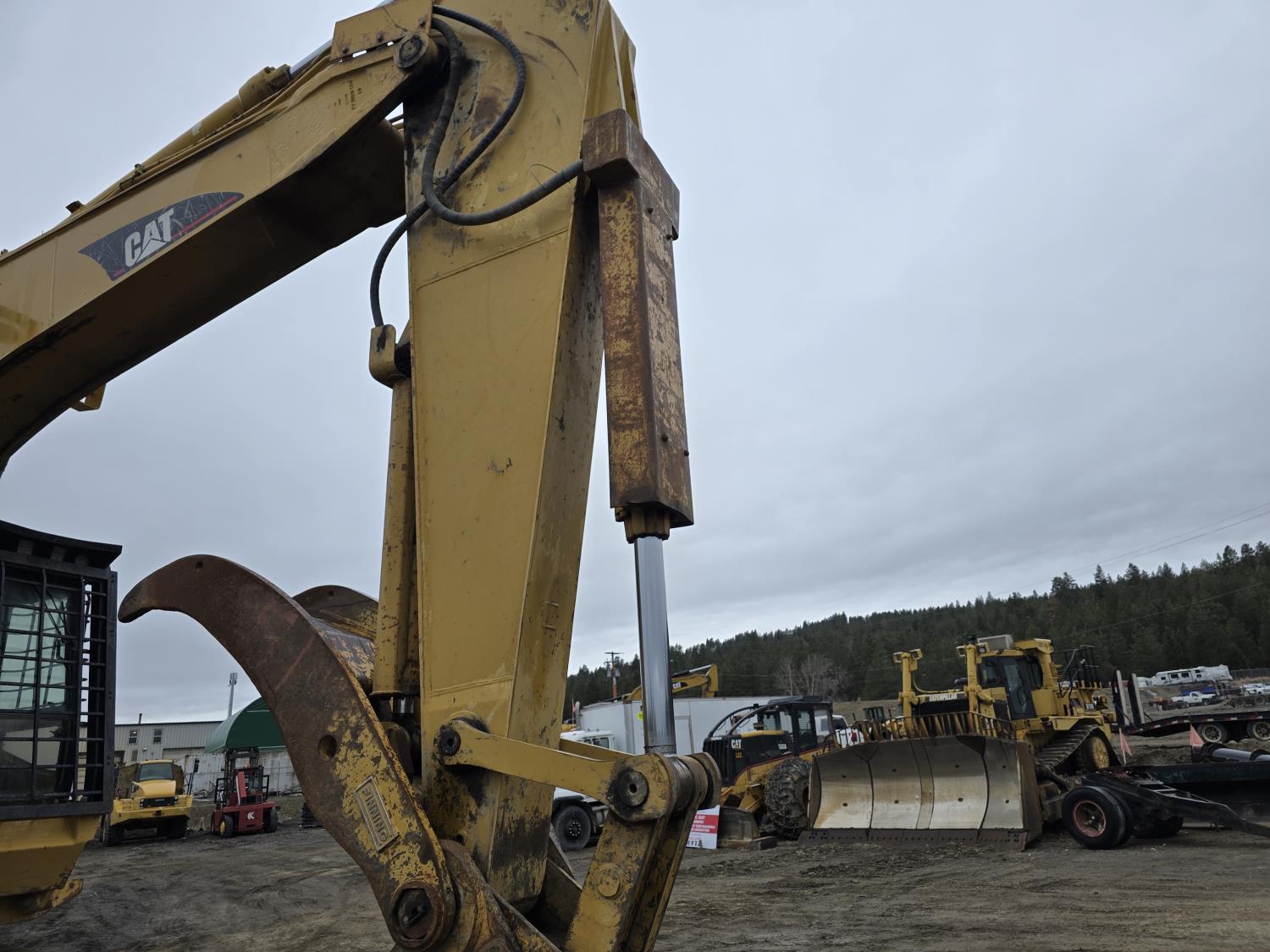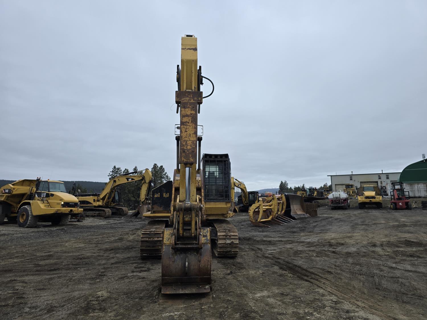 3306TA 10.5 liter 6 cylinder diesel engine, PROHEAT diesel engine heater, enclosed cab, A/C, air ride seat, pilot controls, cab screens, ROPS, forestry guarding, 48 inch dig bucket, manual coupler, hydraulic thumb, 14 Ft stick, catwalks, 27-1/2 inch track pads, double grousers