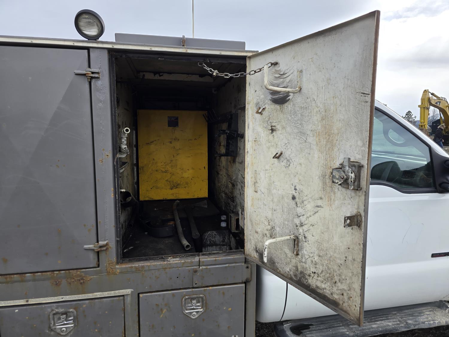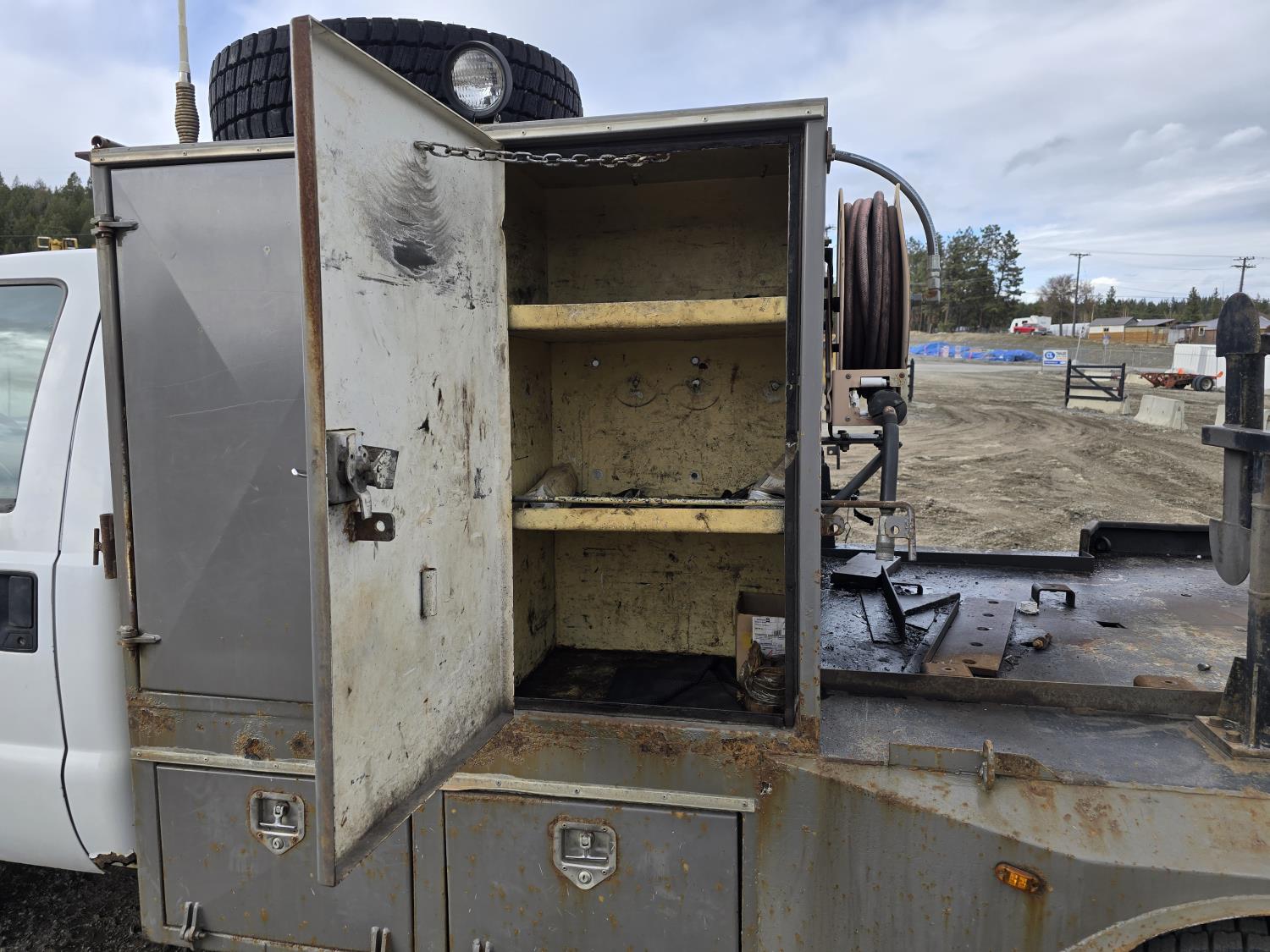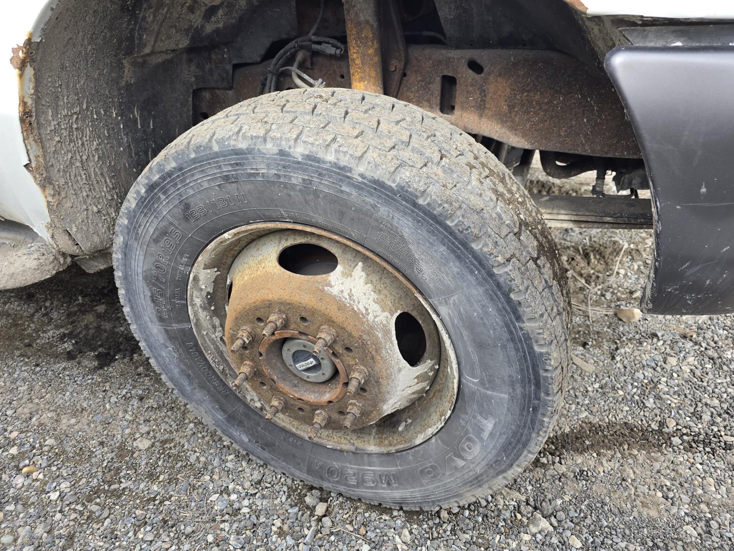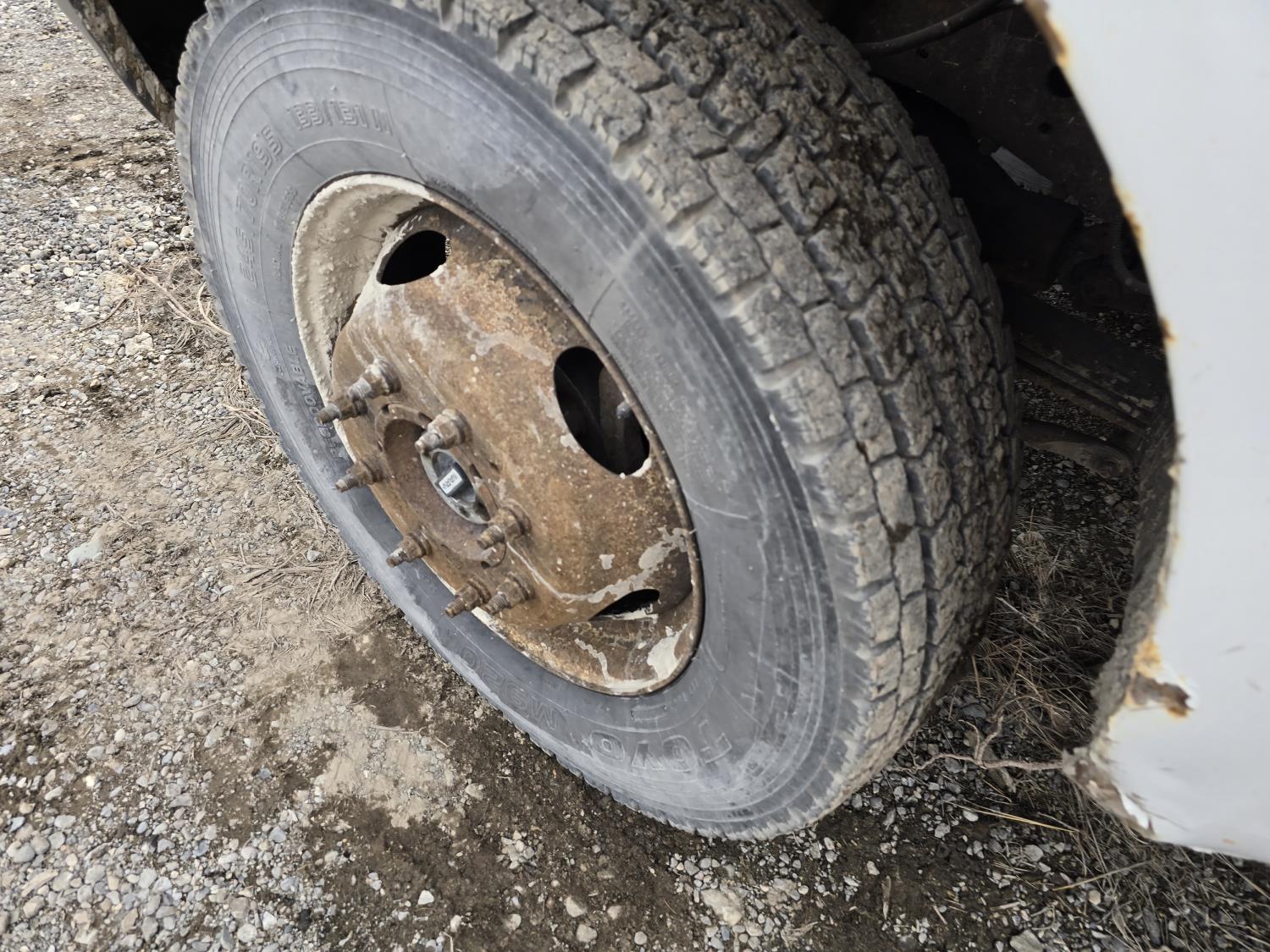 7.3L V8 diesel, 5 speed manual transmission, A/C, stereo, 8 ft long X 80 inch wide deck, 6 tool boxes, 245/70R19.5 Tires