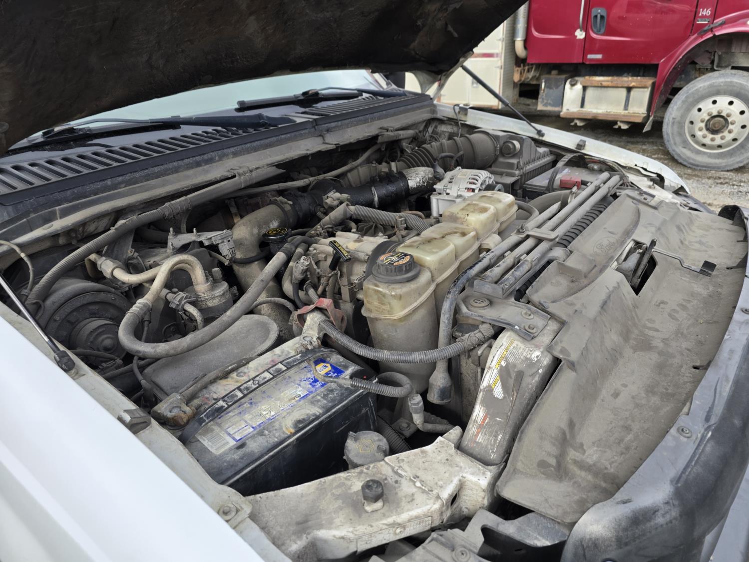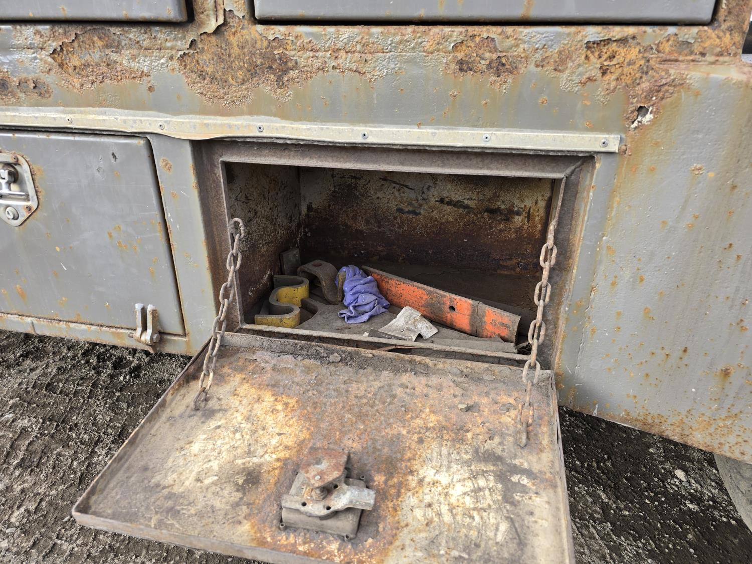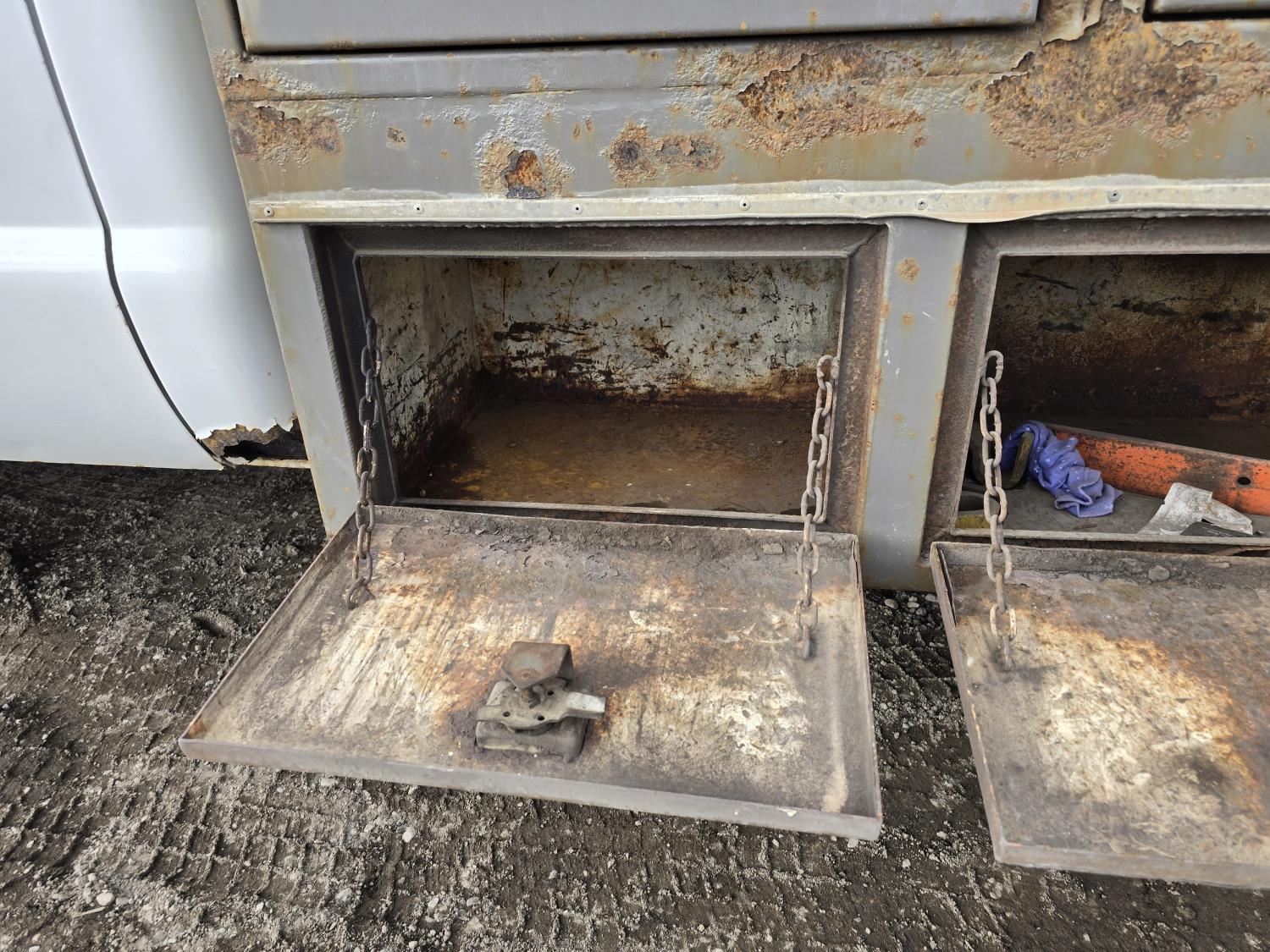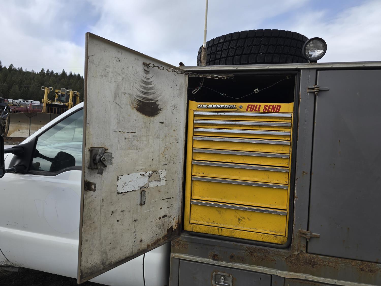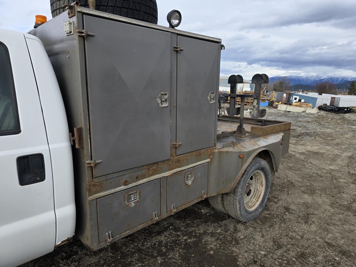 7.3L V8 diesel, 5 speed manual transmission, A/C, stereo, 8 ft long X 80 inch wide deck, 6 tool boxes, 245/70R19.5 Tires