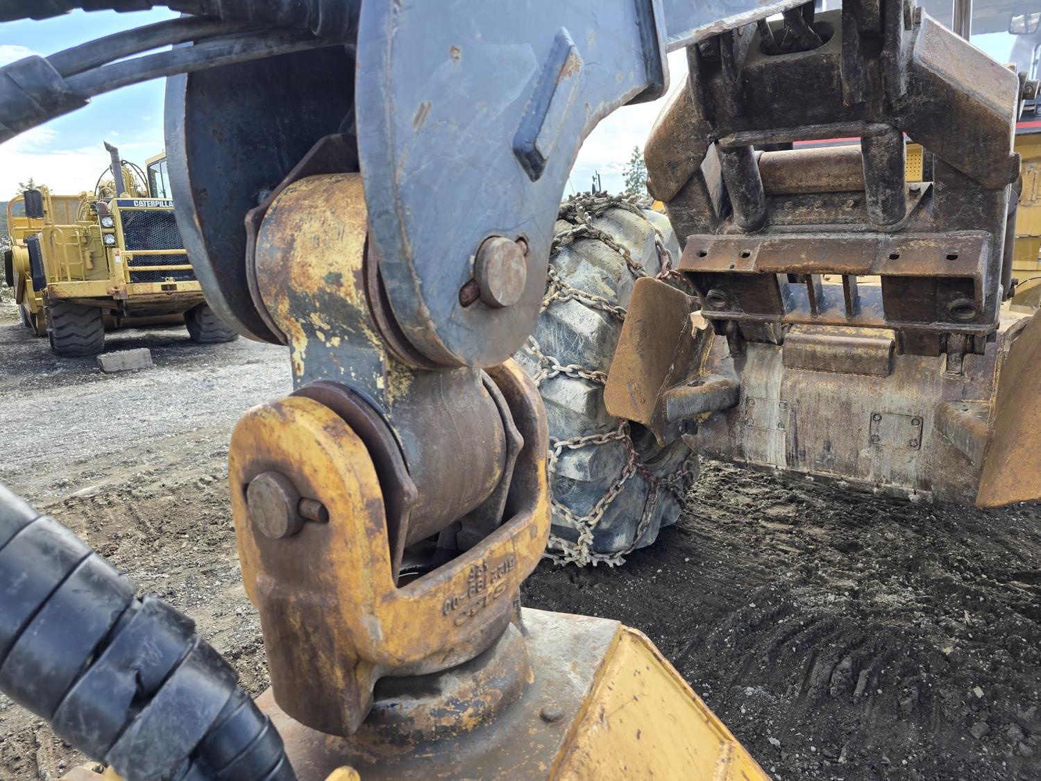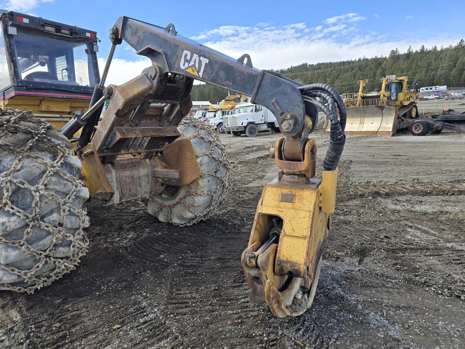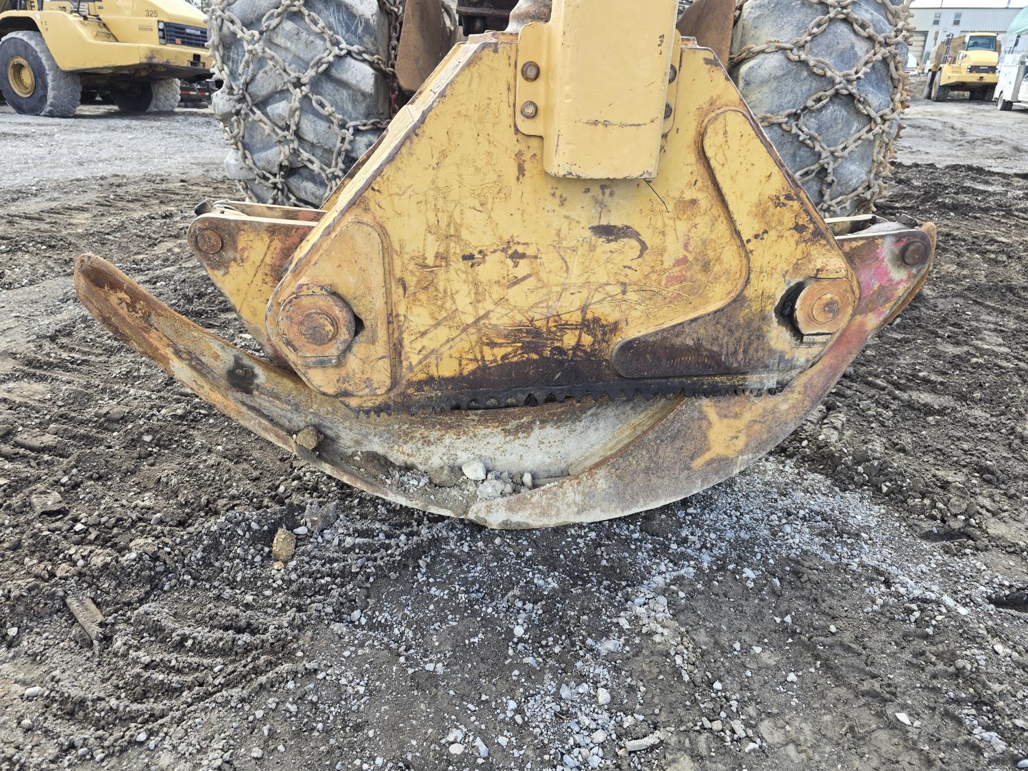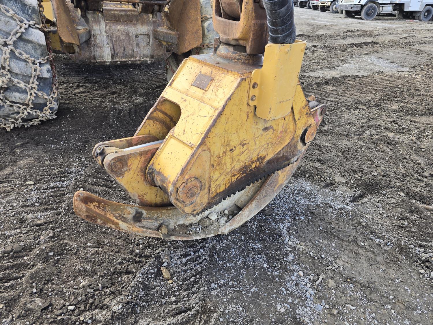 6 cylinder 7.3 L 3126 DITA diesel engine, enclosed cab, A/C, air ride seat, special grapple, cab screens, front blade, 2 sets tire chains, 30.5-32 tires