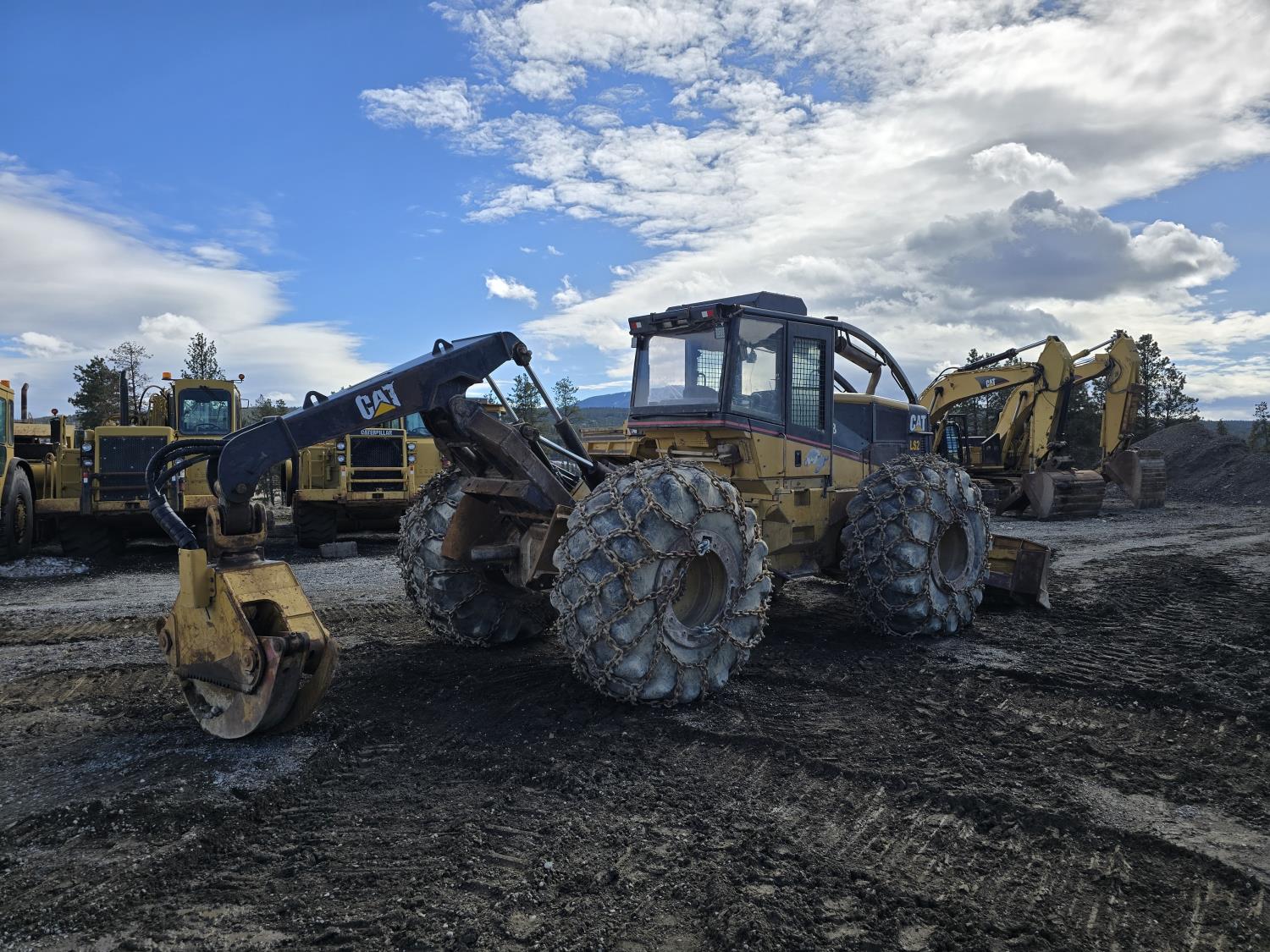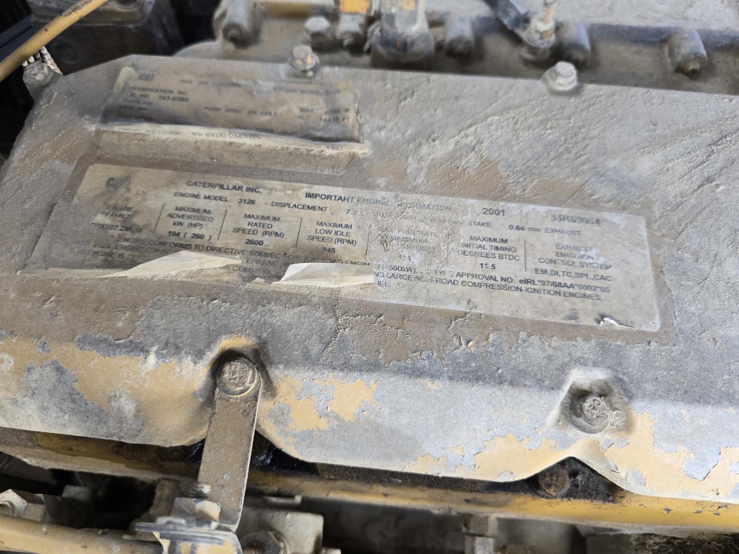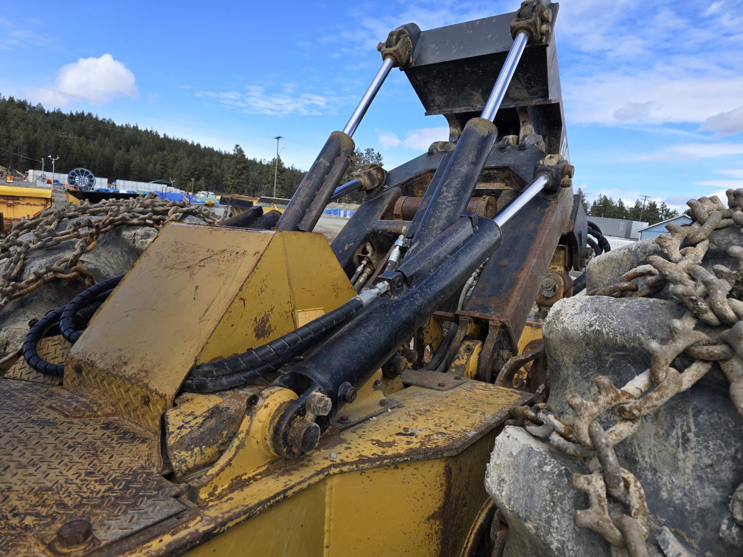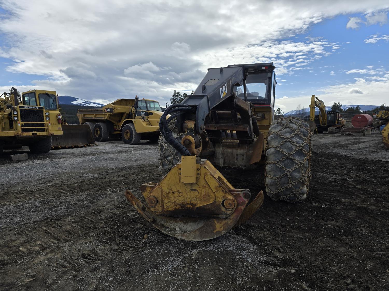 6 cylinder 7.3 L 3126 DITA diesel engine, enclosed cab, A/C, air ride seat, special grapple, cab screens, front blade, 2 sets tire chains, 30.5-32 tires