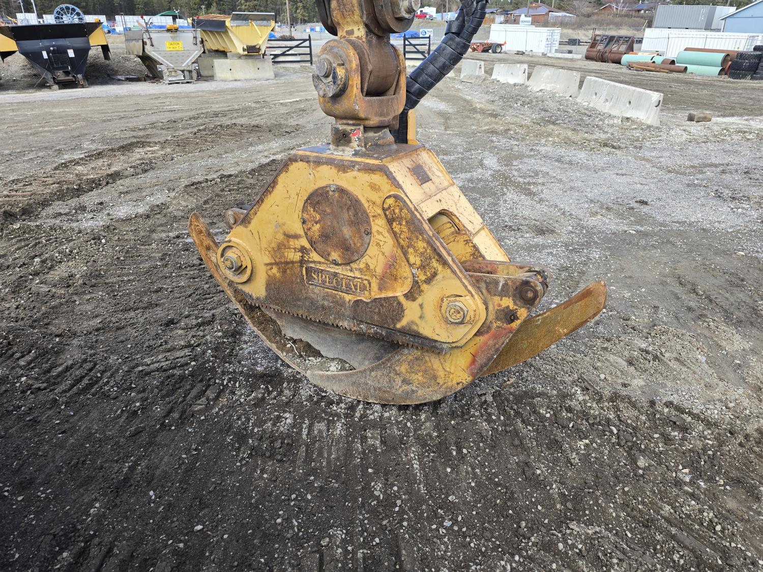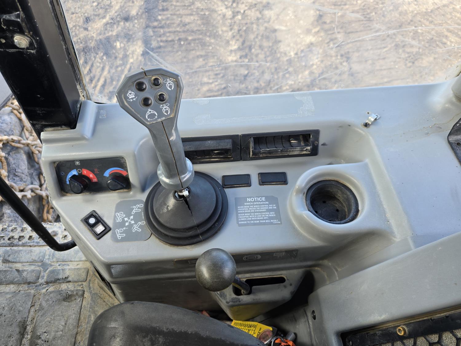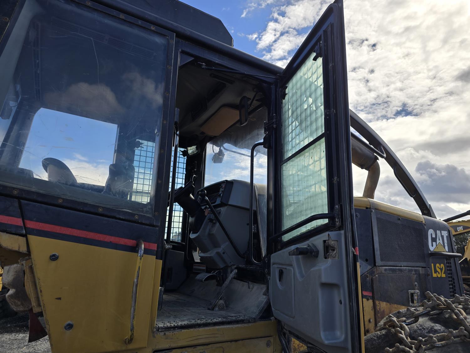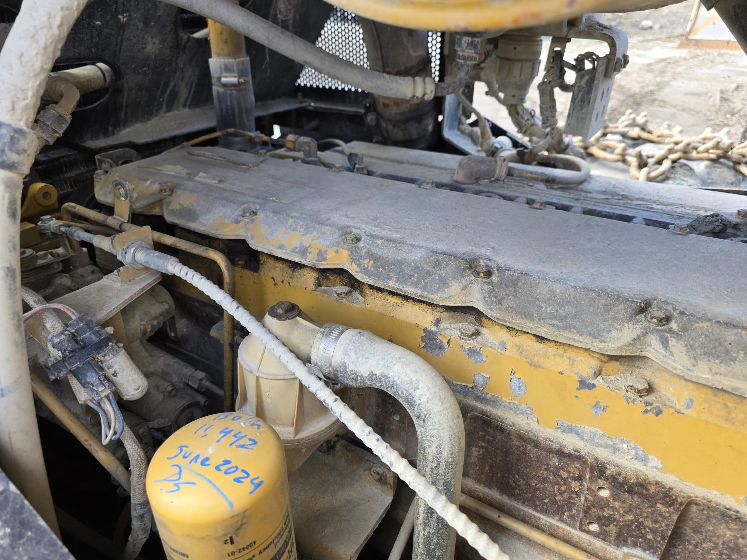 6 cylinder 7.3 L 3126 DITA diesel engine, enclosed cab, A/C, air ride seat, special grapple, cab screens, front blade, 2 sets tire chains, 30.5-32 tires