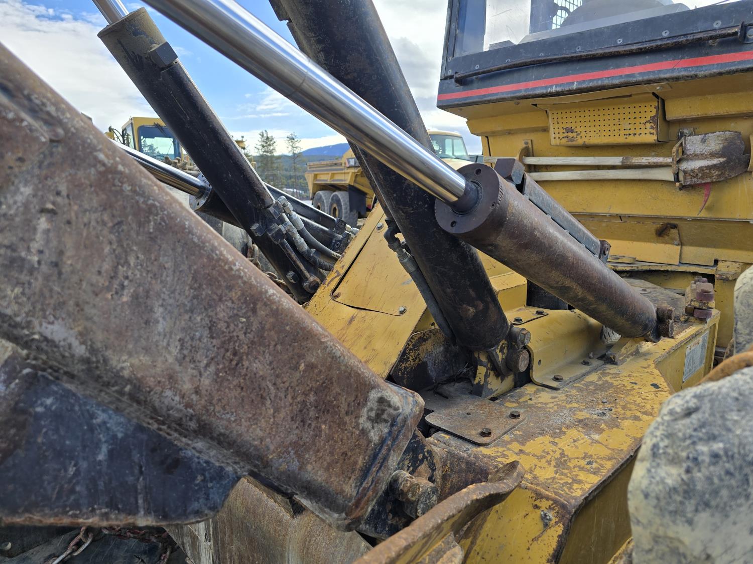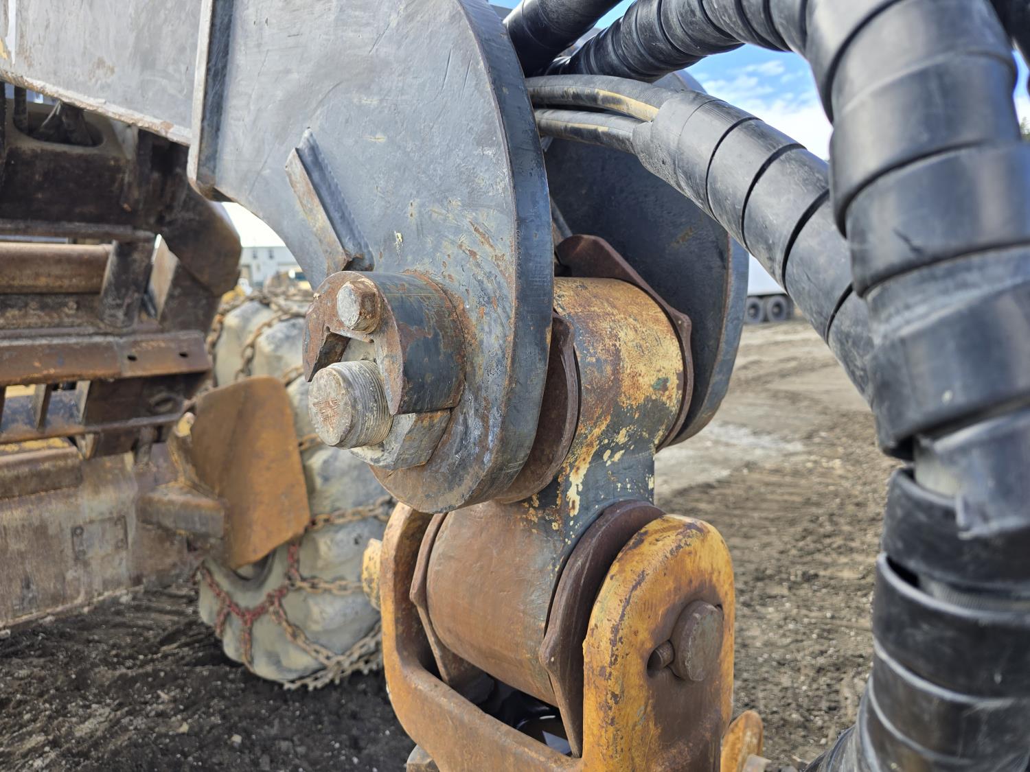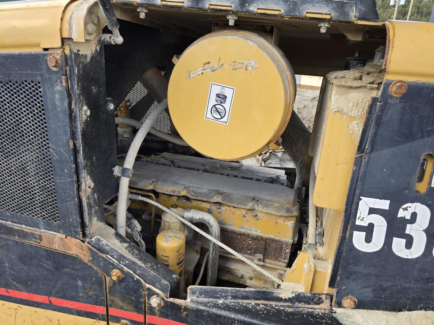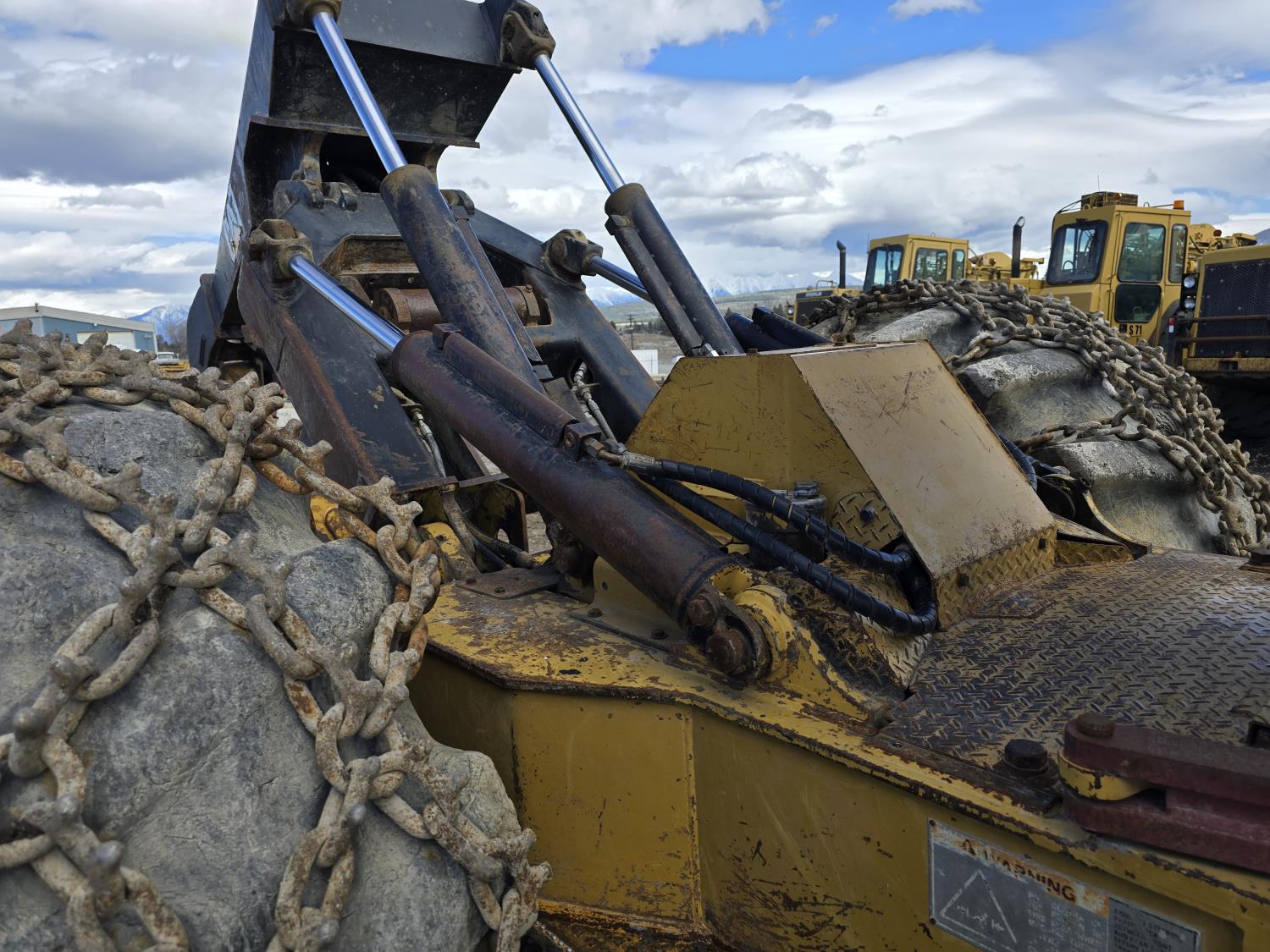 6 cylinder 7.3 L 3126 DITA diesel engine, enclosed cab, A/C, air ride seat, special grapple, cab screens, front blade, 2 sets tire chains, 30.5-32 tires