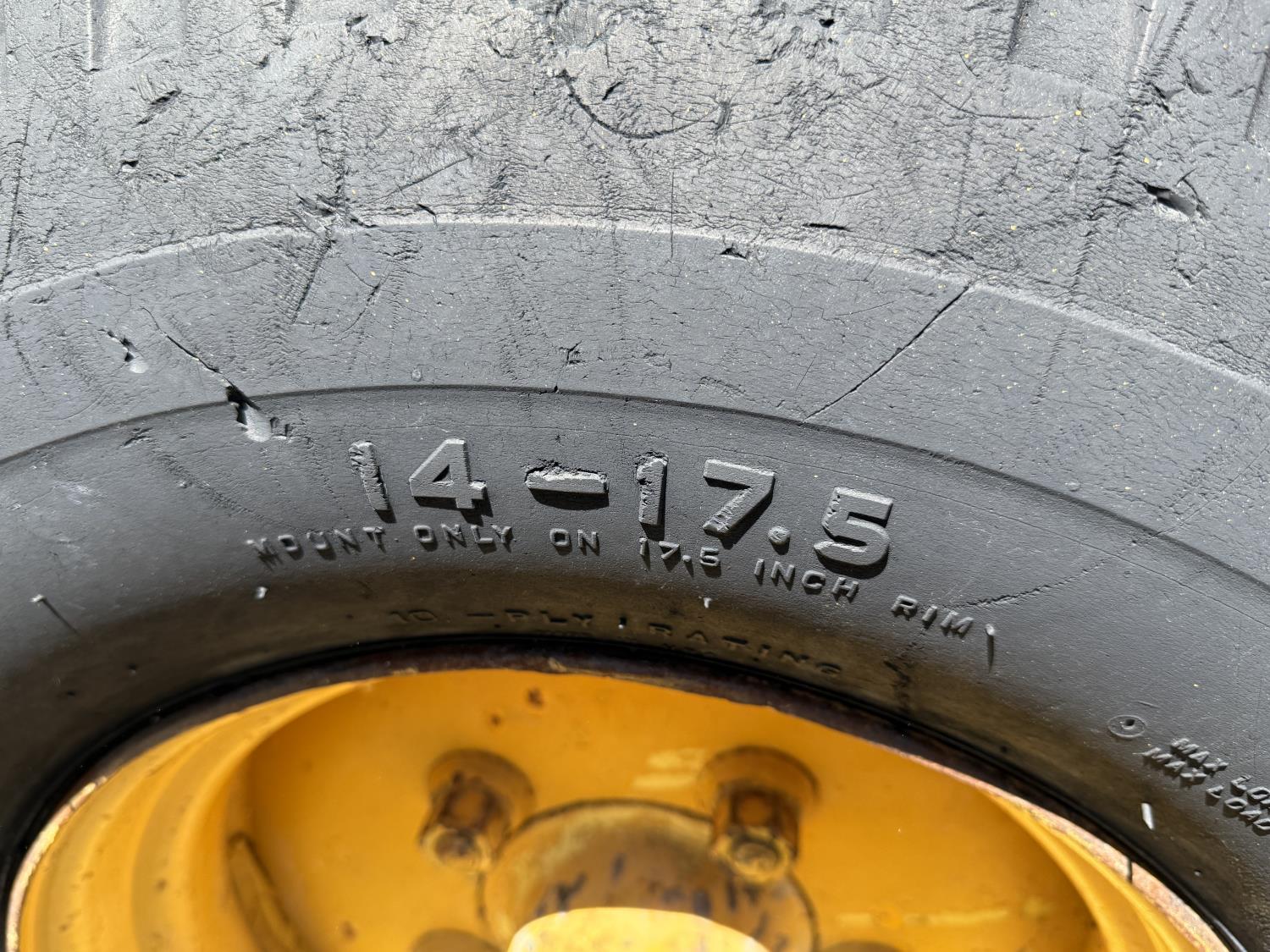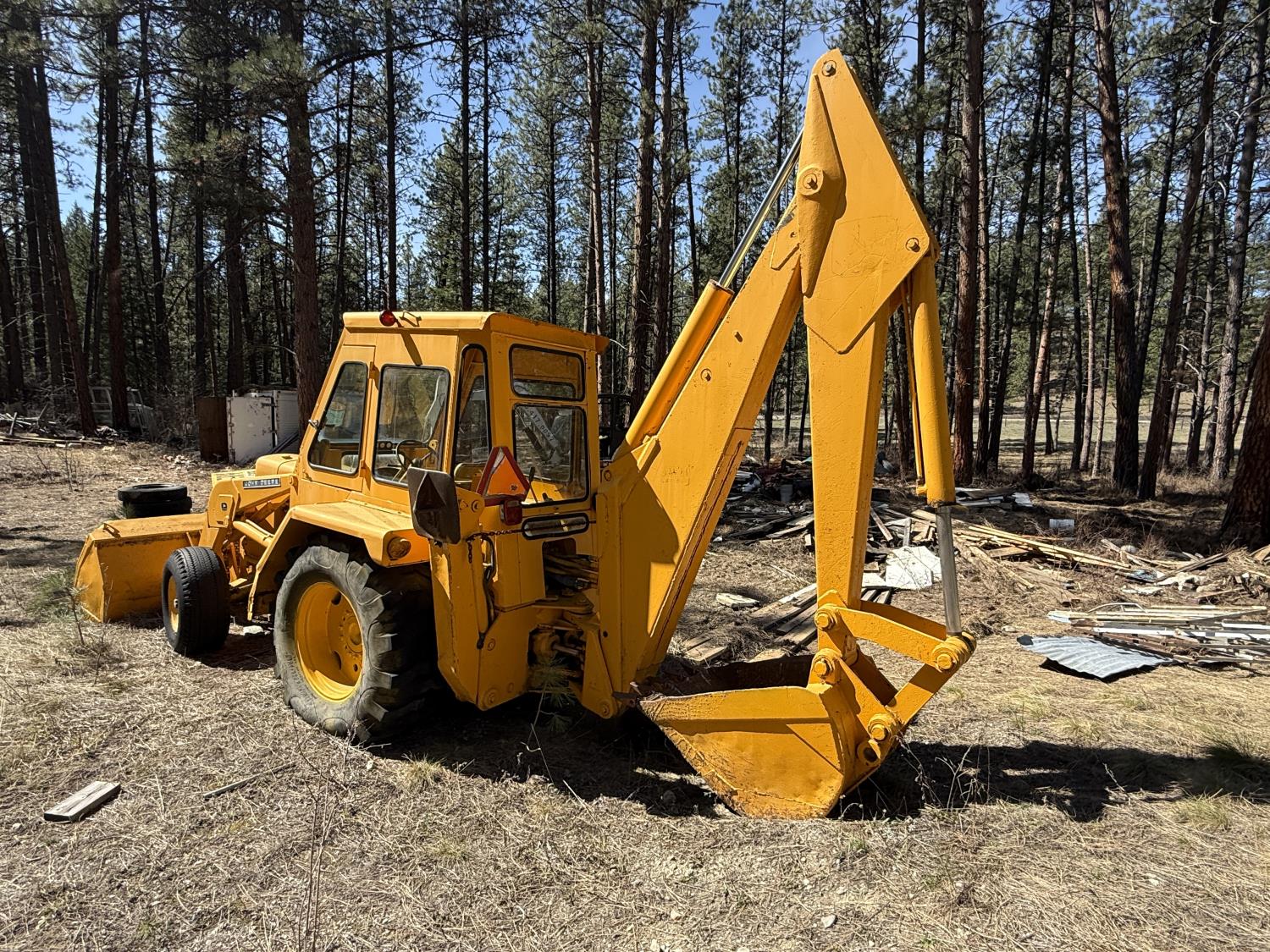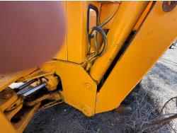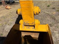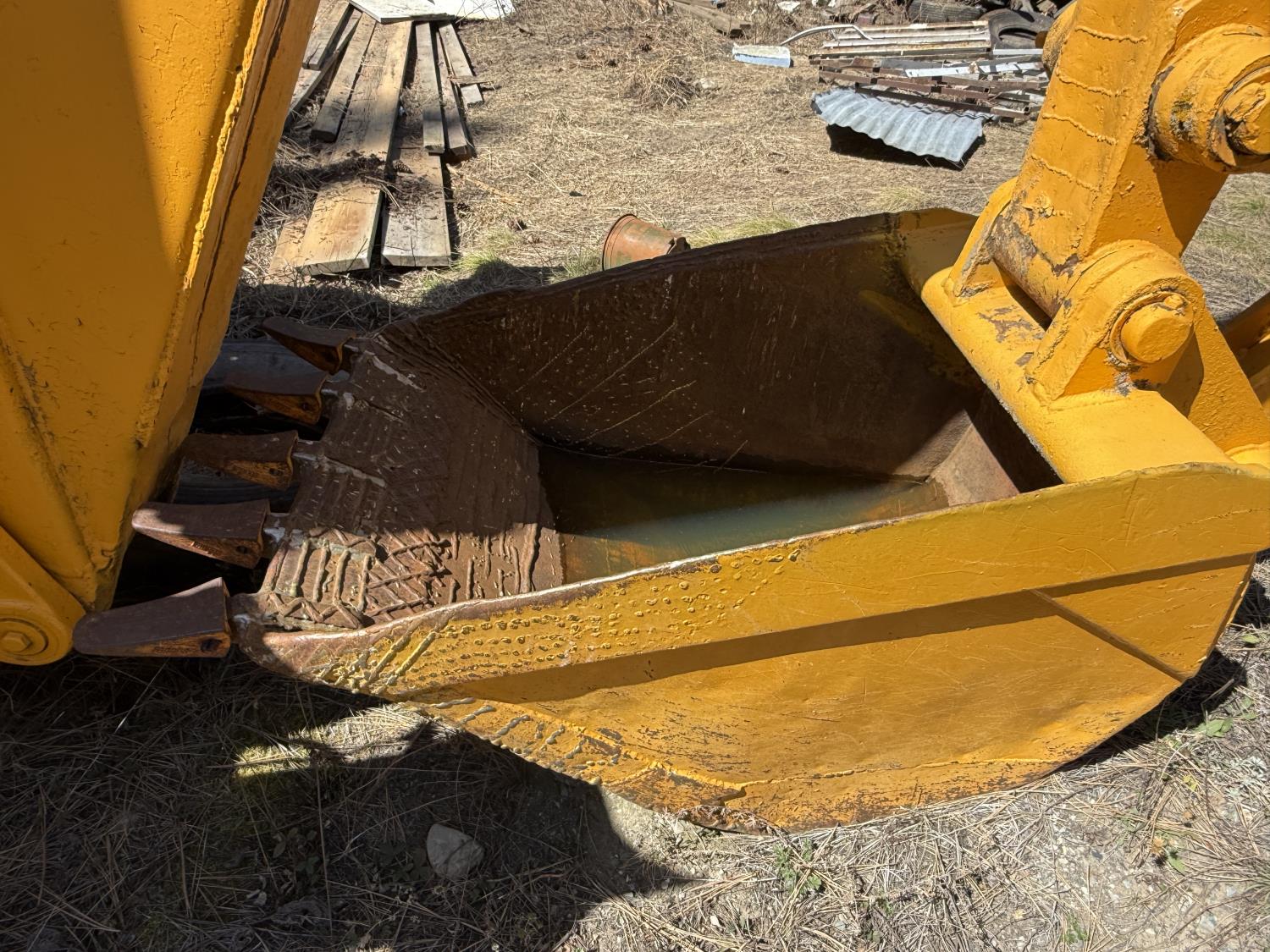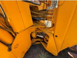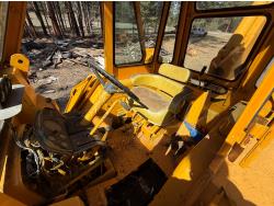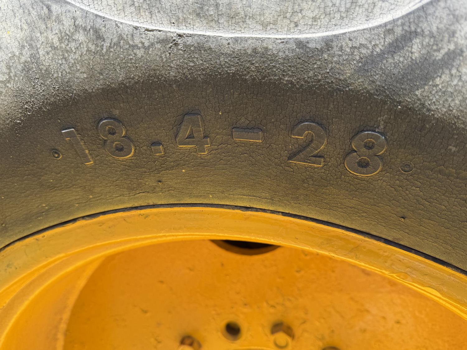 Enclosed cab, powershift transmission, 90 inch smooth loader bucket, 24 inch dig backhoe bucket, manual coupler, 5 Ft stick, outriggers, 14X17.5 front tires, 18.4X28 rear tires