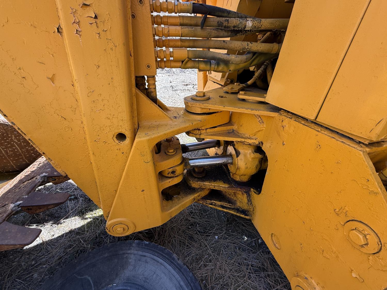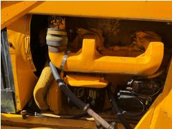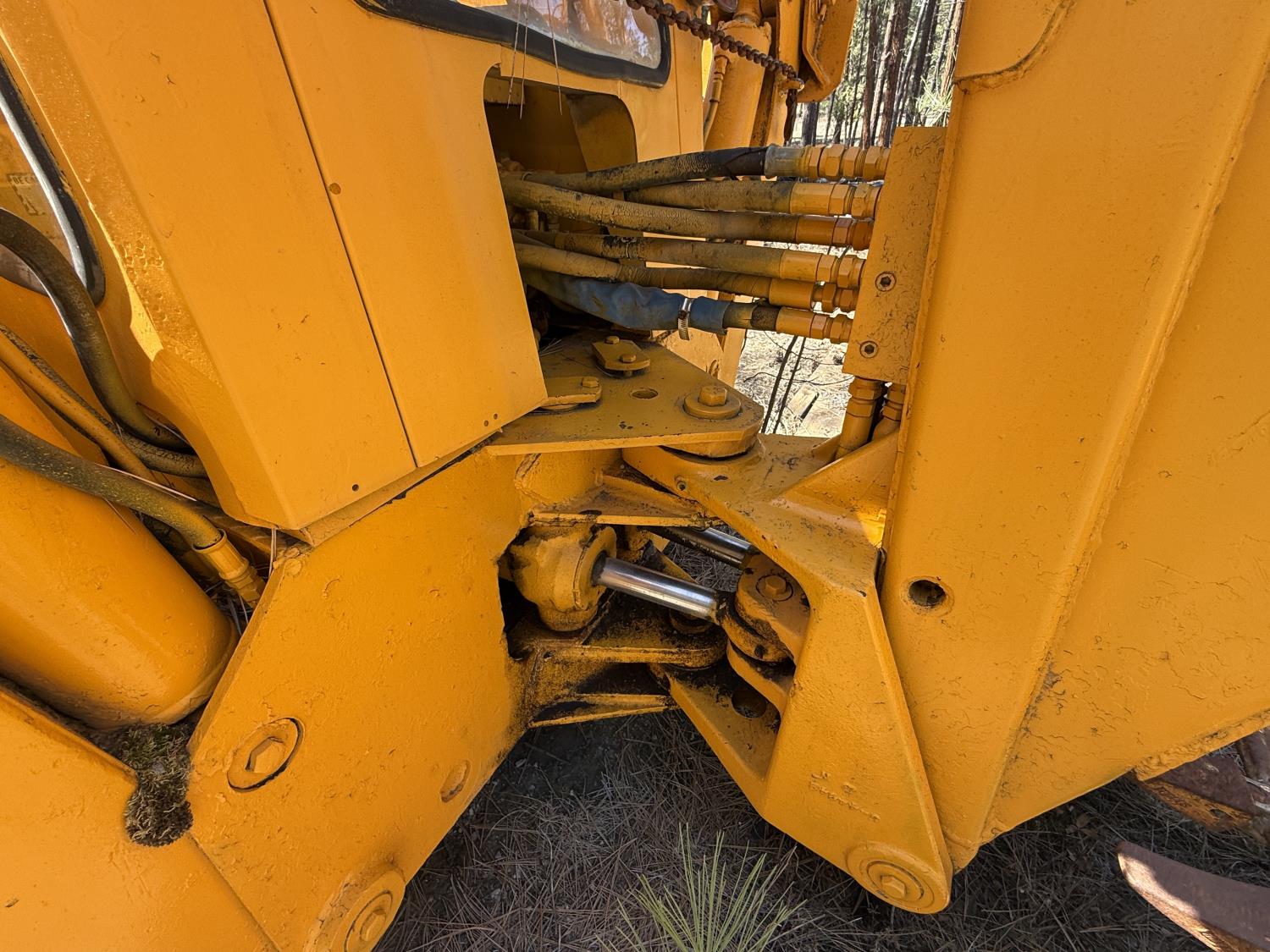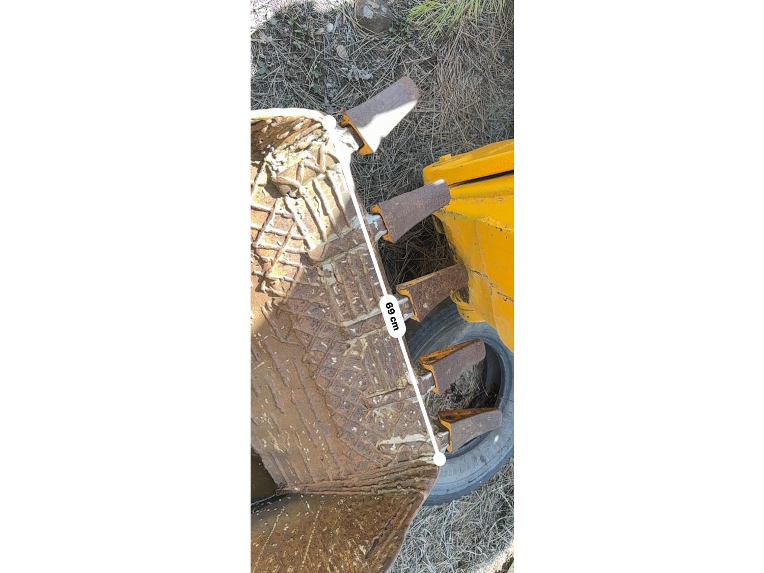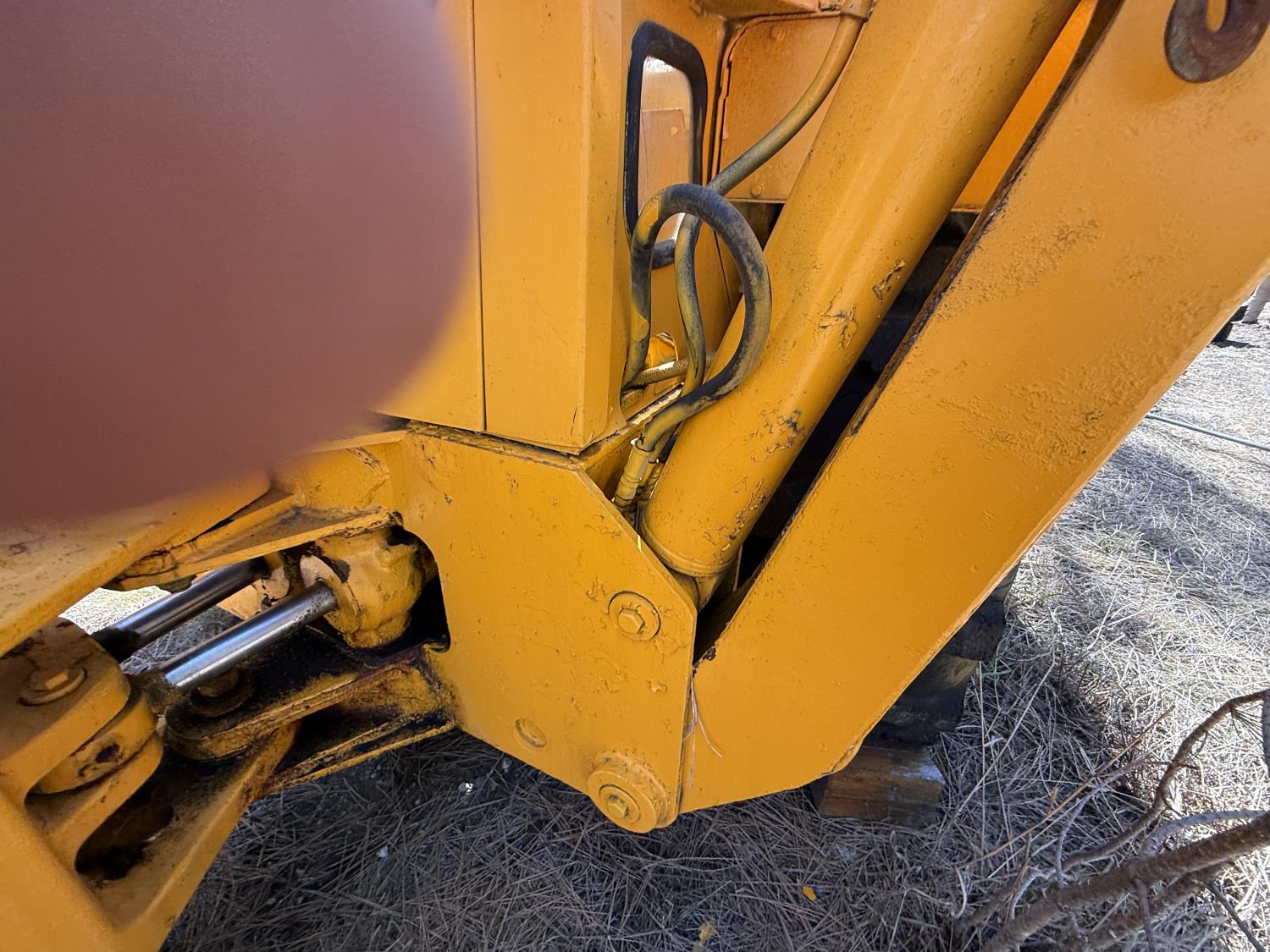 Enclosed cab, powershift transmission, 90 inch smooth loader bucket, 24 inch dig backhoe bucket, manual coupler, 5 Ft stick, outriggers, 14X17.5 front tires, 18.4X28 rear tires
