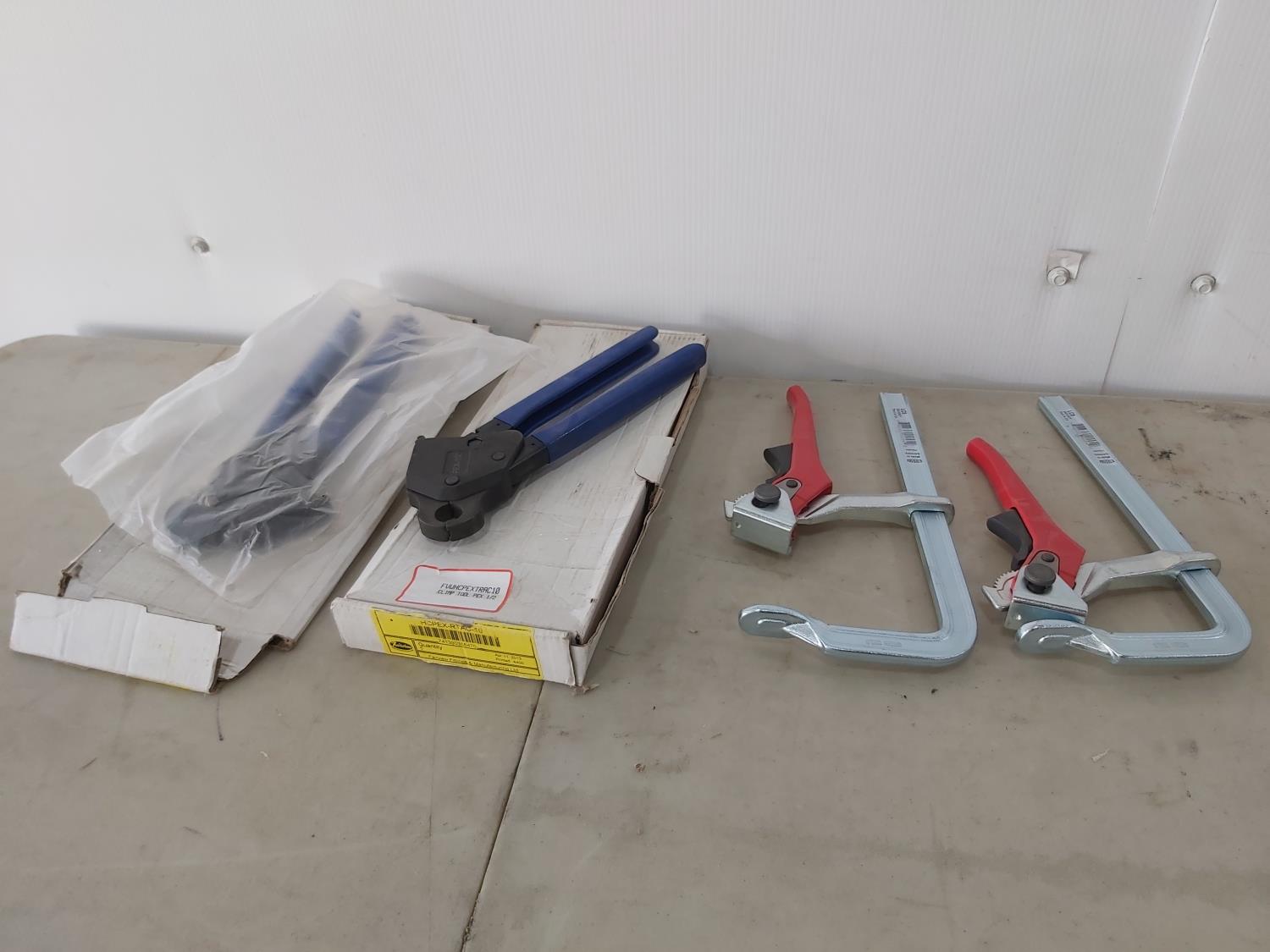 1086 (2) 1/2 Inch Pex Crimping Tools and (2) 6 Inch Bessey Ratcheting Clamps