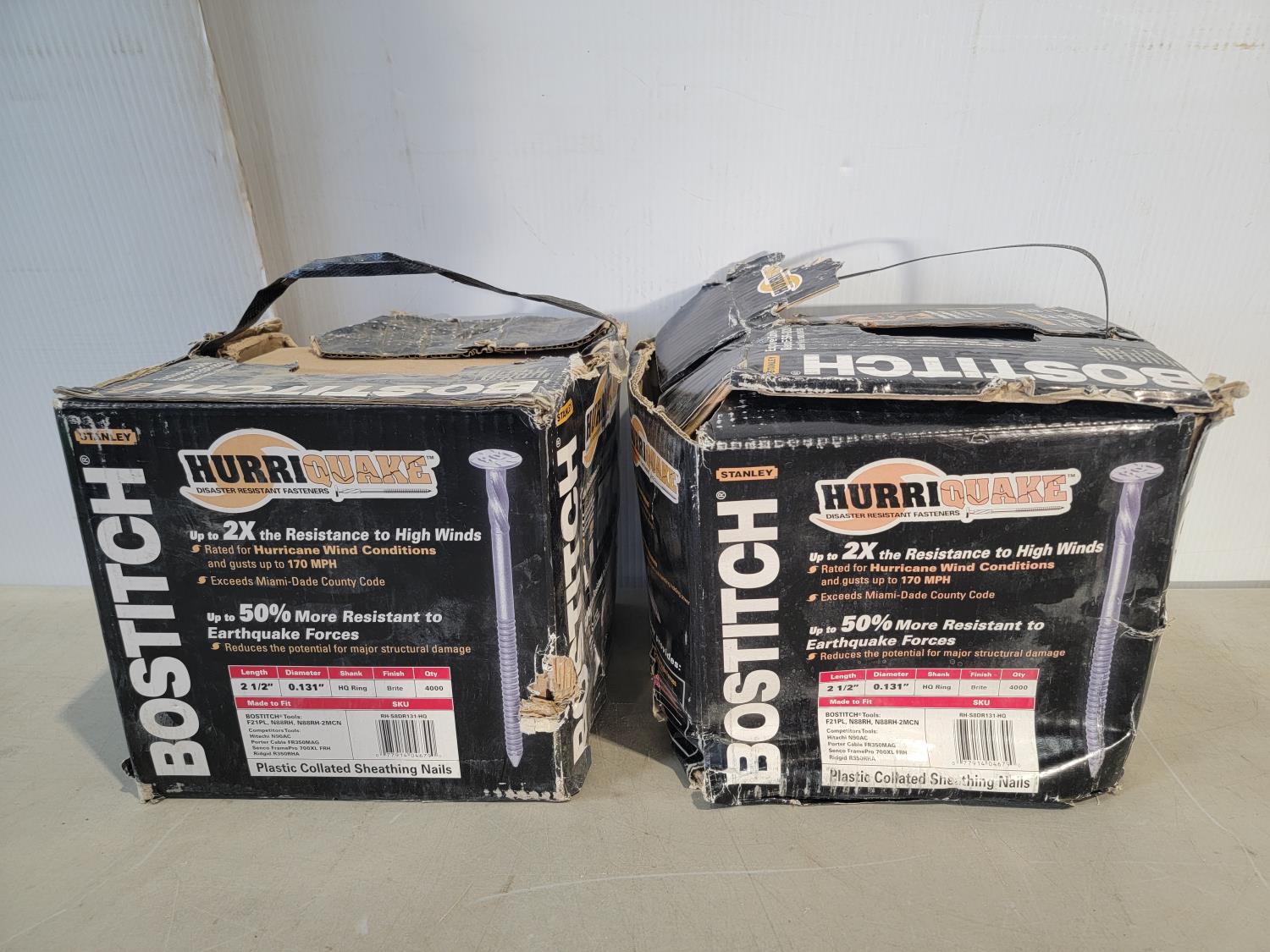 1307 (2) Boxes of Bostitch 2-1/2 Inch X 0.131 Inch Plastic Collated Sheathing Nails