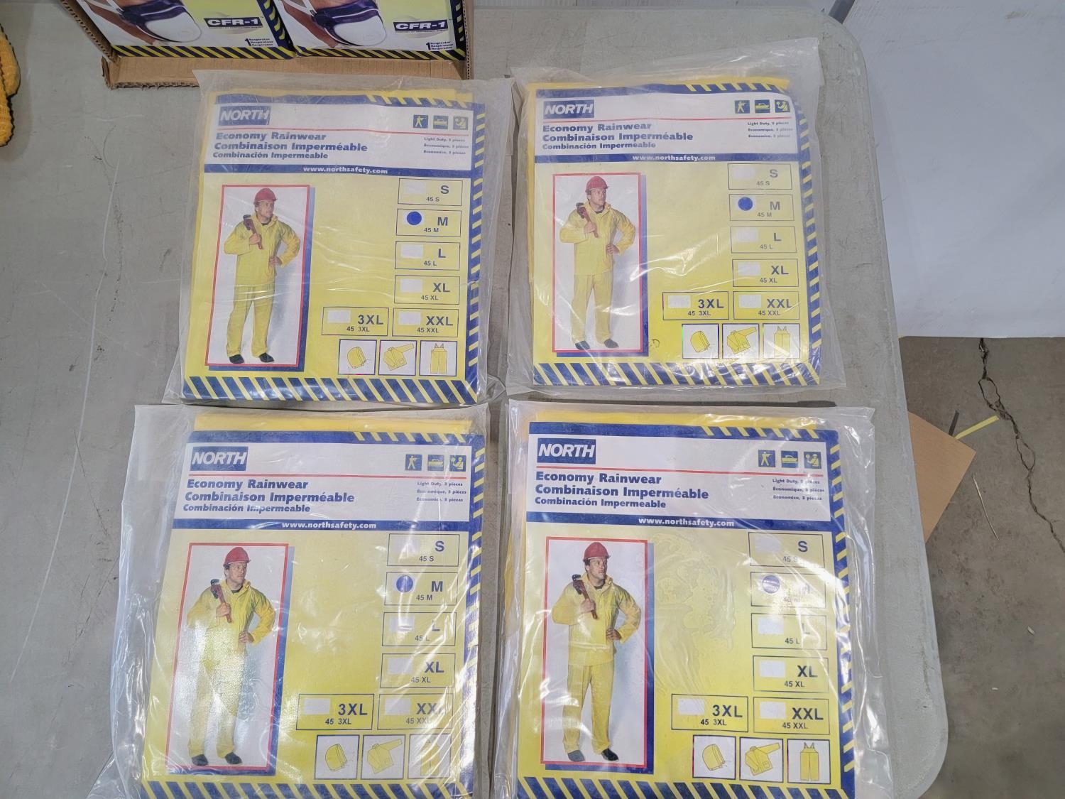 Gloves, rainwear, reuseable particulate respirator, earplug dispenser
