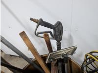 Pipes, handrails, rakes, 4 ft pallet fork, 1000 PTO shaft, miscellaneous items