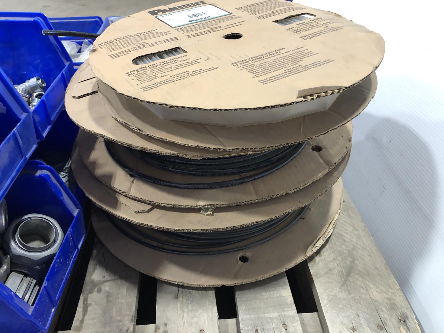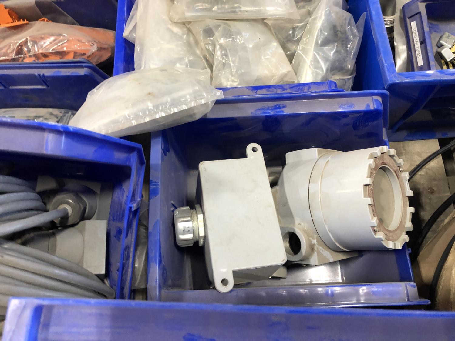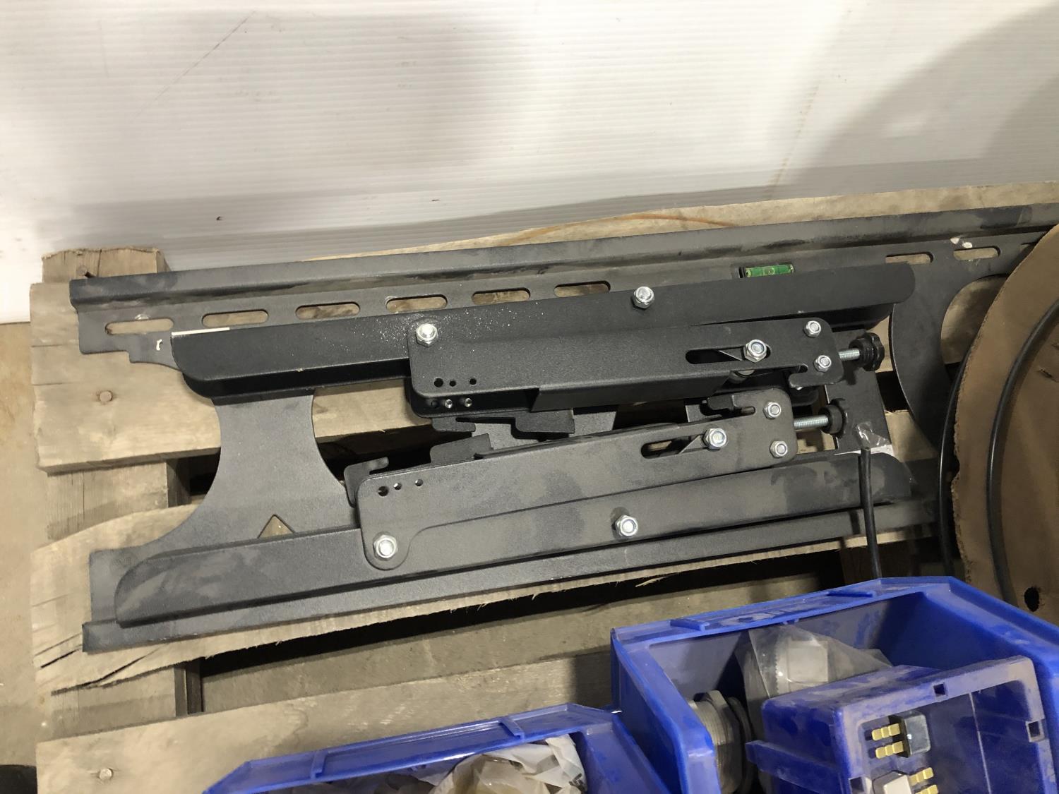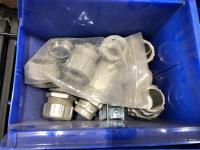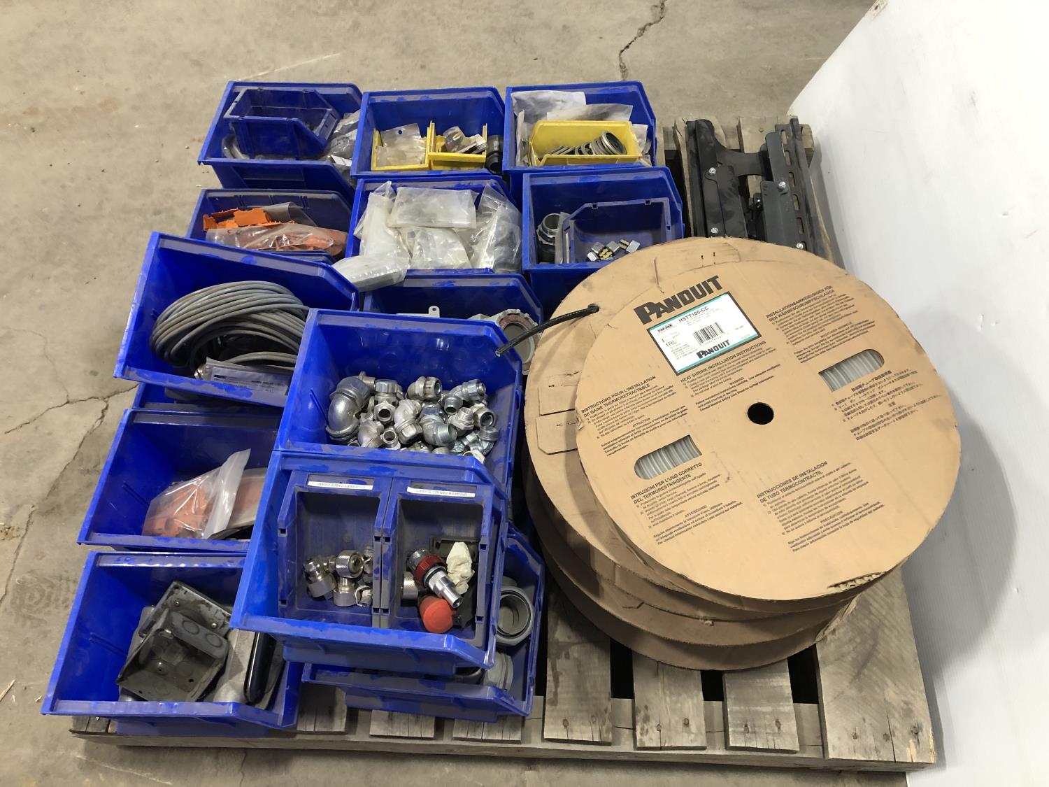 Various Wago end plates, assorted fittings, shrink sleeves, wire, flat screen TV mounts, terminal block connectors