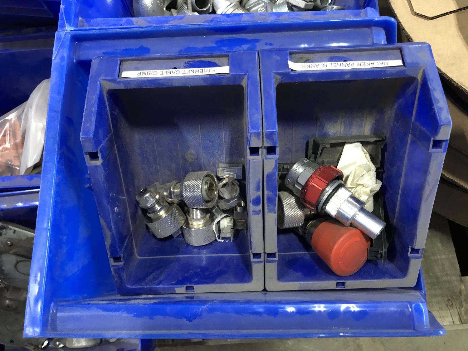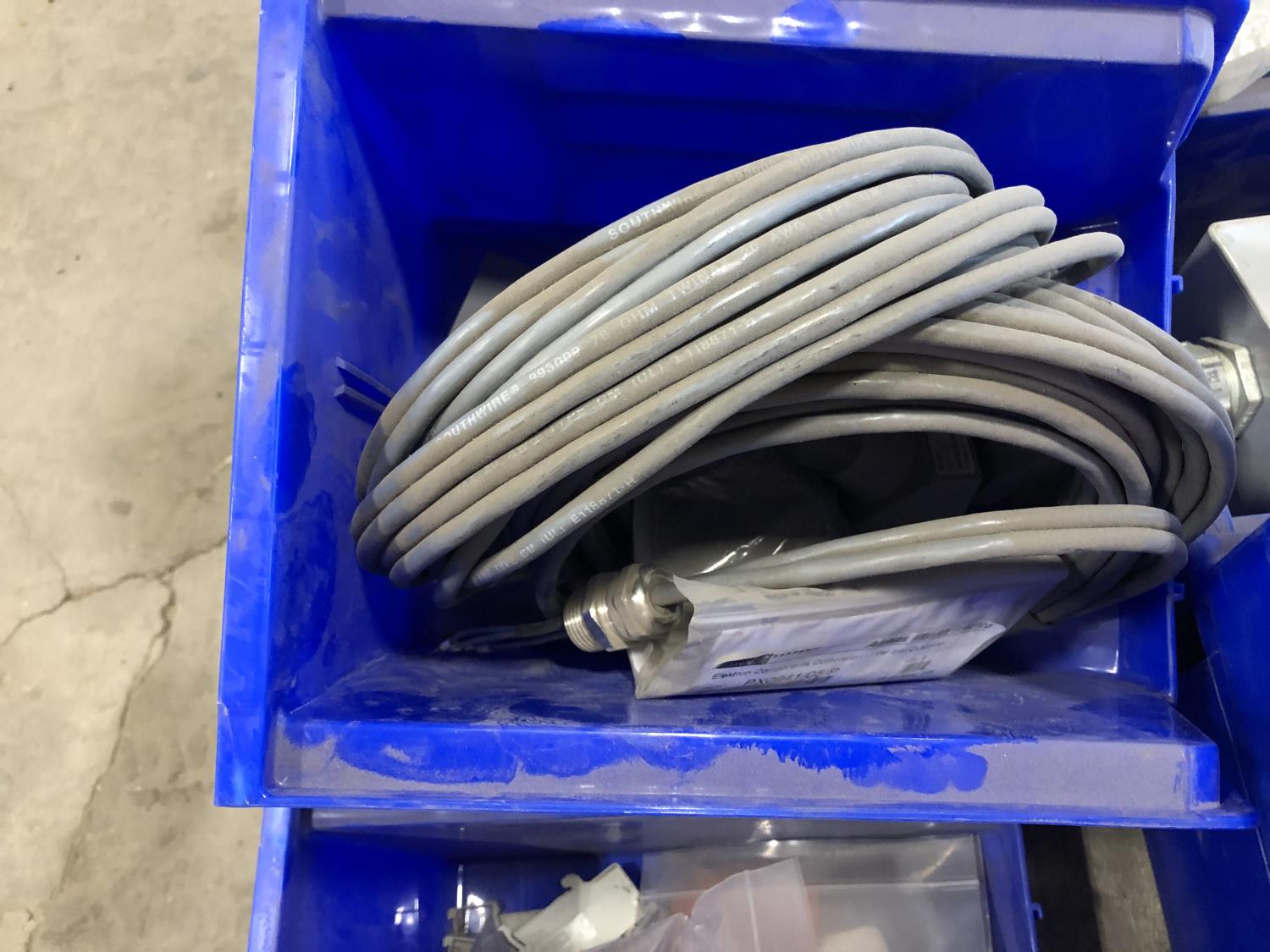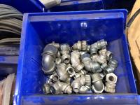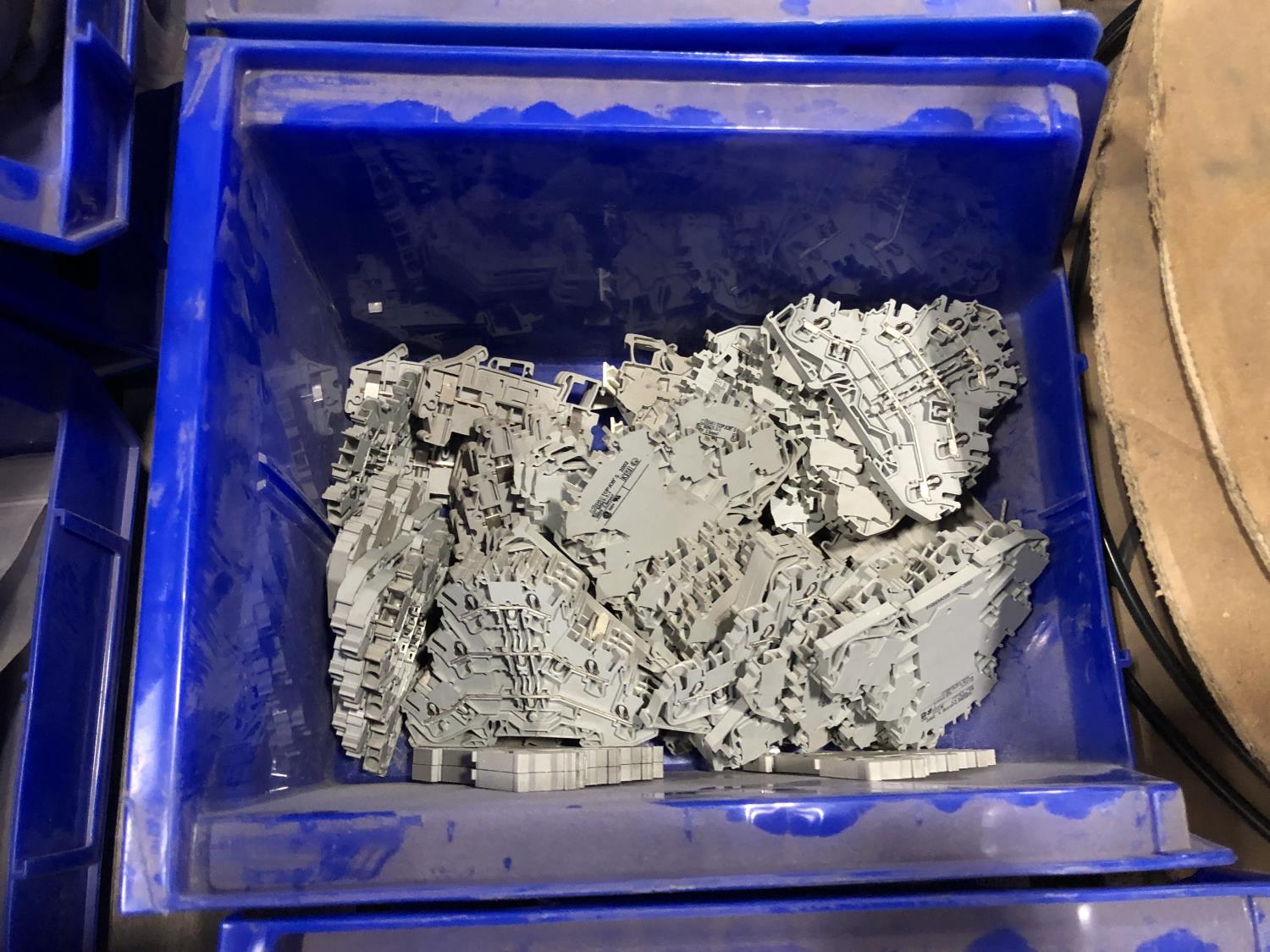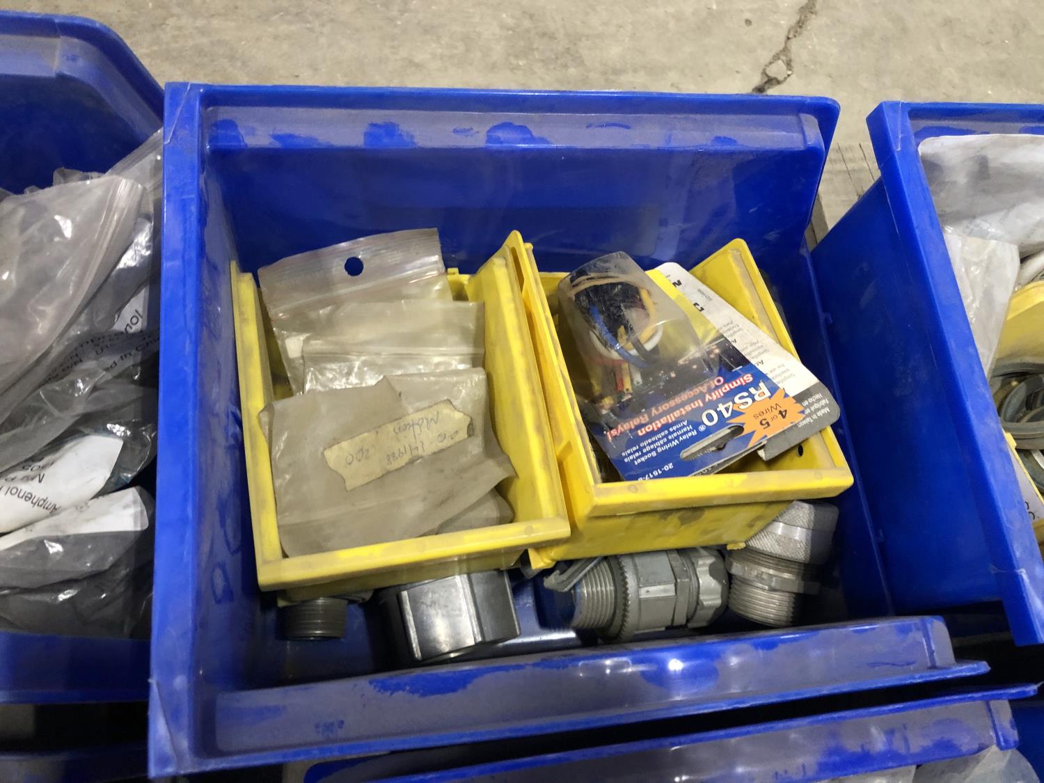 Various Wago end plates, assorted fittings, shrink sleeves, wire, flat screen TV mounts, terminal block connectors