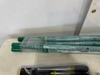 (3) holesaws -12 inch, 10-1/4 inch, 9-3/16 inch, 24 inch Ridgid pipe wrench, (3) hand wratchets, Klein Tools 7 piece nut drivers, (4) Greelee 1/2 inch EMT conduit benders
