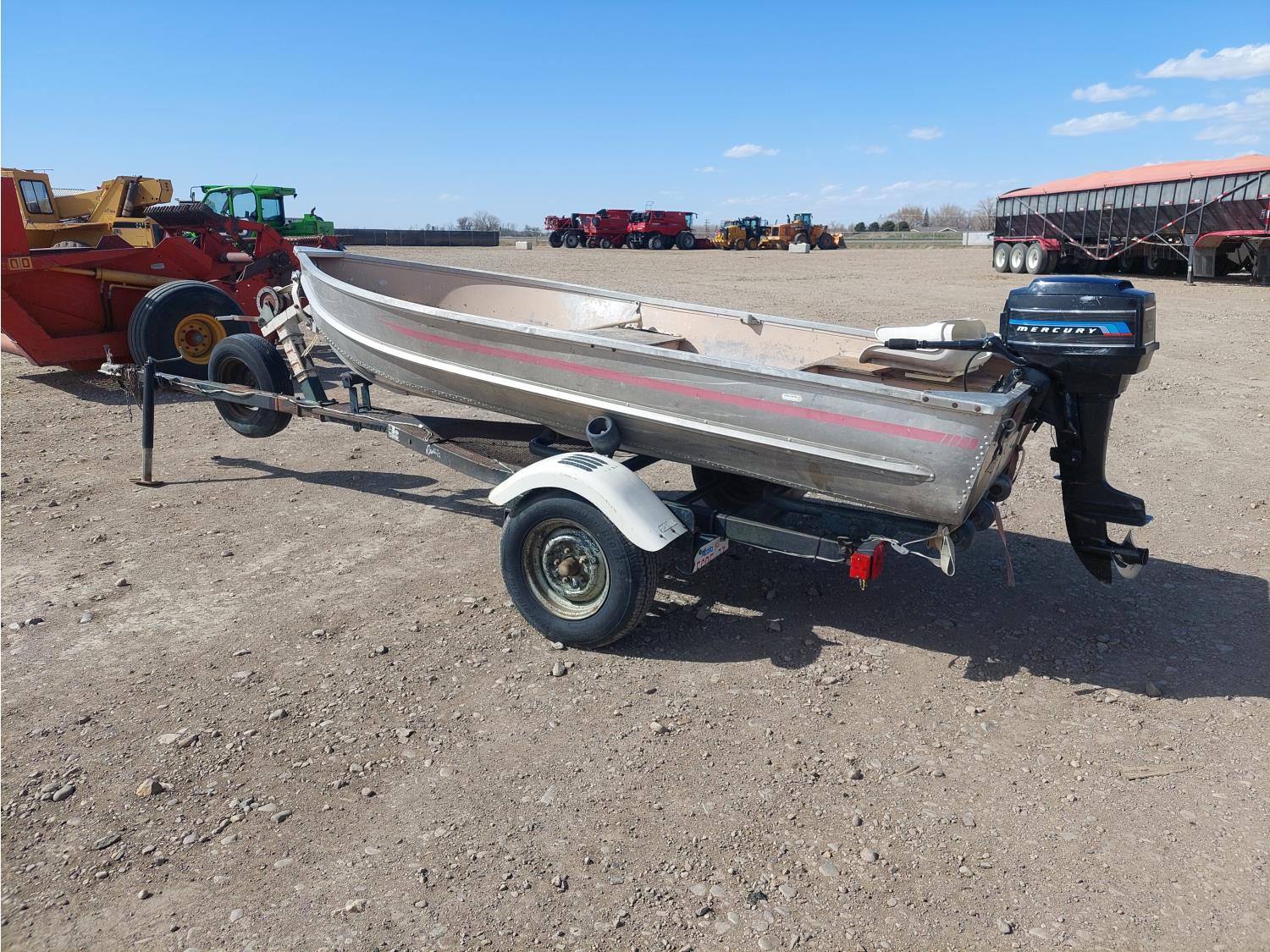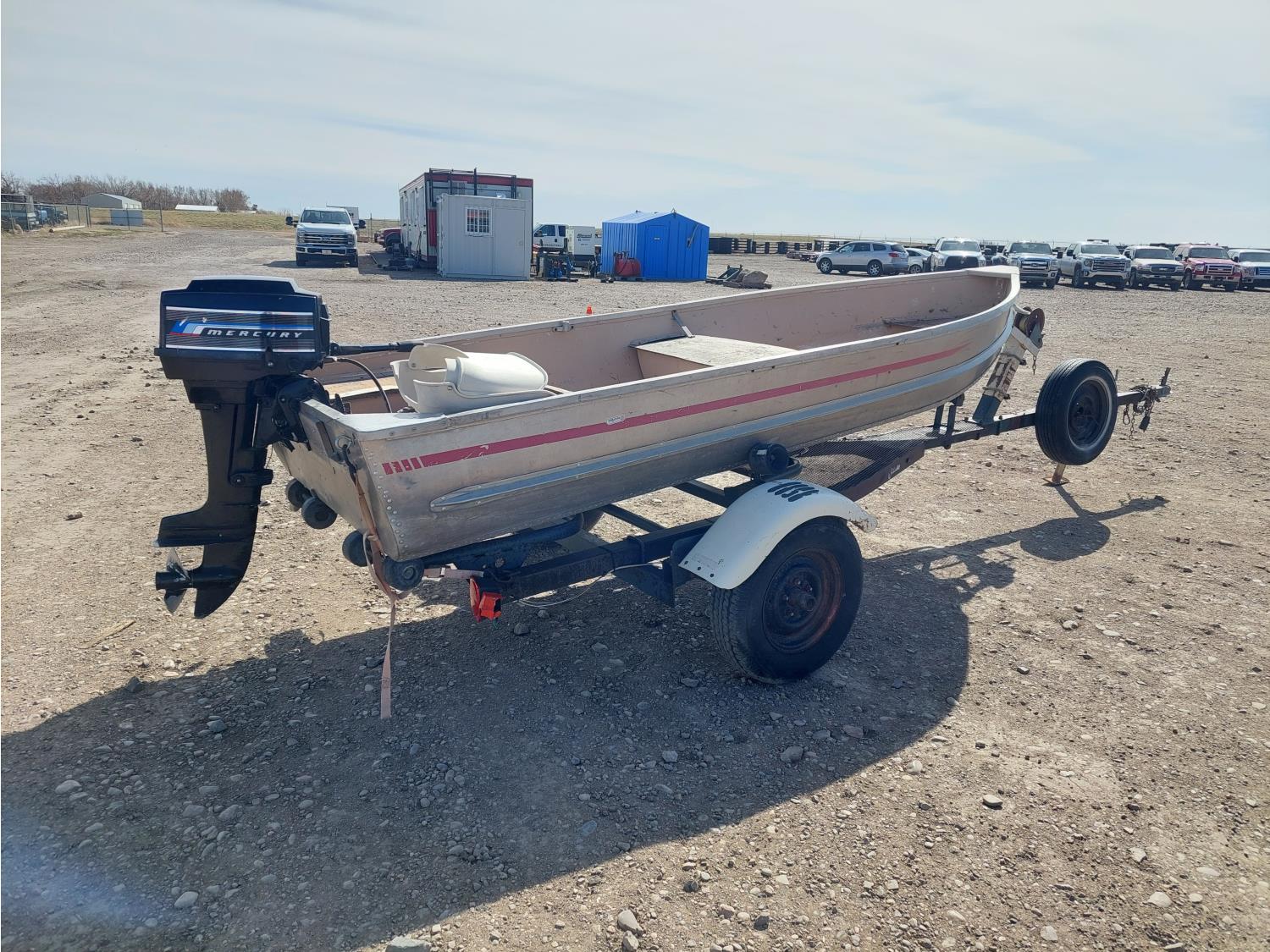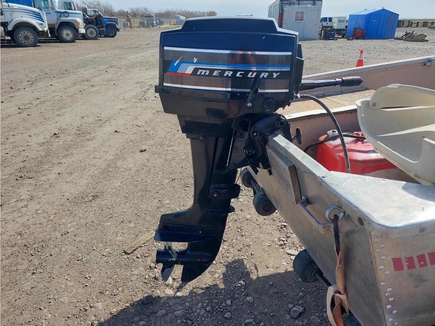7.5 HP Mercury Mer75, 2 cylinder, 4 stroke engine, 175/80R13 tires, 2 inch ball hitch, includes extra prop