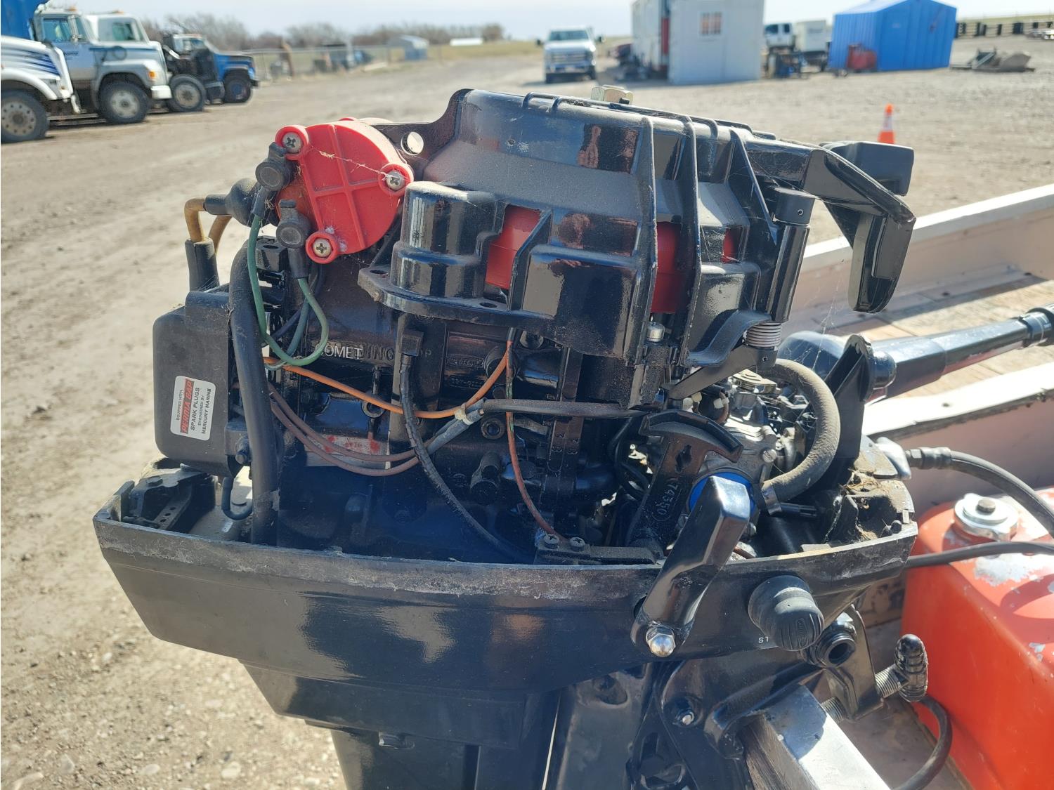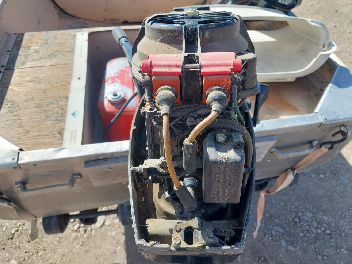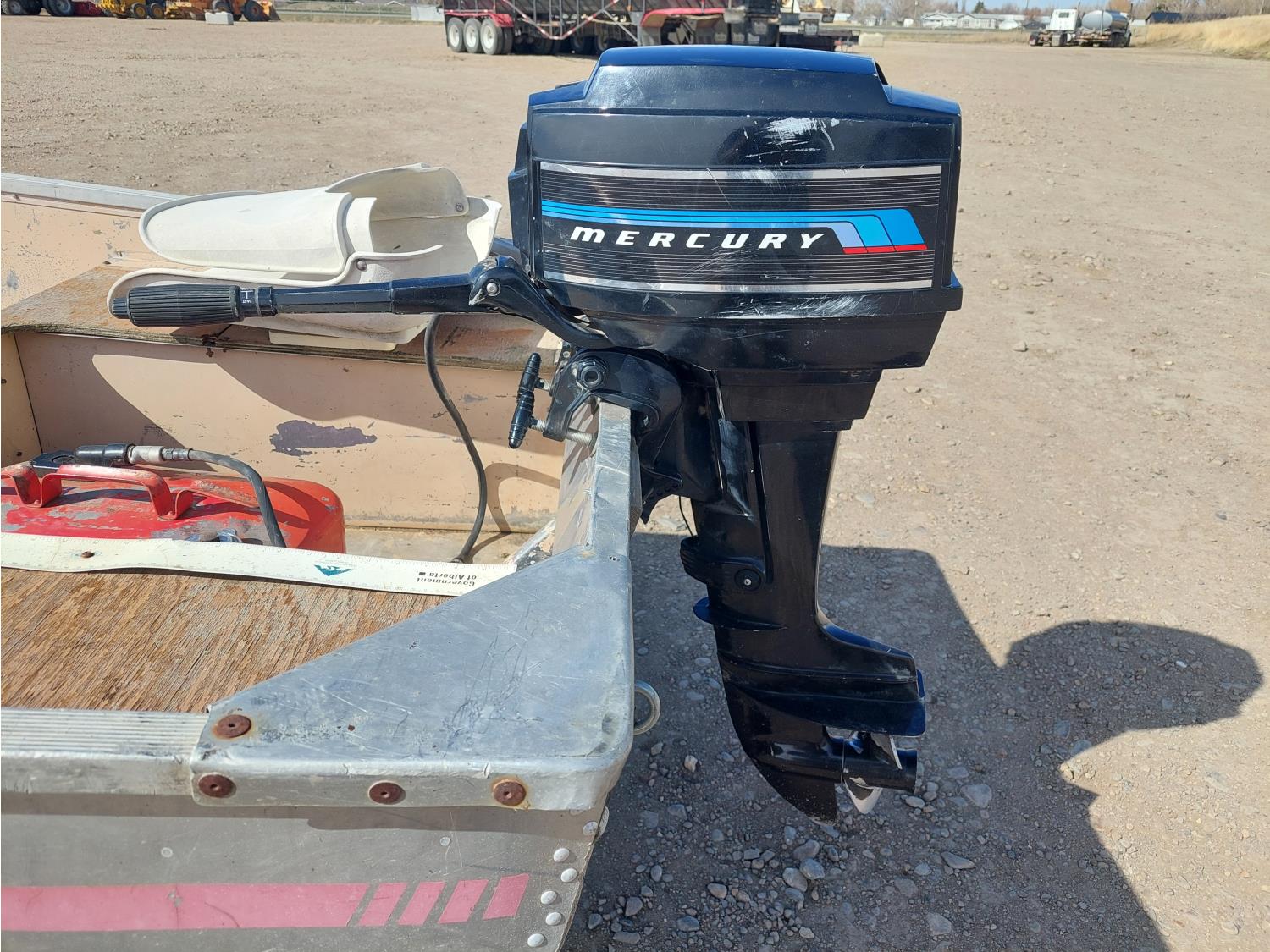 7.5 HP Mercury Mer75, 2 cylinder, 4 stroke engine, 175/80R13 tires, 2 inch ball hitch, includes extra prop