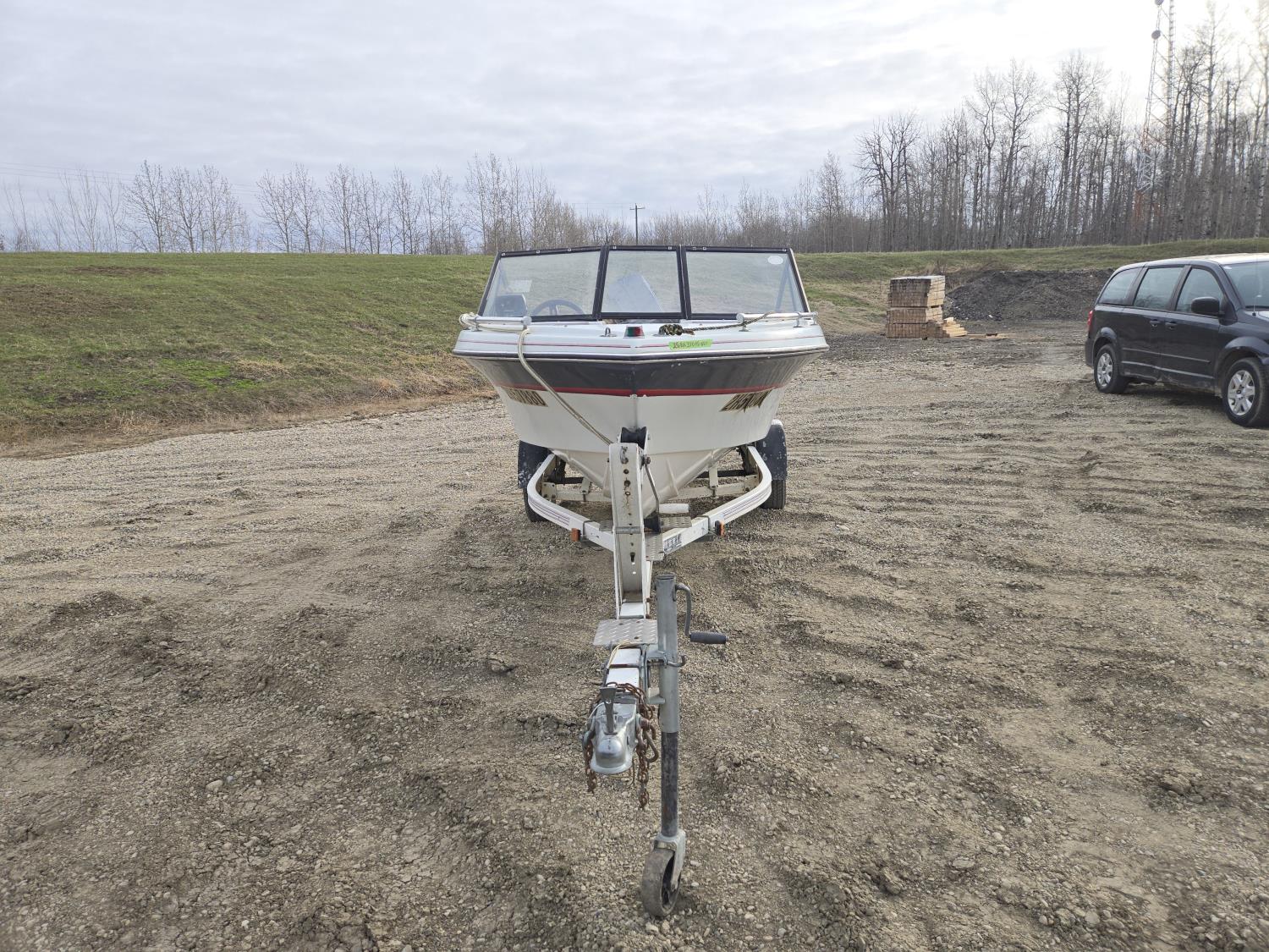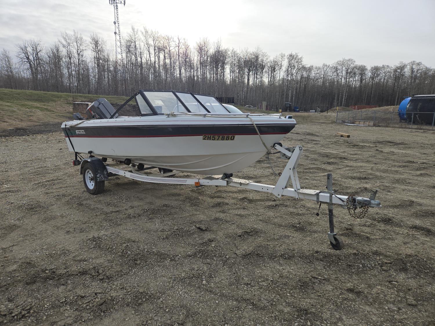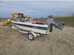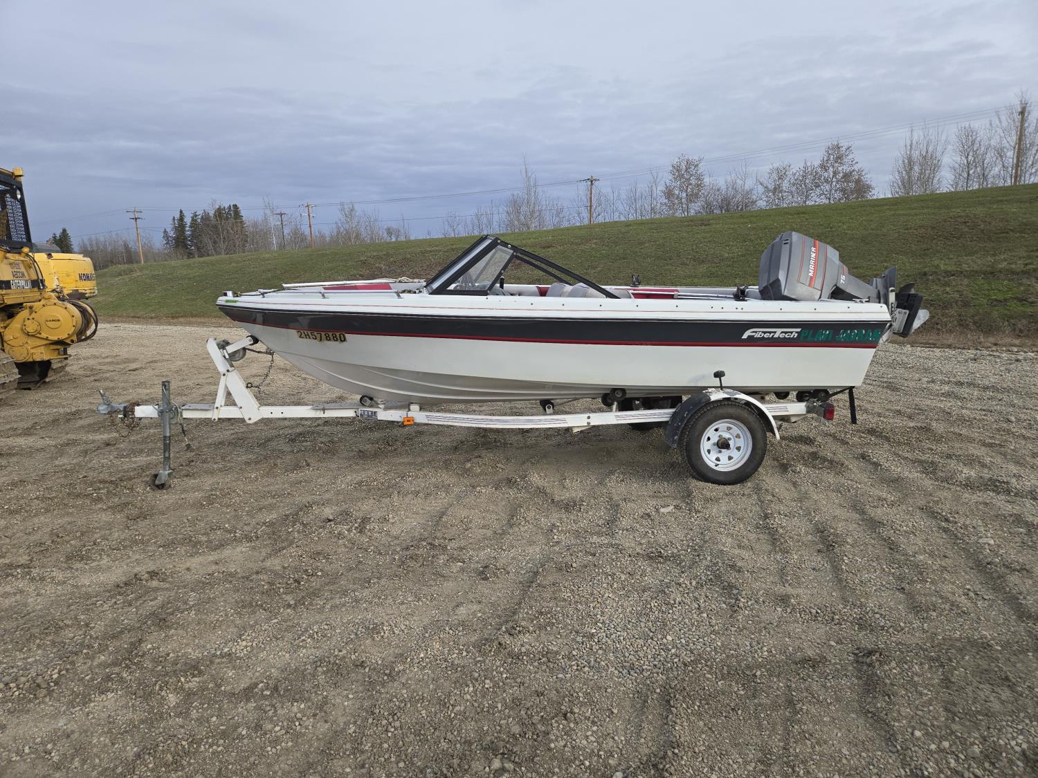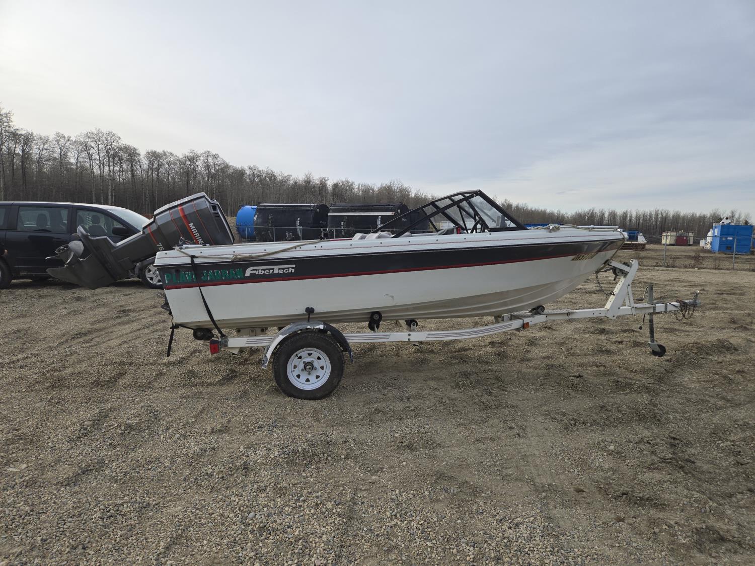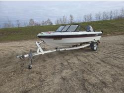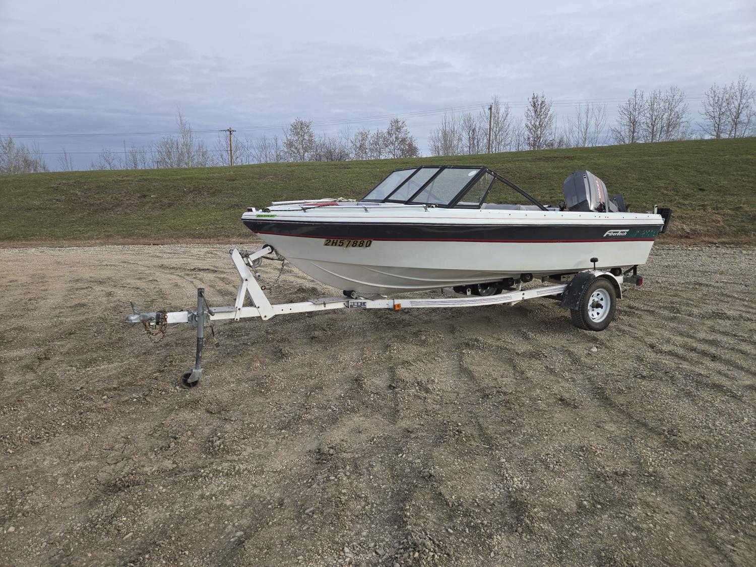 143 1989 FibreTech 15.5 Ft Fiberglass Open Bow Boat with 1990 Caulkins S/A Trailer