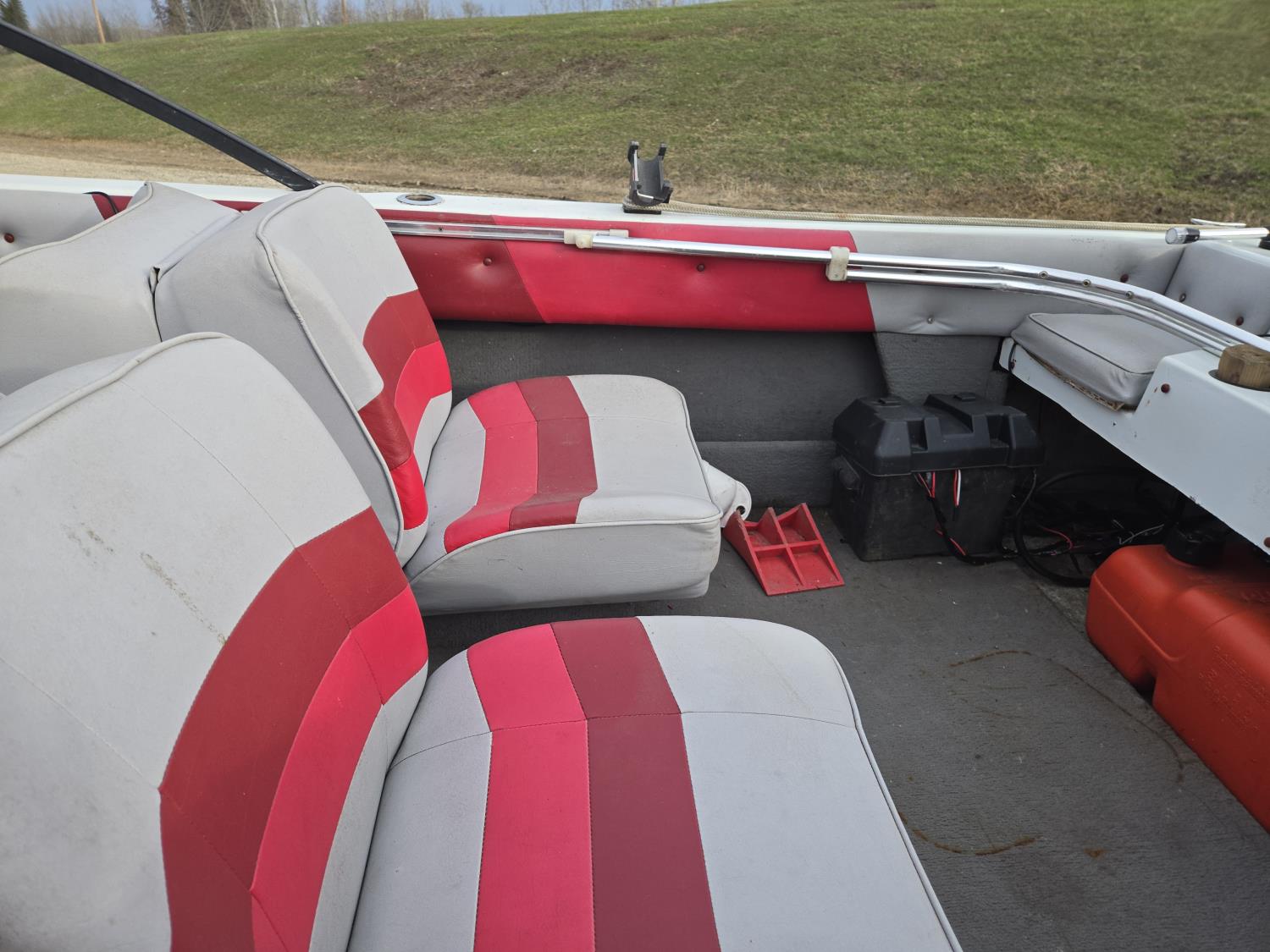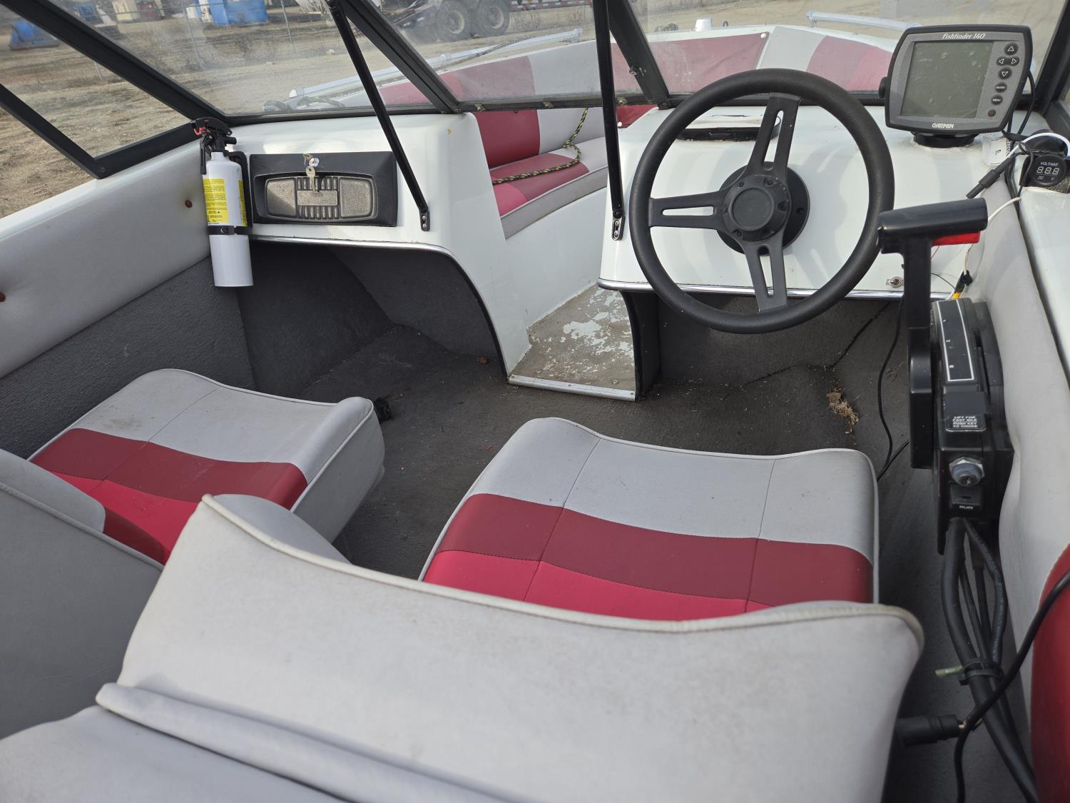 75 HP Mariner outboard motor, (4) seats plus bow seating, fish finder, 175/80D15 tires