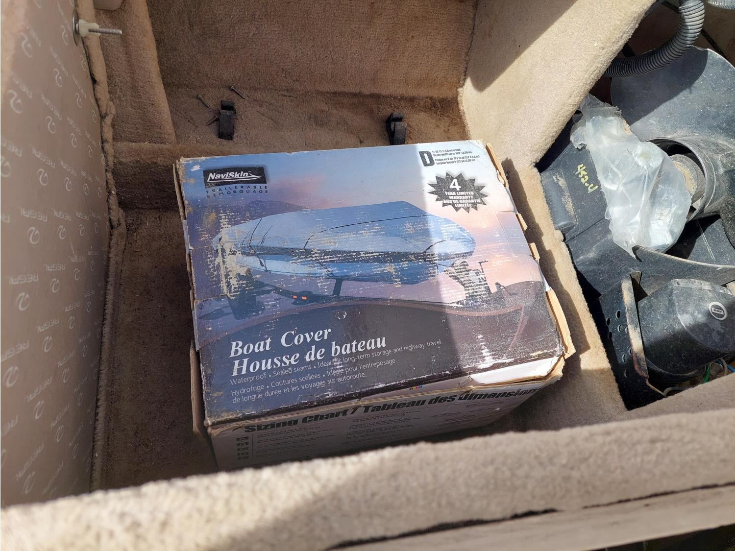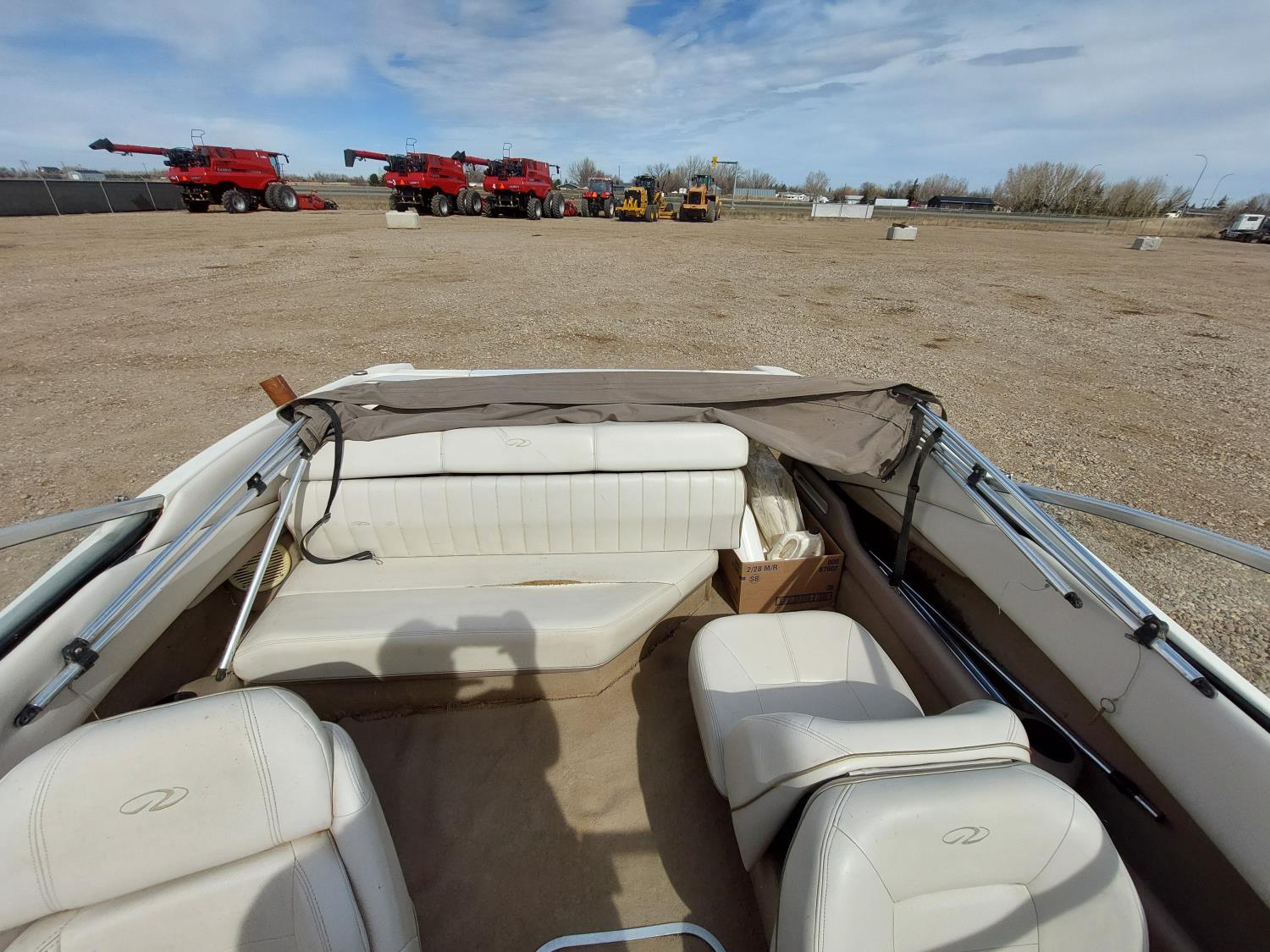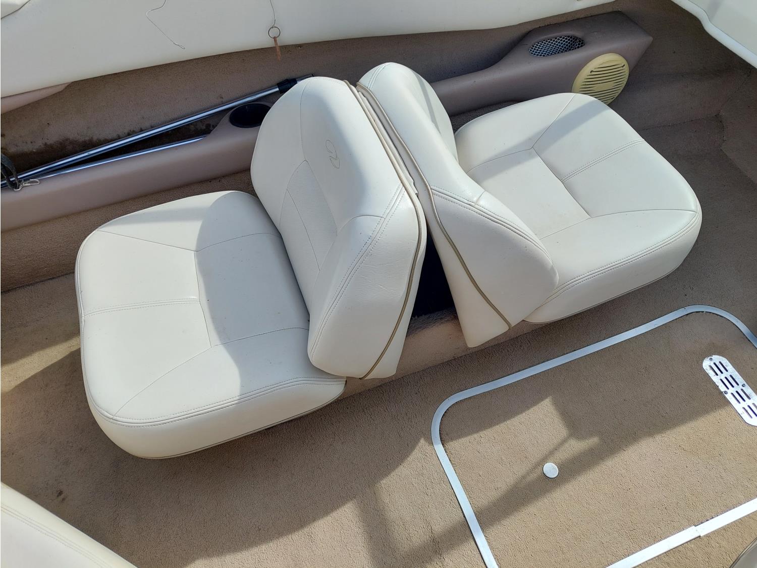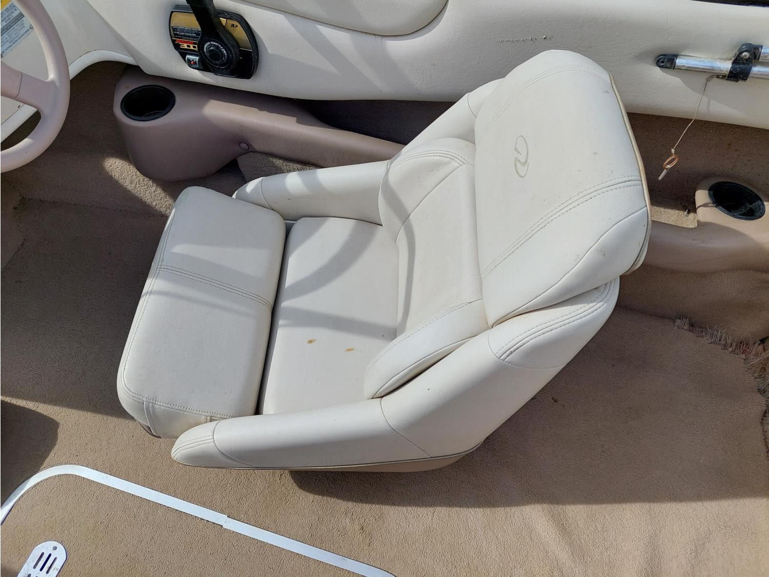 4.3L Mercury MerCruiser engine, 190 HP, Fast Trac hull, stern drive, open bow lounge area, includes 3 sets of water skis, extra prop, folding canopy, boat bumpers, and boat cover