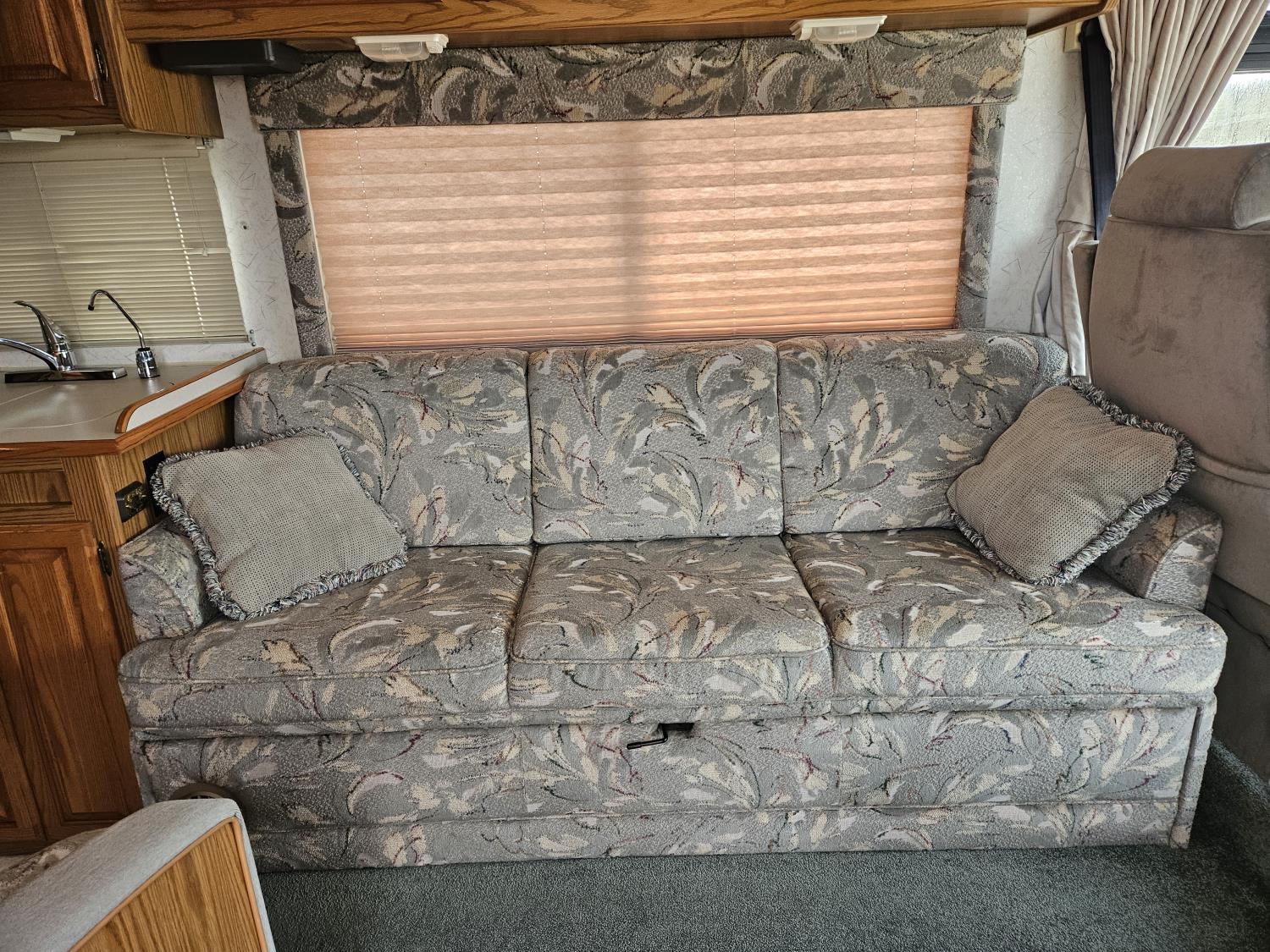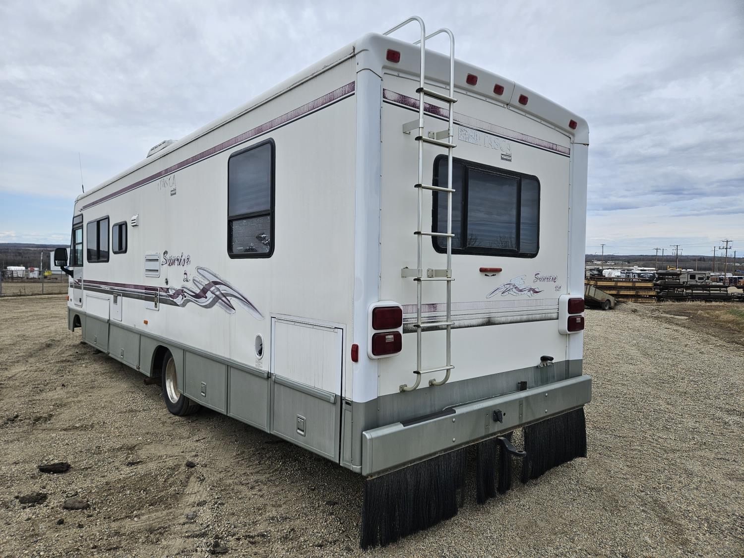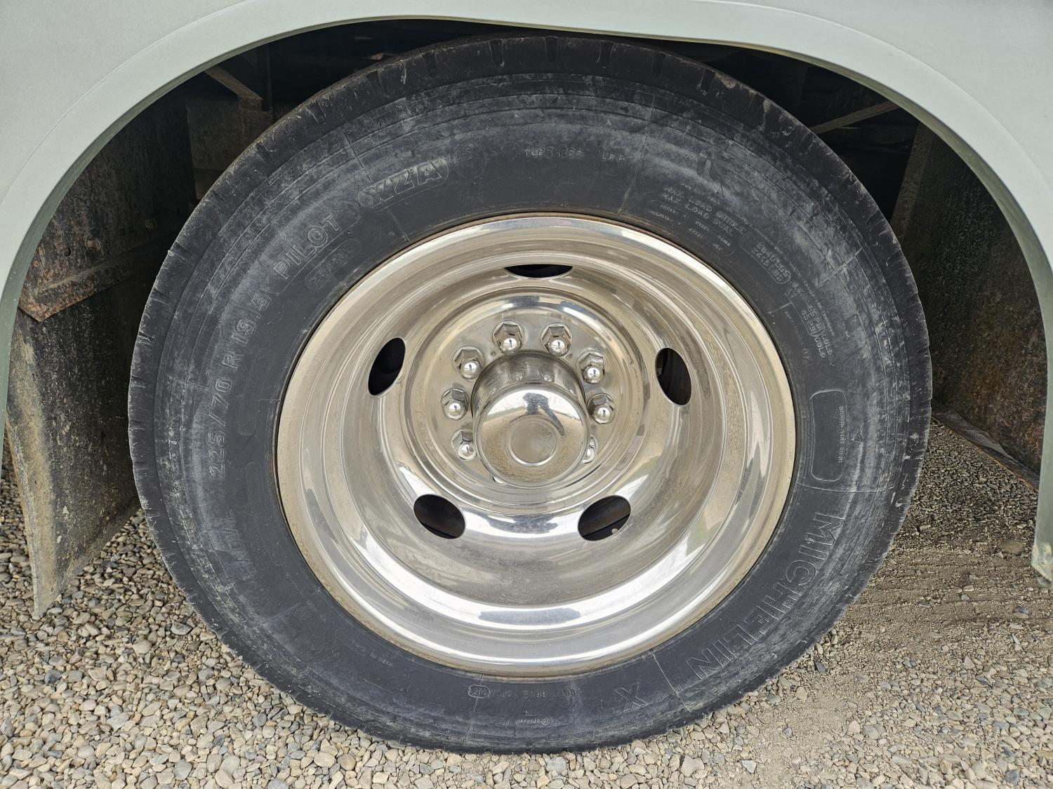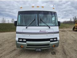 Chevrolet 454 7.4L V8 gas engine, automatic transmission, rear bed room, fridge, stove, oven, microwave, dinette, sofa, chair, full bathroom, A/C, Onan 4000 watt genset, power step, storage compartment, 225/70R19.5 tires