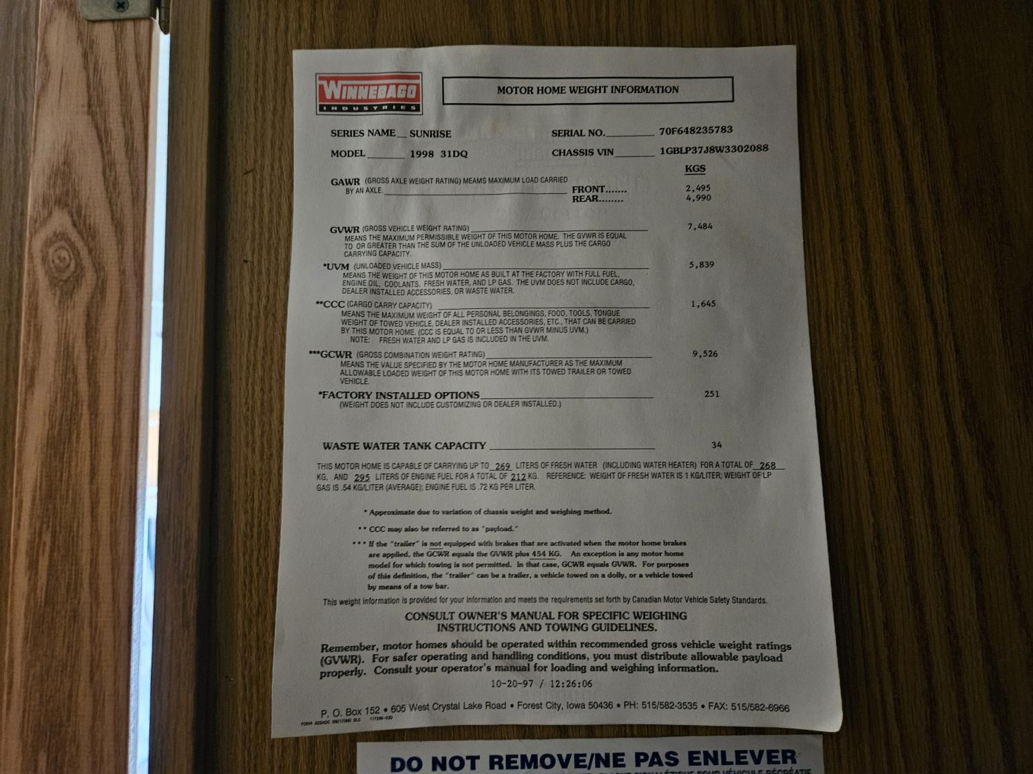 222 1998 Itasca ICF31DQ 31 Ft Motorhome