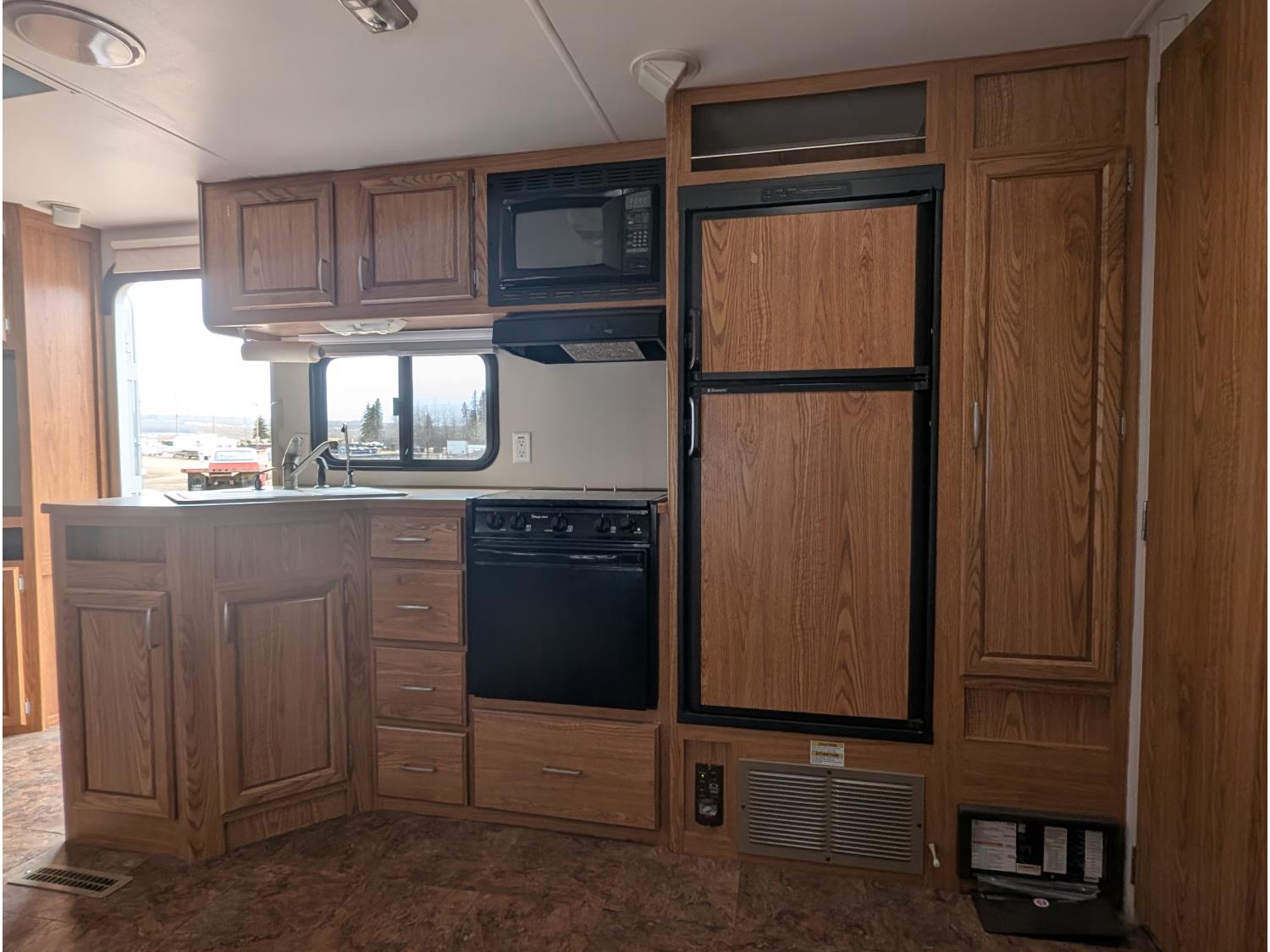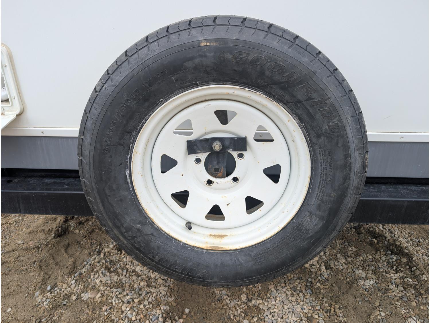 Sleeps 4, stove, fridge, microwave, full bath, master bedroom, outdoor shower, 1 slide, spring suspension, electric brakes, (2) 30 lb propane tanks, 205/75R15 tires