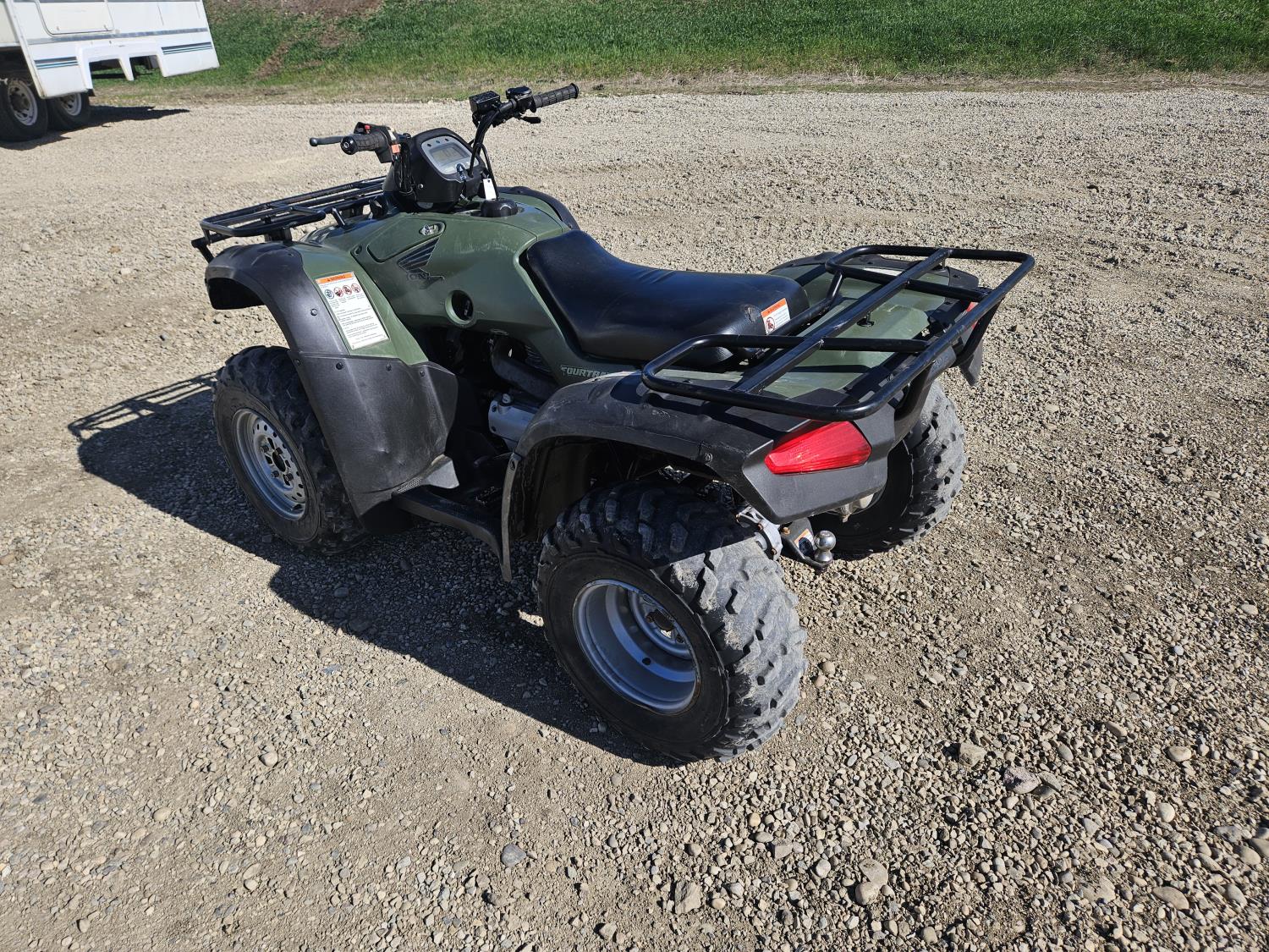 350 cc engine, manual transmission, reverse, hitch, front and rear racks, owner states cluster was replaced true milage appx 4360kms, 24X8-12 front tires, 24X9-11 rear tires