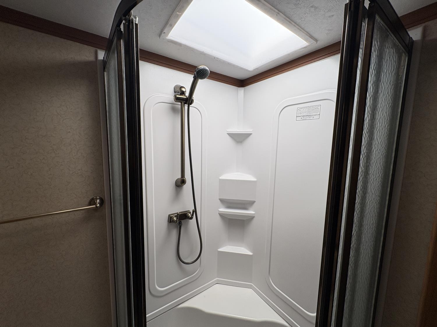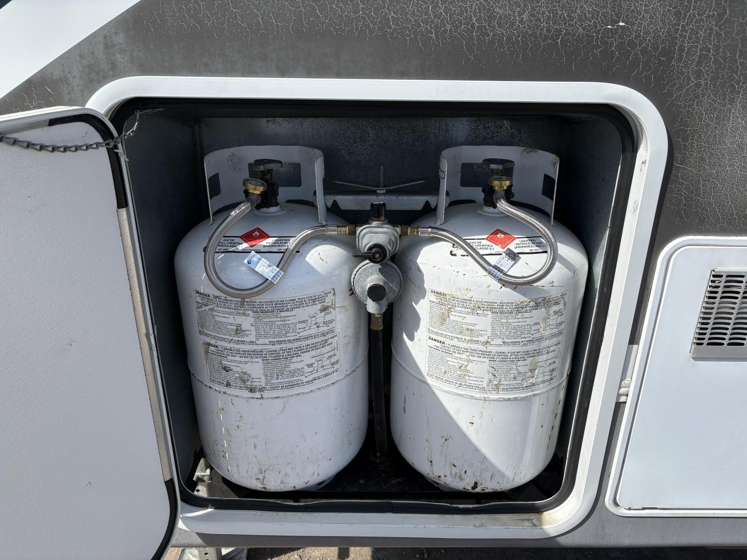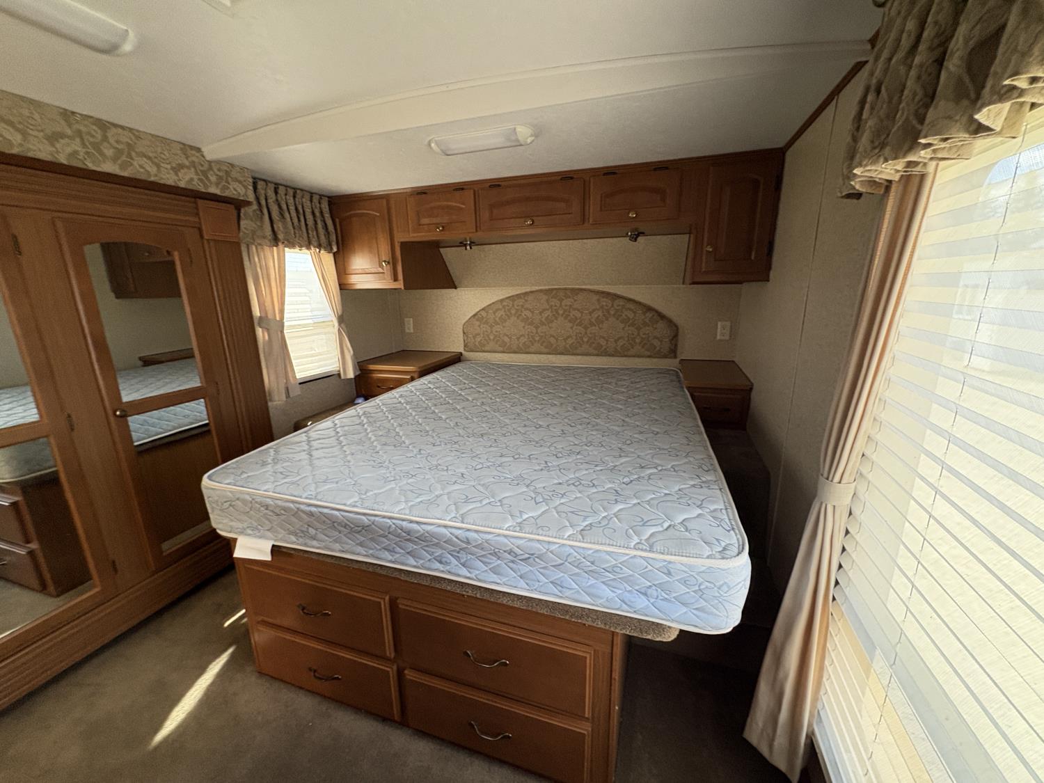 Sleeps 4, stove, fridge, microwave, full bath, master bedroom, A/C, outdoor shower, 3 slides, manual awning, power levelling jacks, electric brakes, 235/80/R16 tires